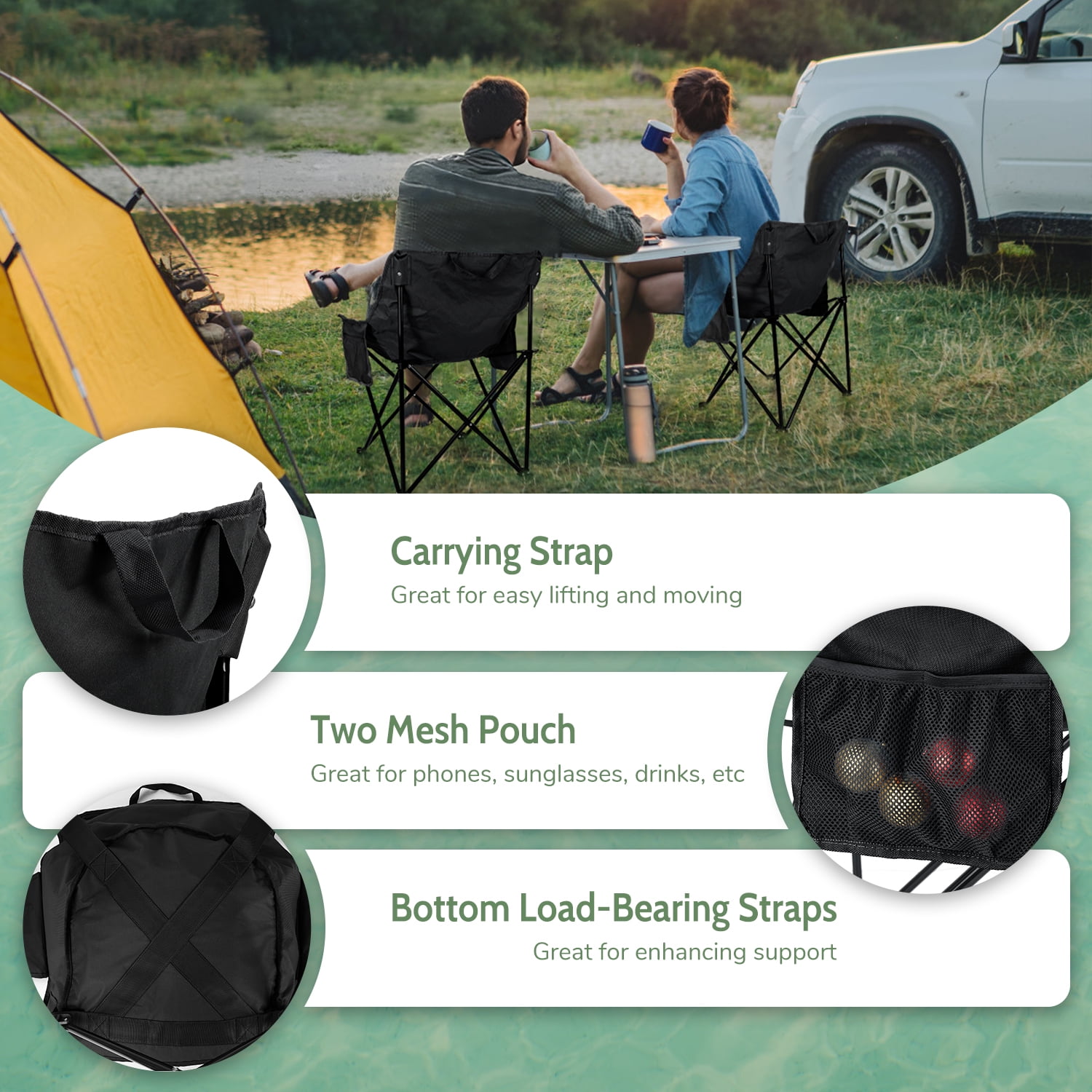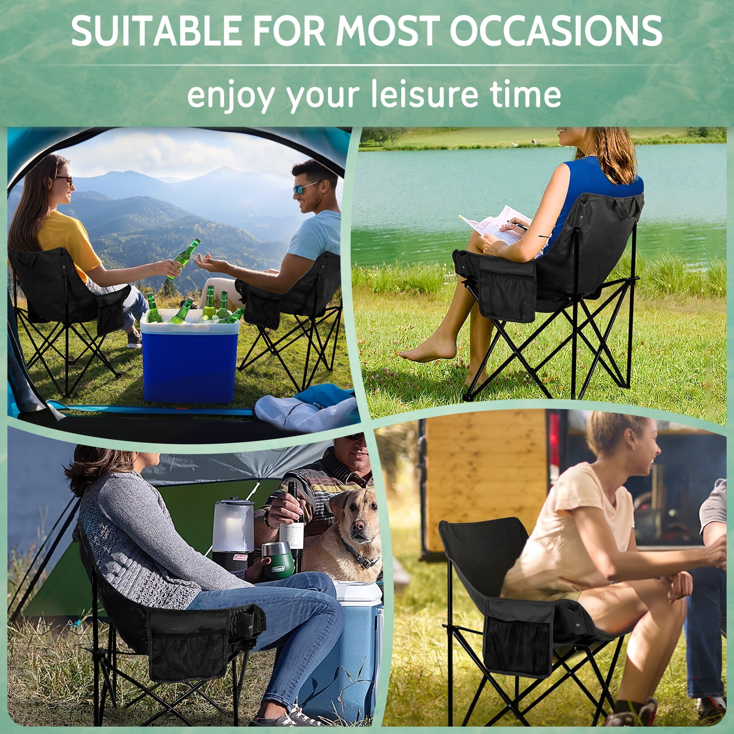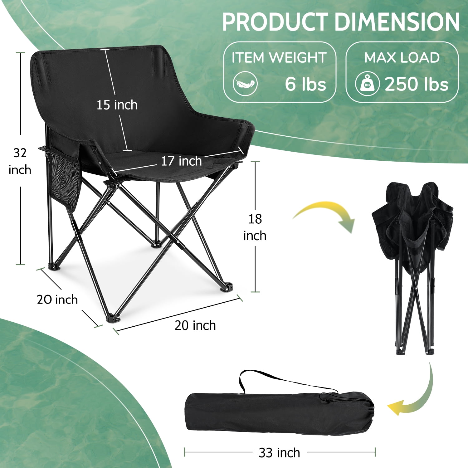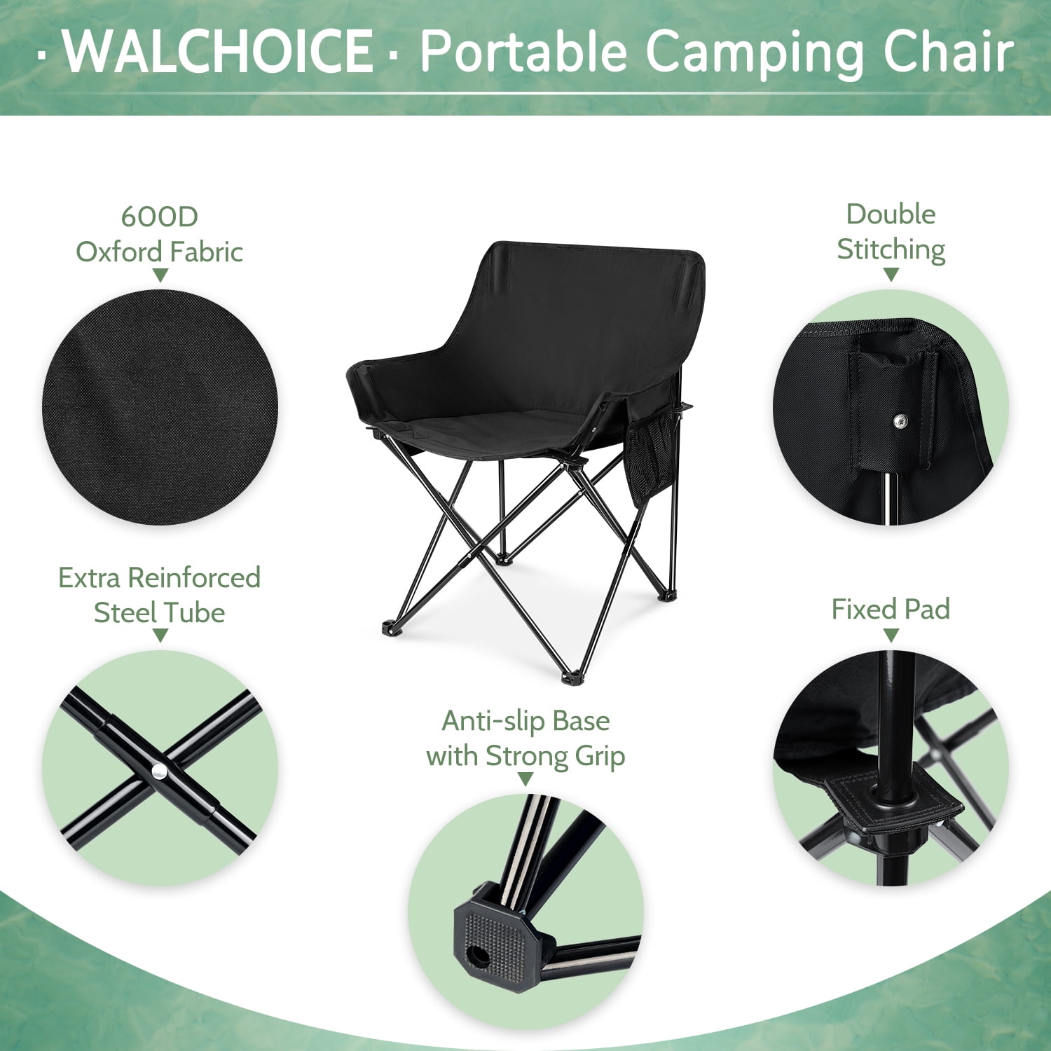 Walchoice Camping Chair for Adults, Portable Compact Folding Lawn Chair Camp Chair with Carry Bag for Outdoor Fishing Hiking Travel Beach, Black