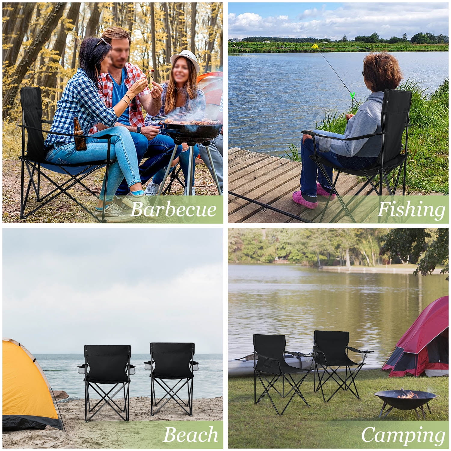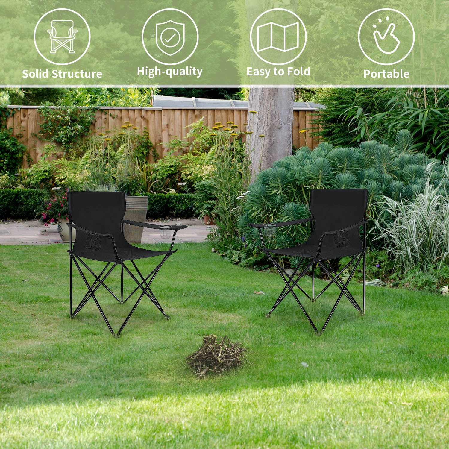 Walchoice camping chair is made of 600D oxford fabric and steel pipe combination for extreme durability. It features the advantage of waterproof, wear resistance, corrosion resistance, soft, breathable, durable and easy-to-clean. Its exquisite craftsmanship and solid structure are ideal for a wide range of usage. It is foldable and portable to allow you to take it anywhere. It is also a great gift. Meet your different needs! Specification Name: Camping Chair Brand: Walchoice Material: 600D Oxford Fabric, Steel Pipe Color: Black Overall Dimension: 21 x 21 x 35.4 inches Package: Camping Chair x 2 Feature: 600D Oxford Fabric, Double-layer Fabric, Full Backrest Design, X-shaped Support, Waterproof, Wear Resistance, Corrosion Resistance, Foldable, Portable, Great Gift Advantages Premium Material – Made of 600D oxford fabric and steel pipe combination for extreme durability Foldable & Portable – Can be folded up effortlessly and taken anywhere conveniently Comfortable Design – Full backrest and armrests design provide targeted support for you A Great Gift – Also a good choice as a gift for campers, hikers and other outdoor enthusiasts