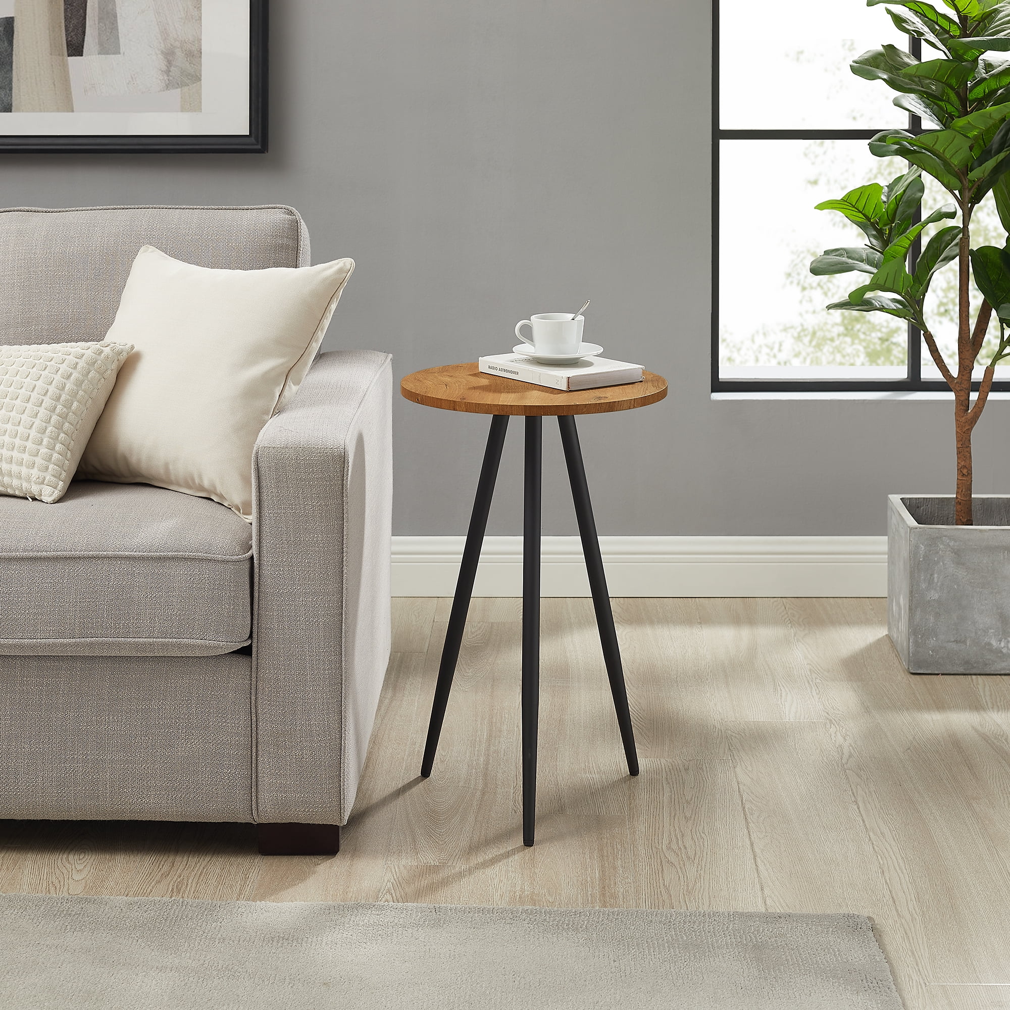 Walker Edison 16” Modern Glam Tapered 3-Leg Side Table, English Oak/Black