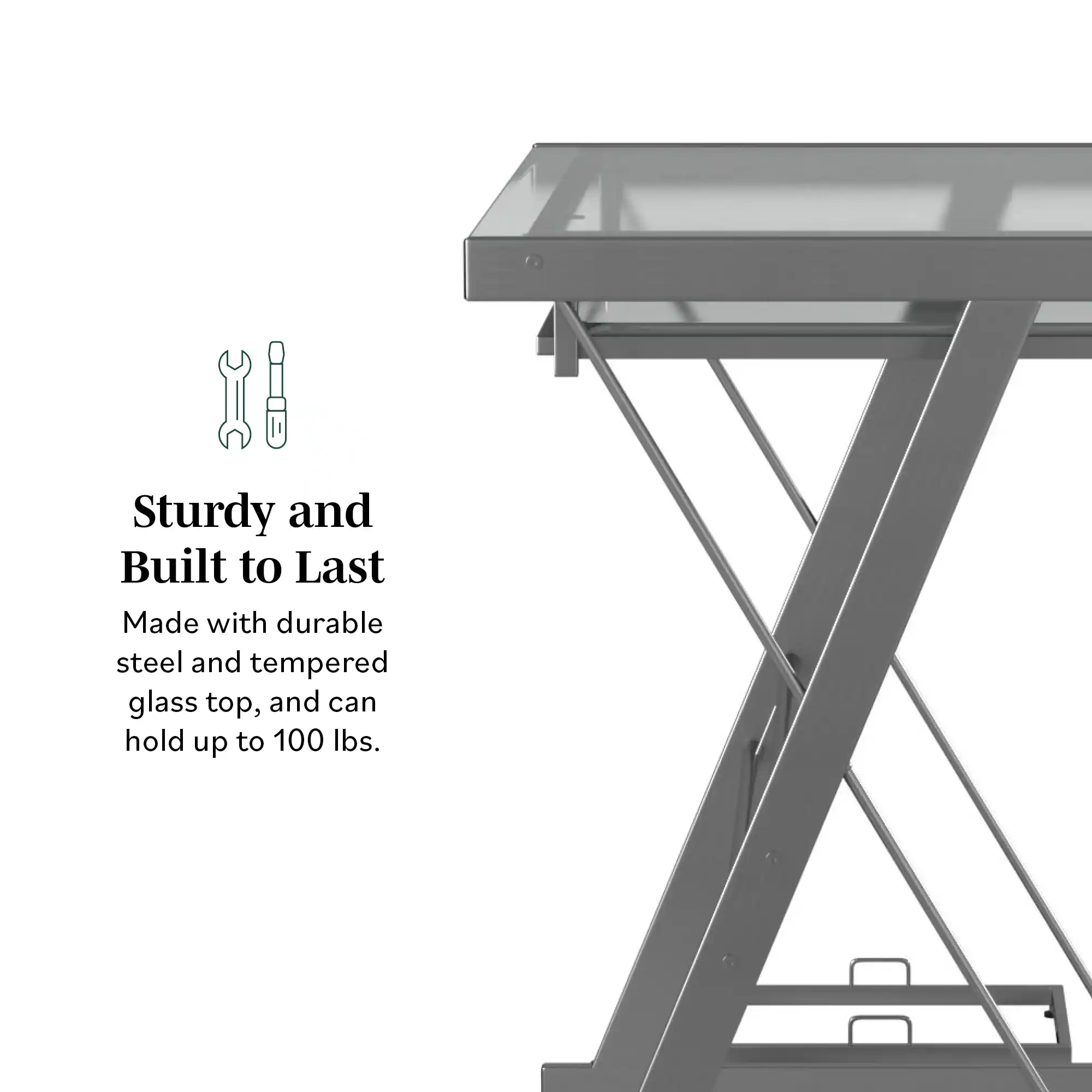- Desk Top Material: Tempered Safety Glass
