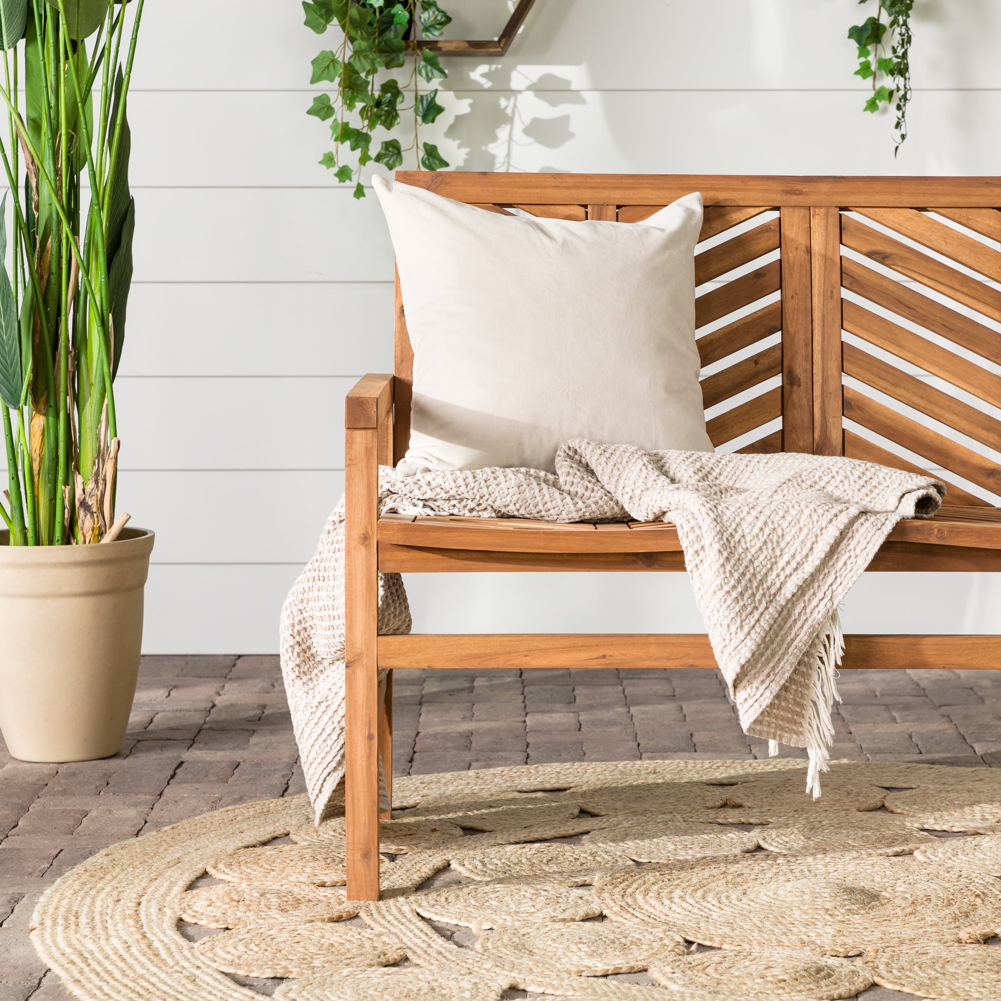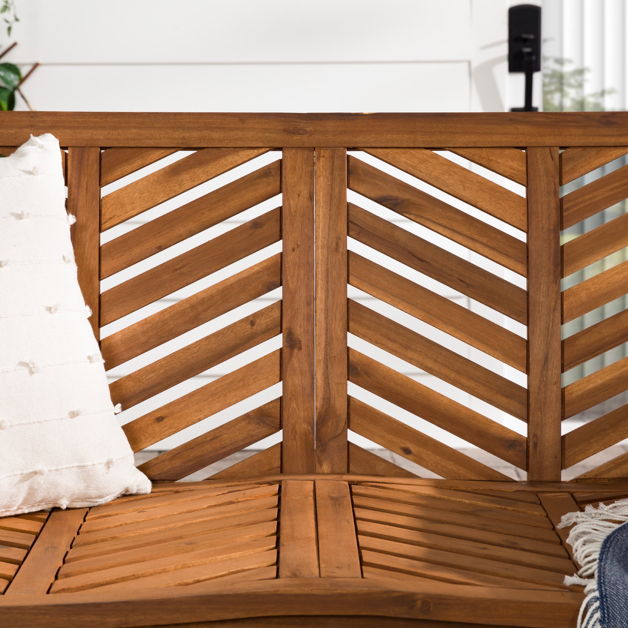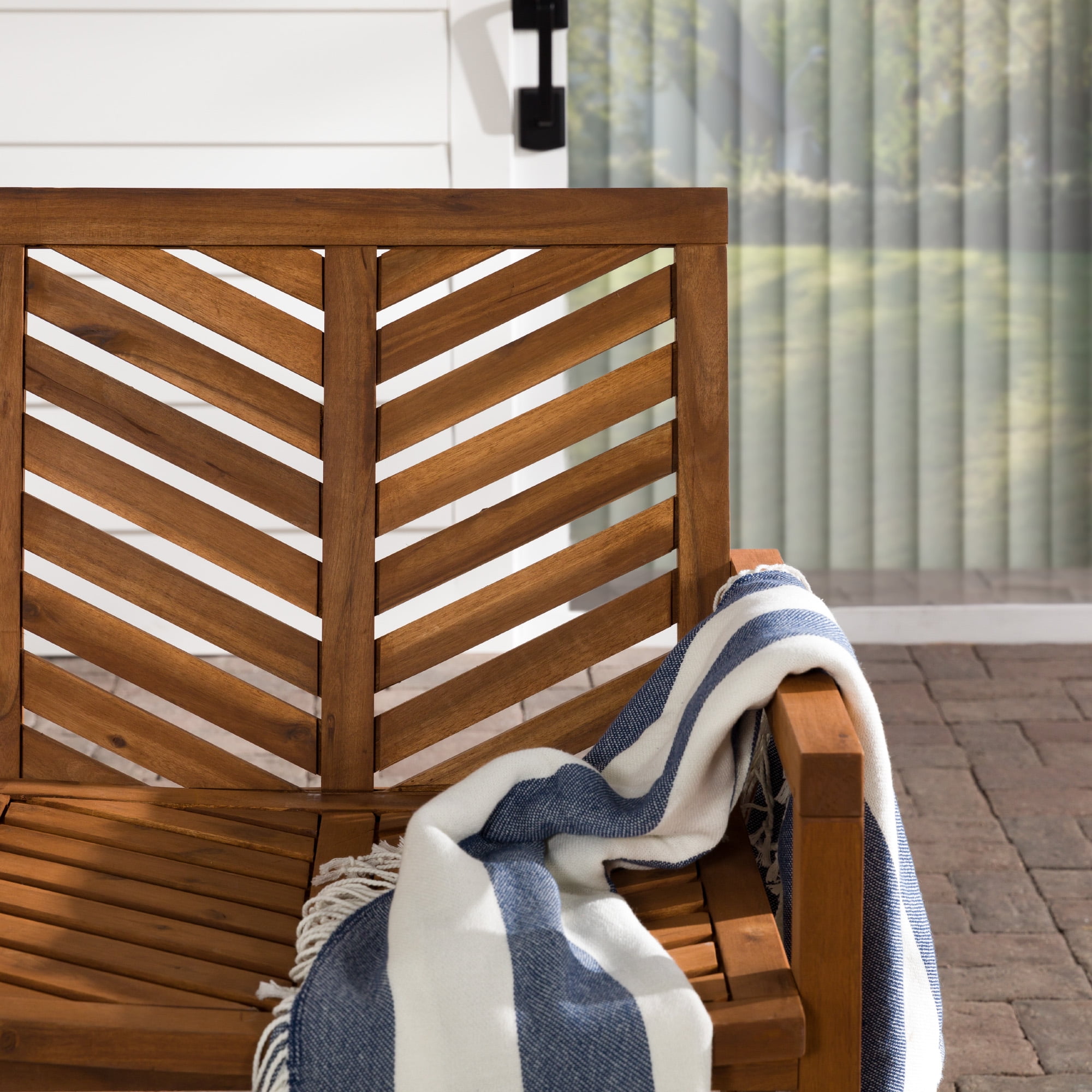 Showcasing a chevron inspired design, this patio bench will add a transitional and modern style to your outdoor living space. Made of acacia wood, making it perfect for outdoor use as it is both weather and UV resistant. Pair this outdoor bench with your other outdoor pieces, whether that be your lounge chairs or another loveseat for a complete conversation set to chat with friends and family outdoors. Set in your backyard, or on your patio, deck, or porch.