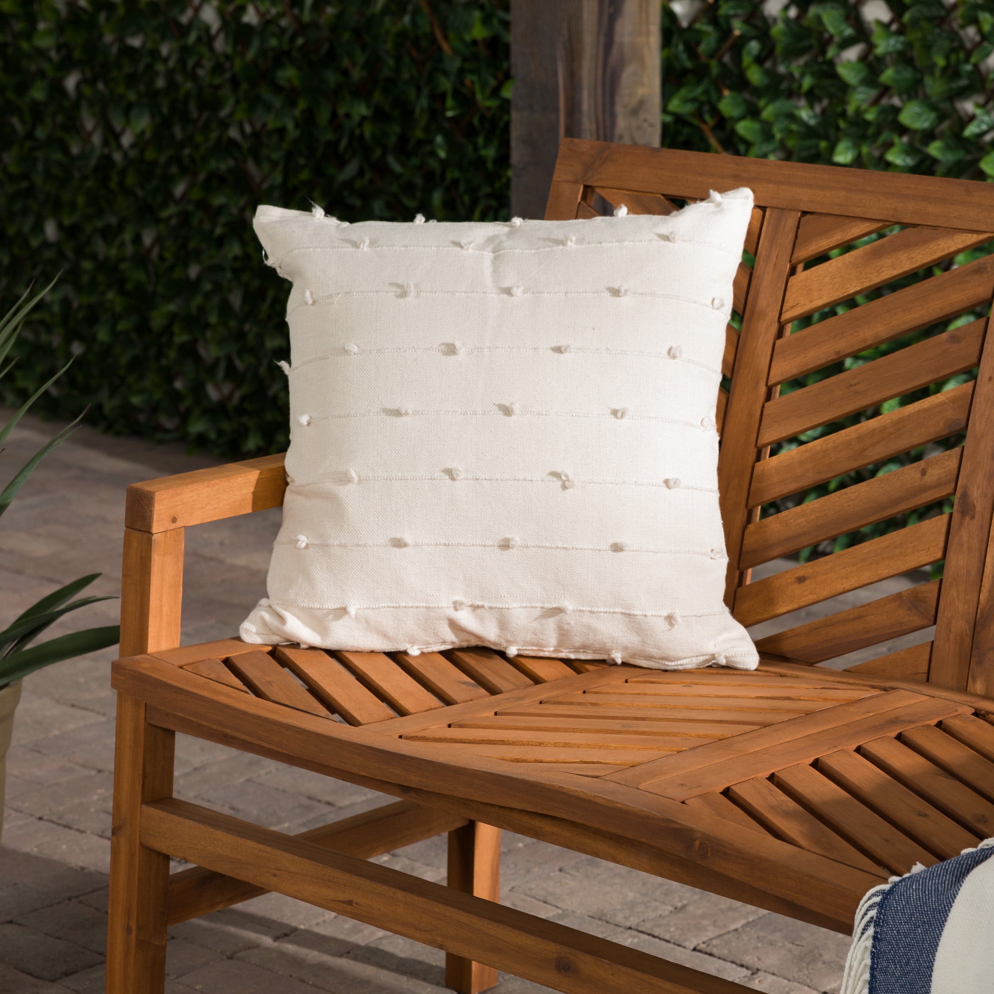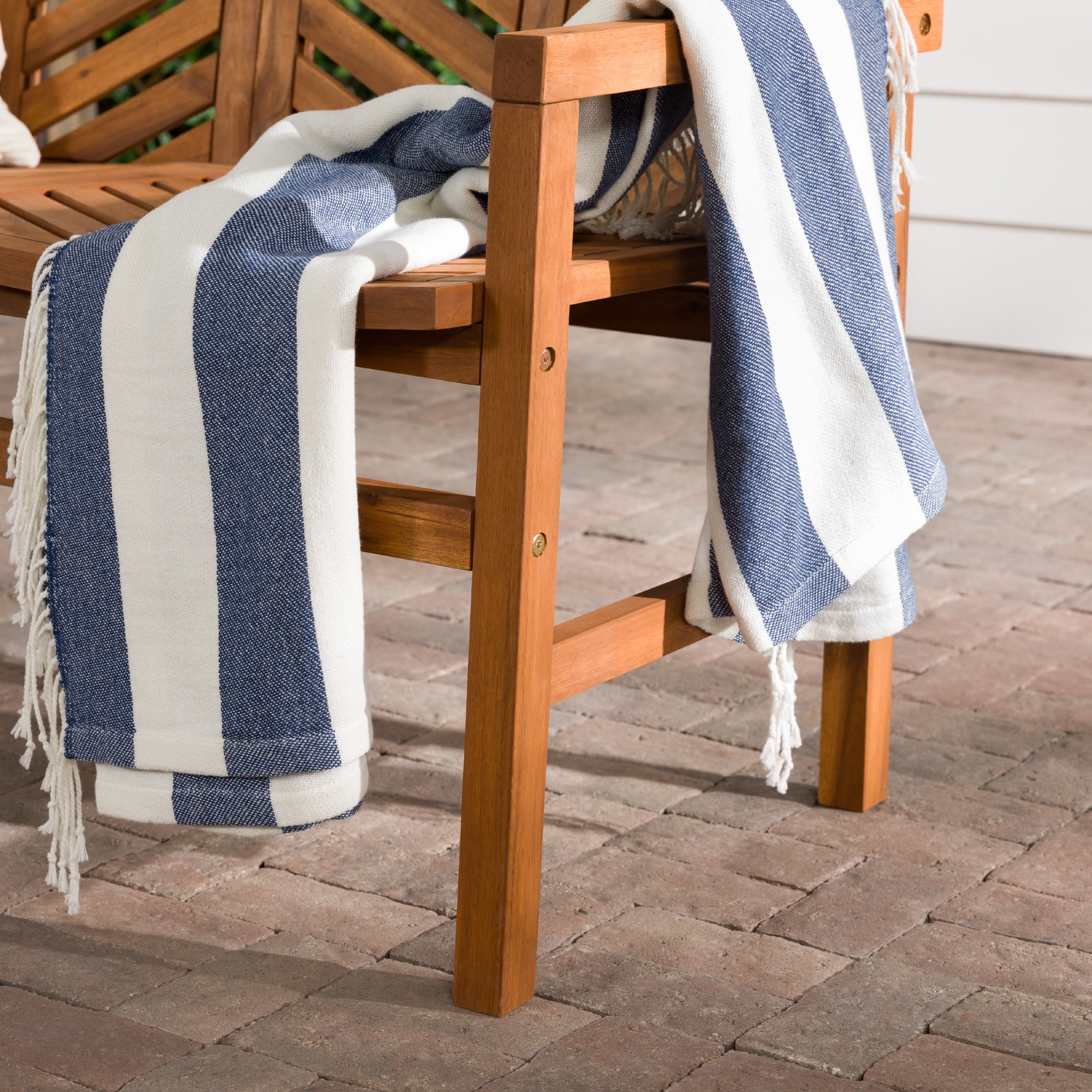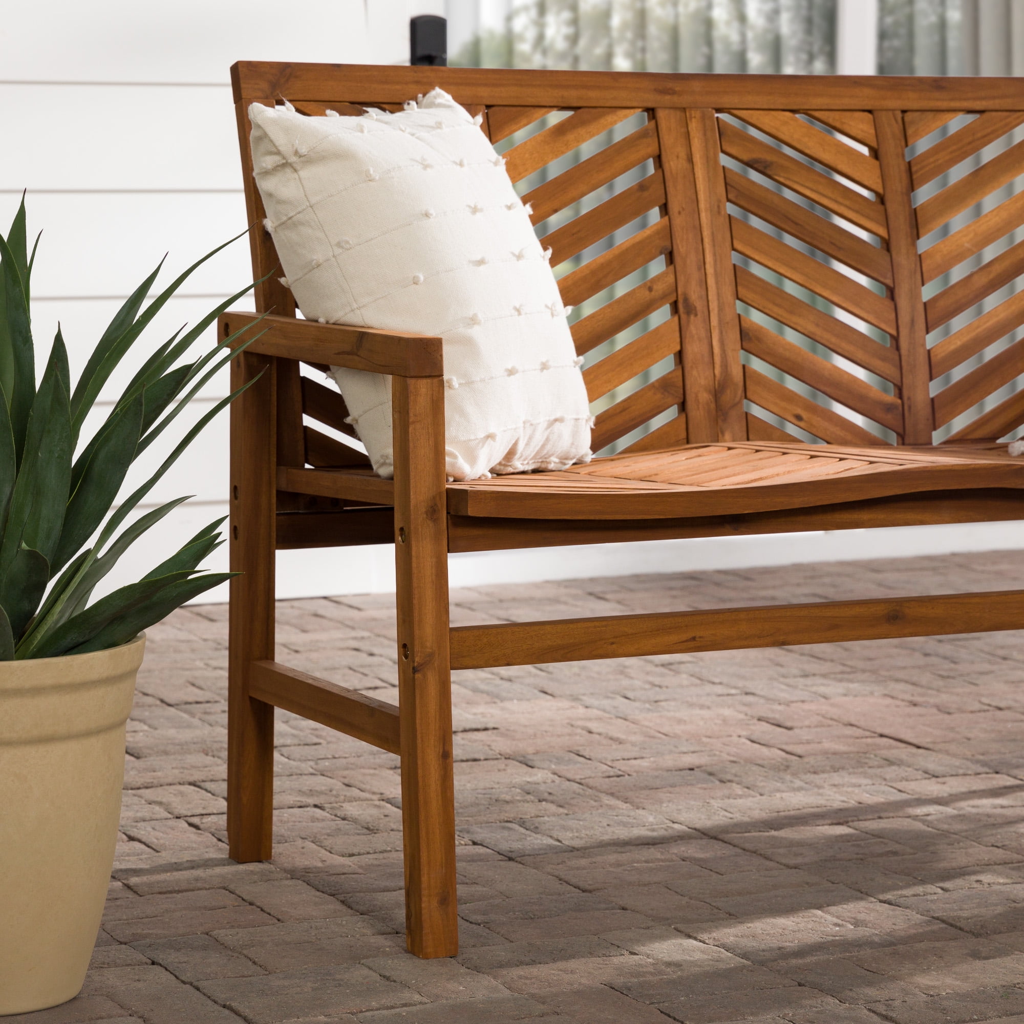 Showcasing a chevron inspired design, this patio bench will add a transitional and modern style to your outdoor living space. Made of acacia wood, making it perfect for outdoor use as it is both weather and UV resistant. Pair this outdoor bench with your other outdoor pieces, whether that be your lounge chairs or another loveseat for a complete conversation set to chat with friends and family outdoors. Set in your backyard, or on your patio, deck, or porch.