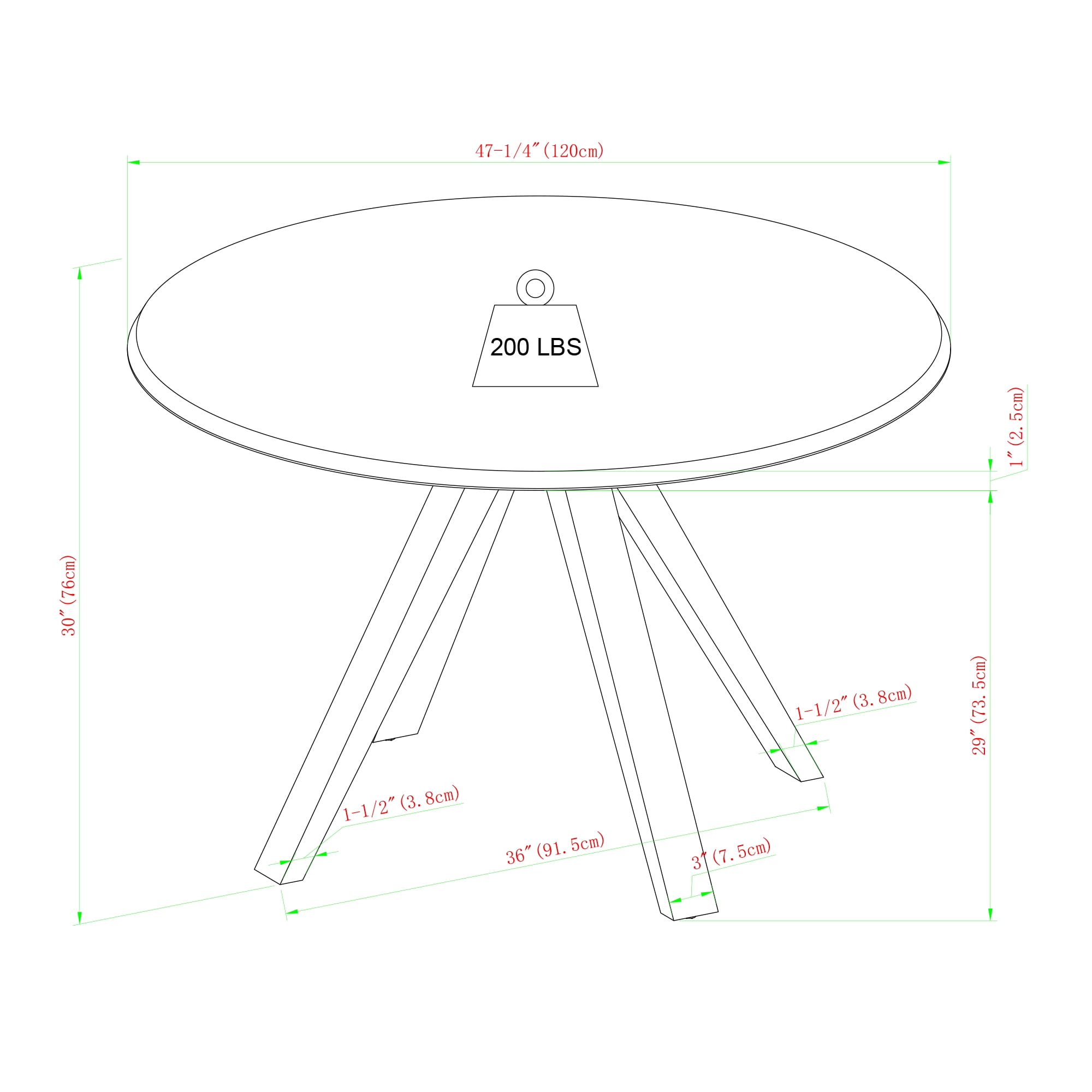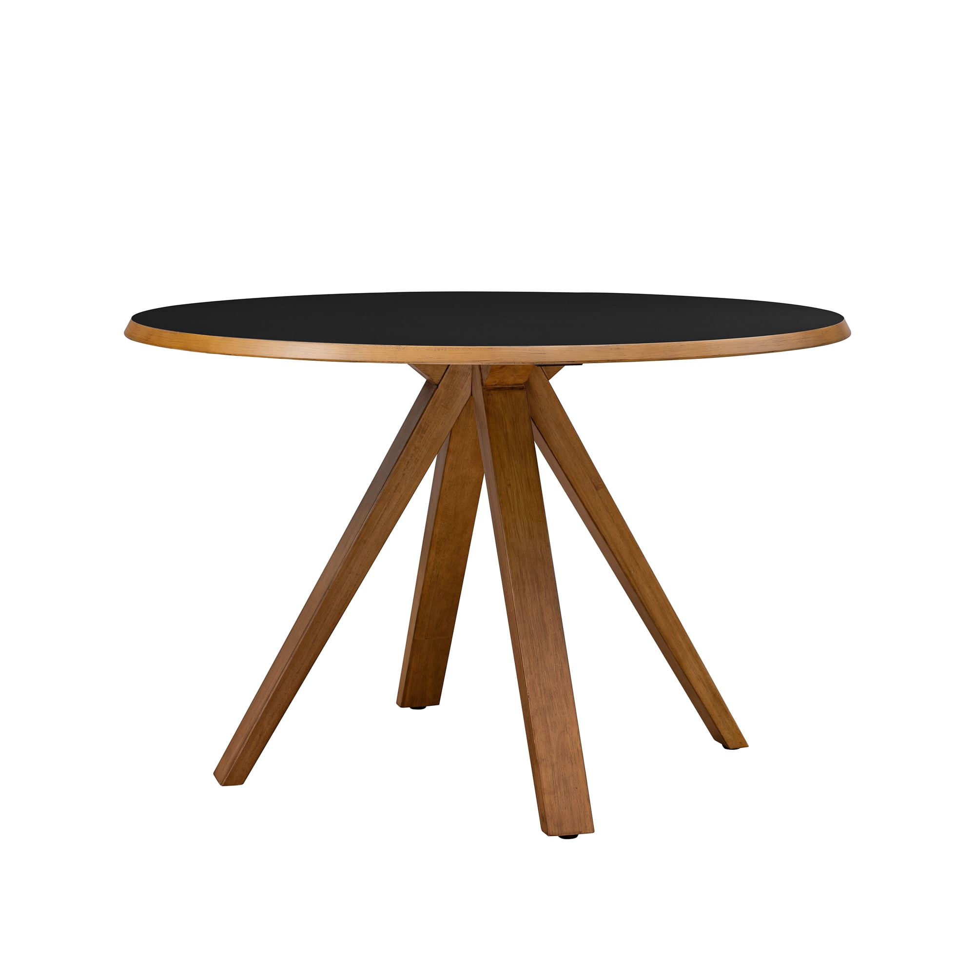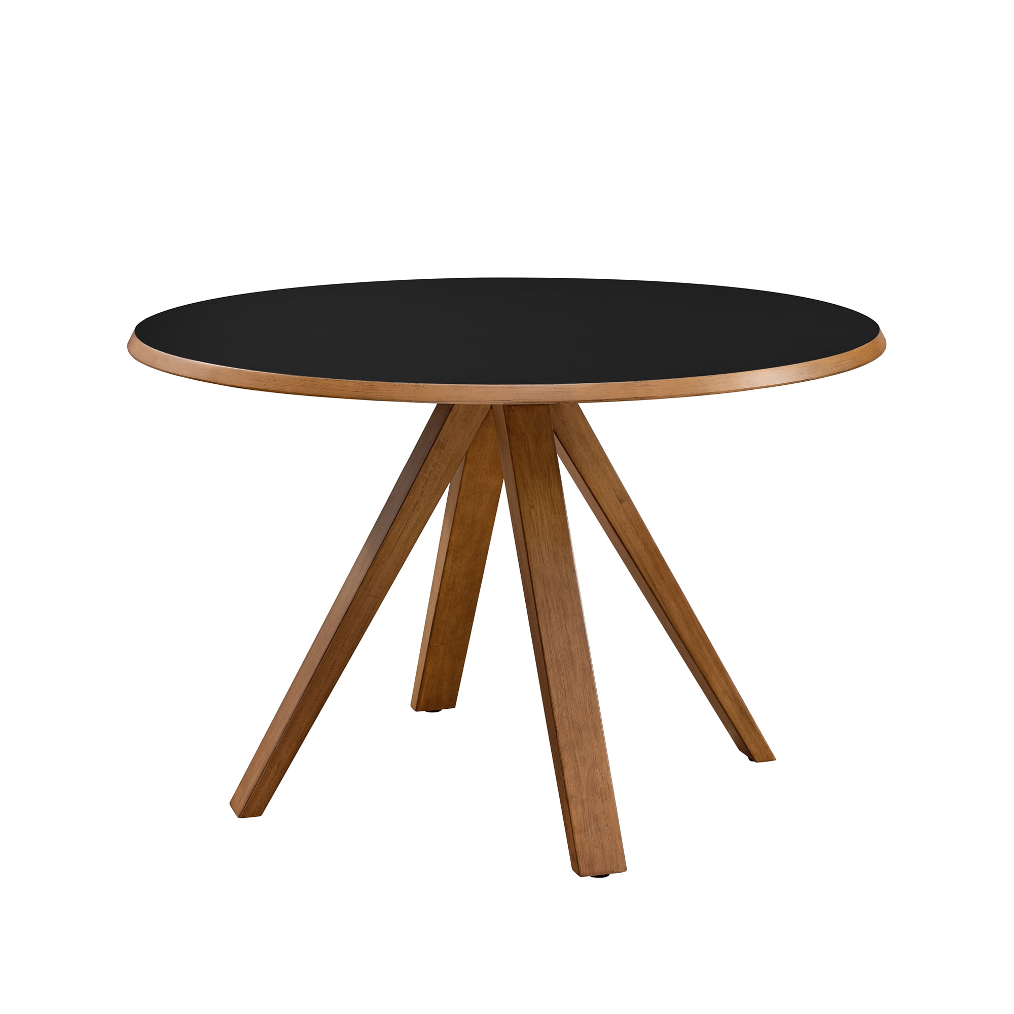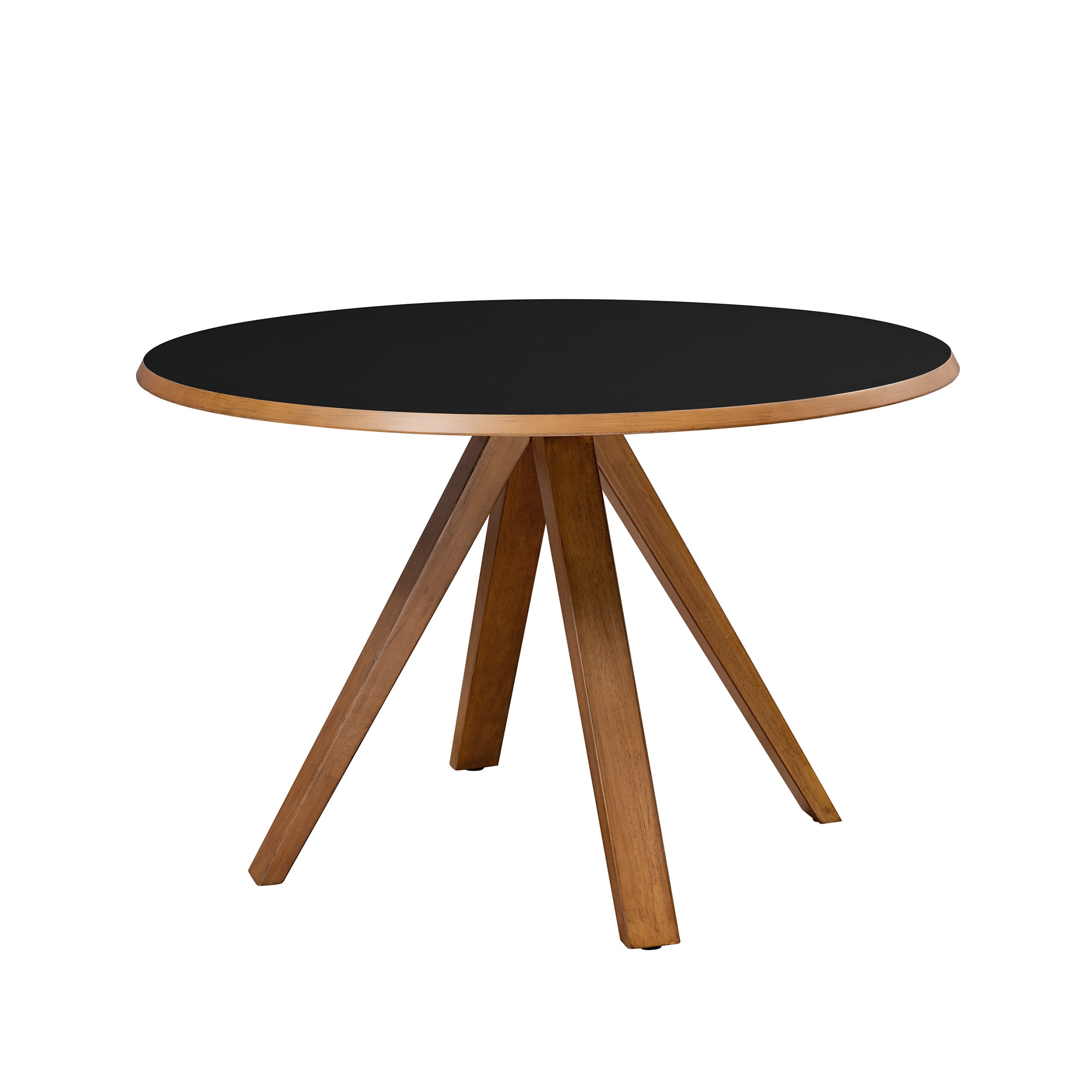 Revel in life’s simple pleasures with this delightfully minimalist round dining table. Seat up to six friends for brunch or hosting a casual game of cards with no fear of ruining your new table, as the moisture-resistant, melamine-coated tabletop is up to any task. Whether it’s in your designated dining room or studio apartment, the simple silhouette and small-space-friendly build makes this table the perfect component to tastefully furnish your forever home or temporary abode. Made with solid rubberwood, sturdy engineered wood, and a stunning laminate finish, this table is sure to provide you and your family with many memorable meals. Features: Finish: Black Materials: Made with warp-resistant MDF (Engineered Wood), solid rubberwood, and durable laminate Powder-coated steel base Moisture-resistant, melamine-coated Comfortably seats 4-6 people Ideal for mid-century, modern, or Scandi-inspired spaces Display in your small space or dining room Specifications: Product Dimensions: 30″H x 47.25″W x 47.25″D Product Weight: 70 lbs Assembly details: Ships ready-to-assemble with step-by-step instructions