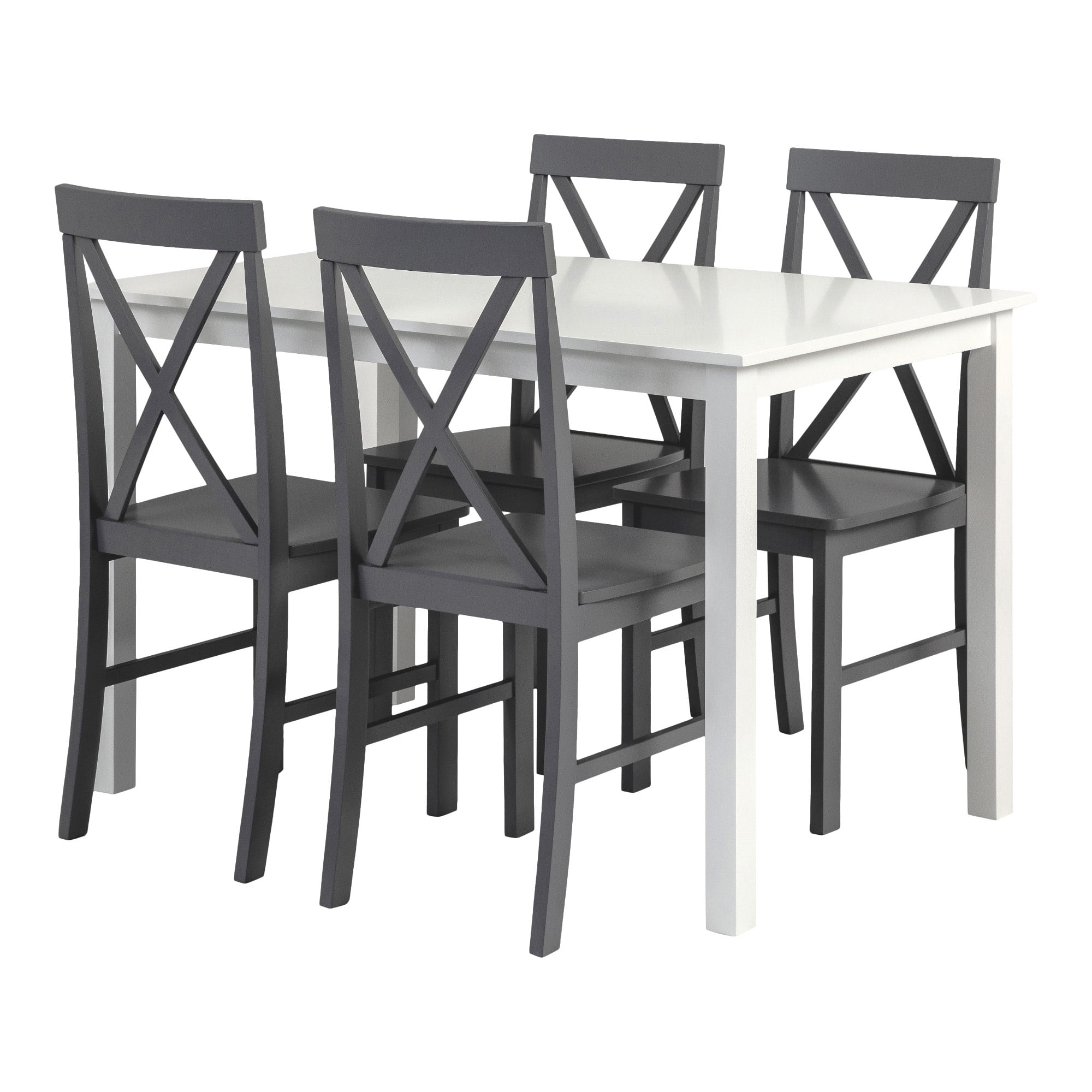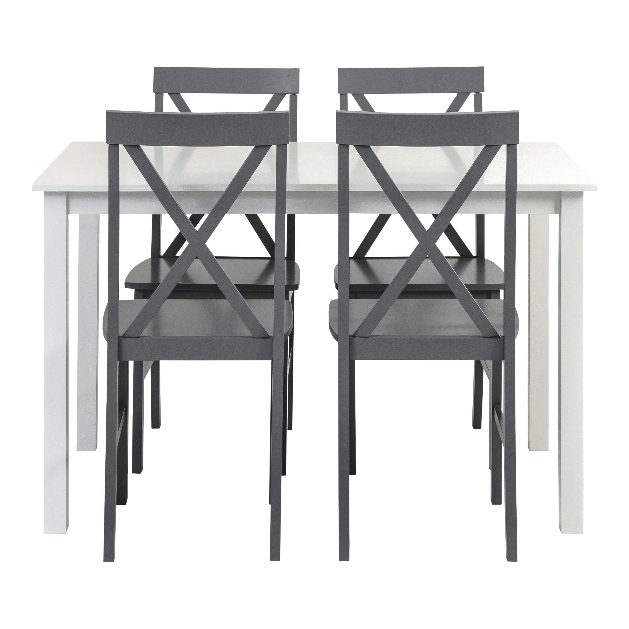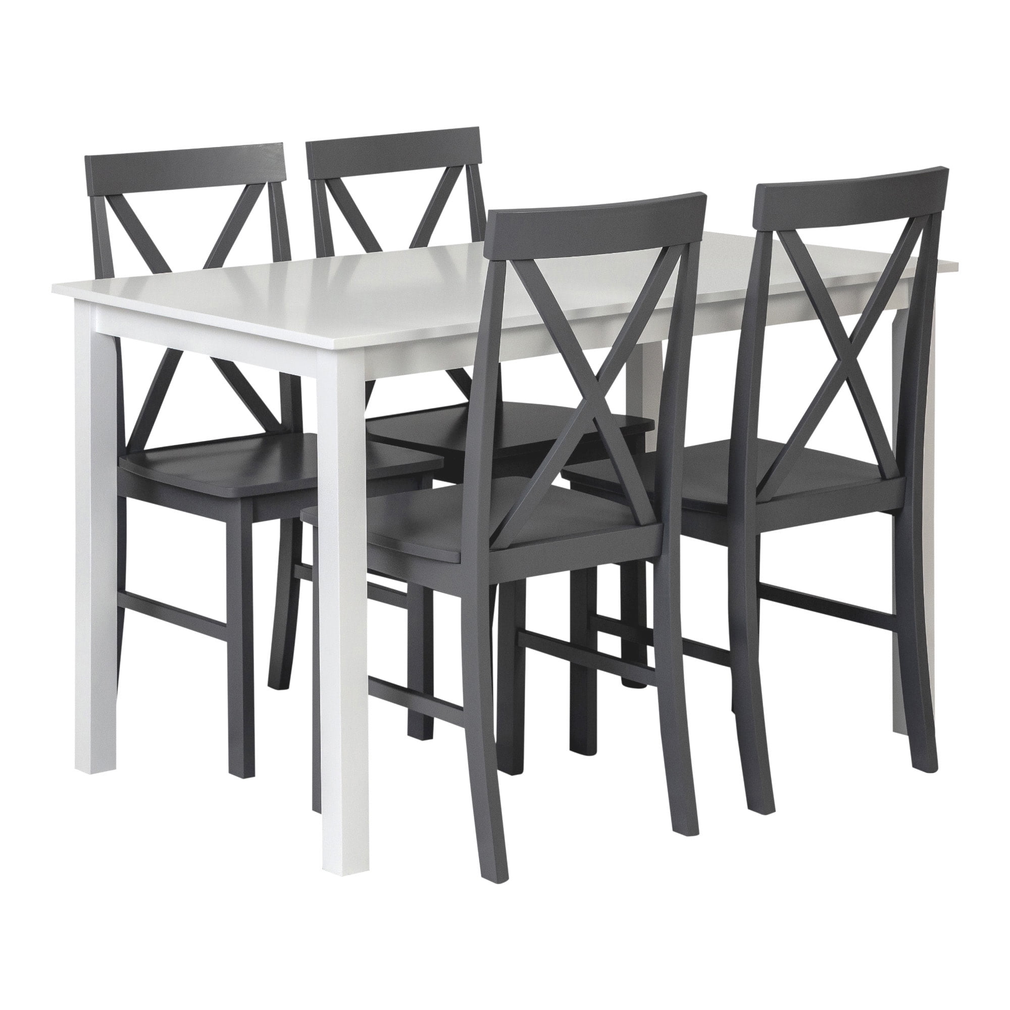 Walker Edison 5-Piece Solid Wood Farmhouse Dining Set – White/Grey