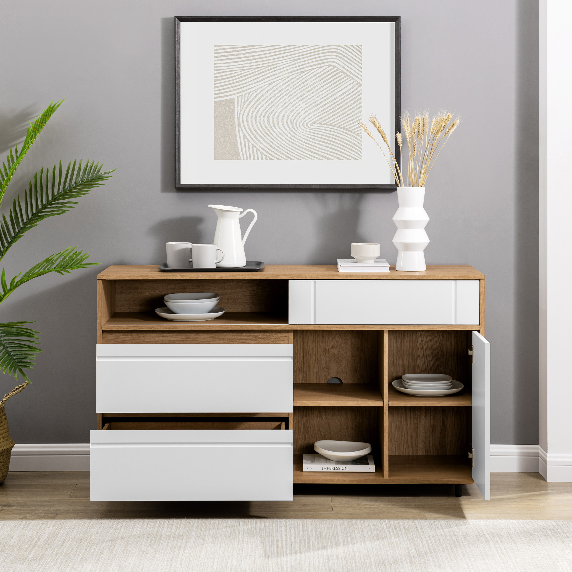 Walker Edison 52” Contemporary 3-Cubby 2-Drawer Storage Sideboard, Coastal Oak/Solid White