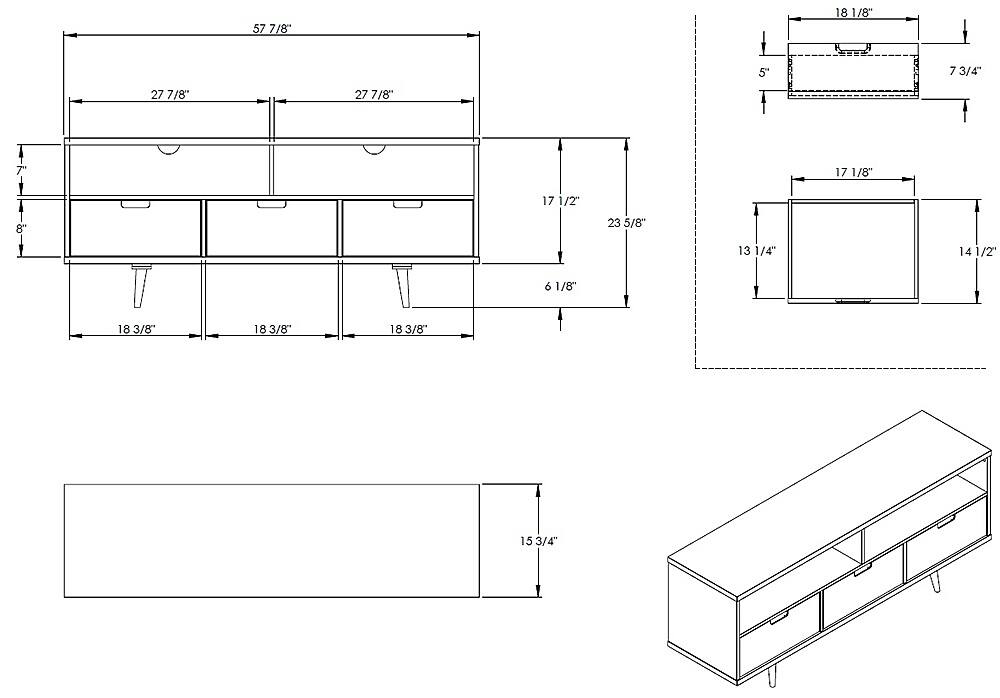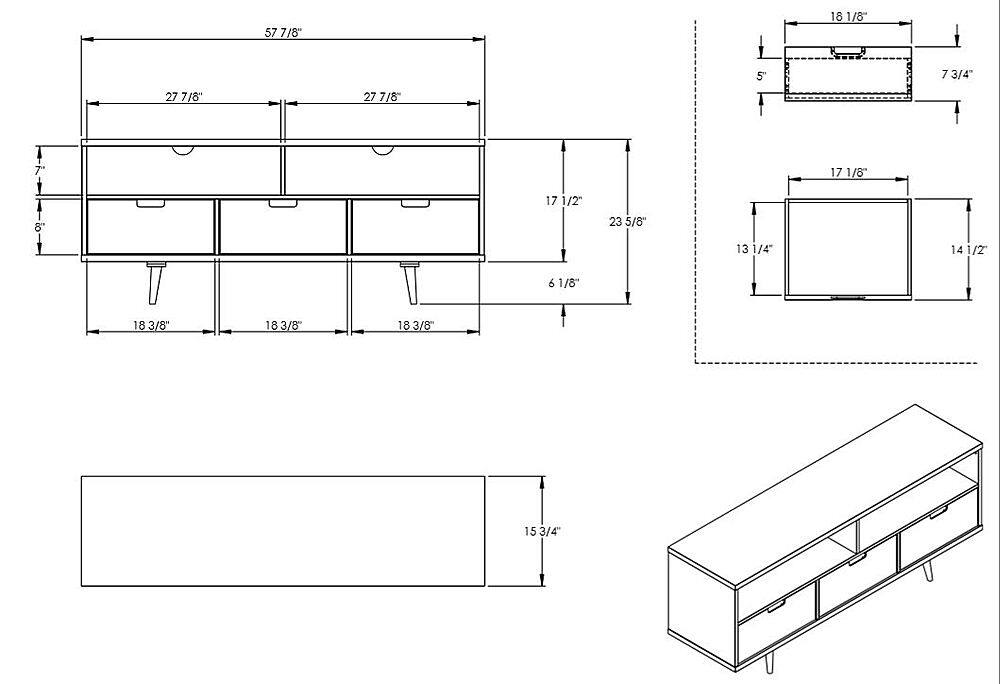 - Product Name: 58″ Mid-Century Modern 3-Drawer Wood TV Stand for TVs up to 65″