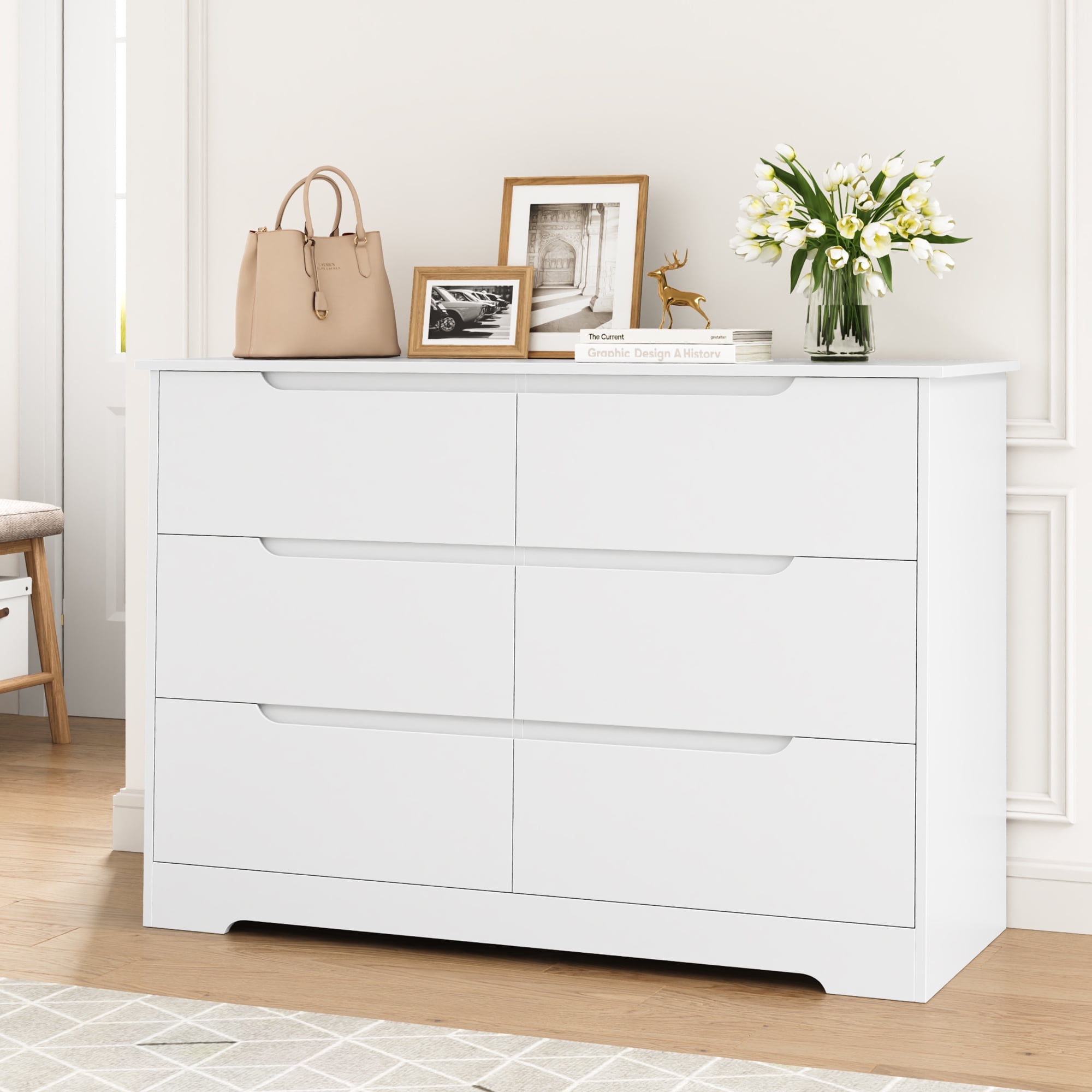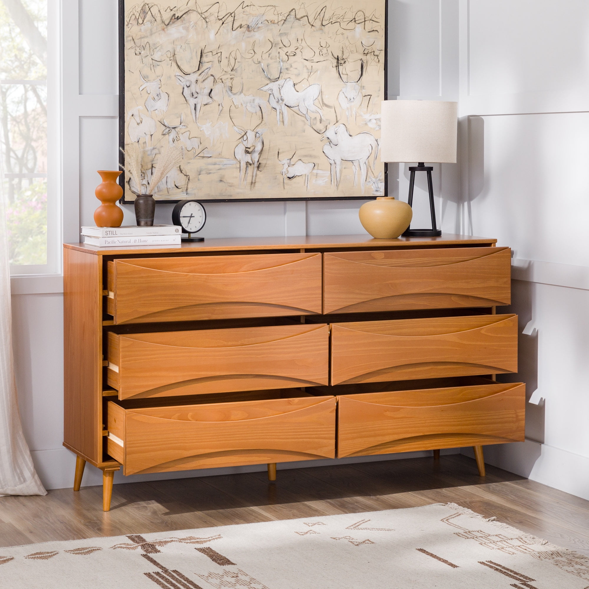 Walker Edison 58” Mid-Century Modern Curved Front 6-Drawer Dresser, Caramel