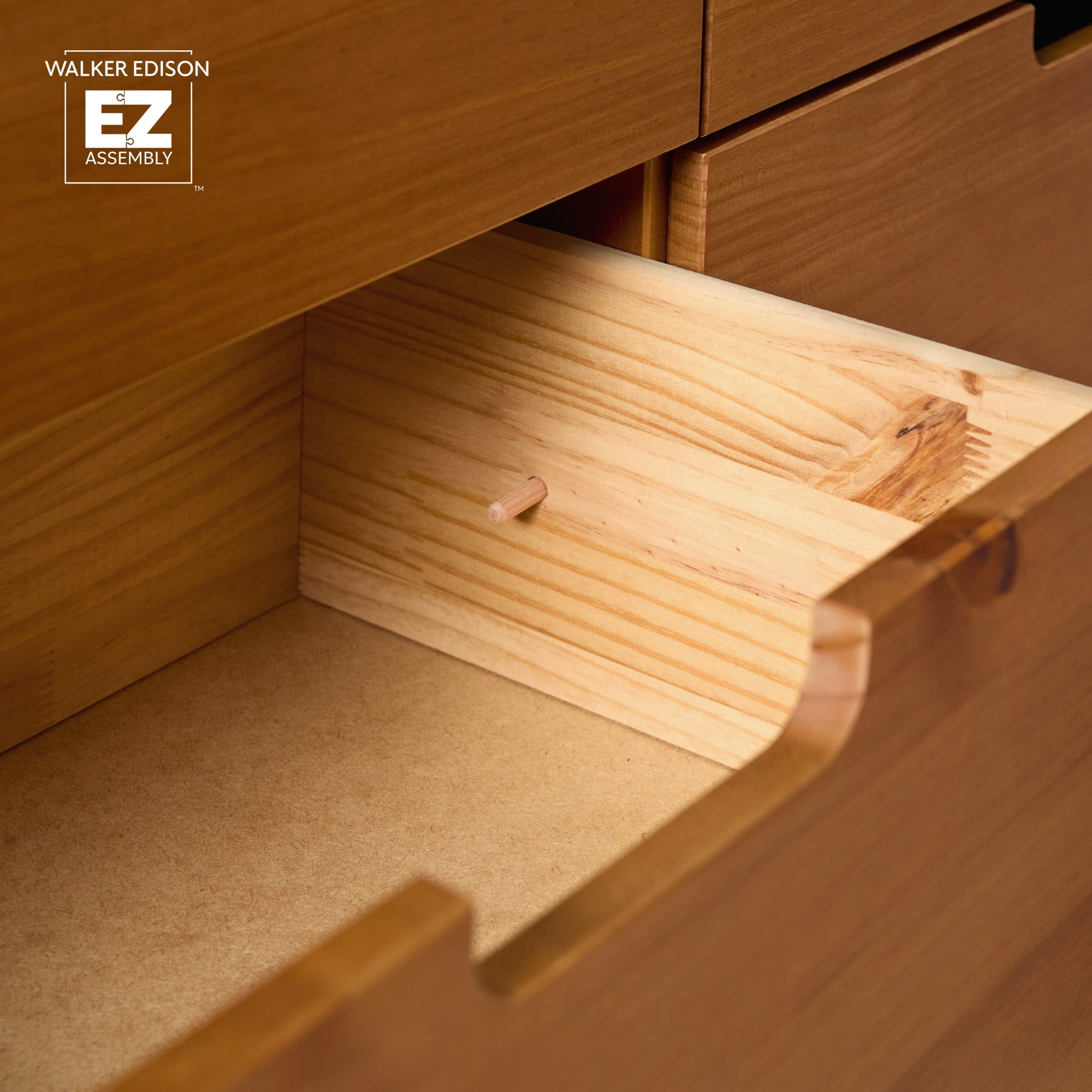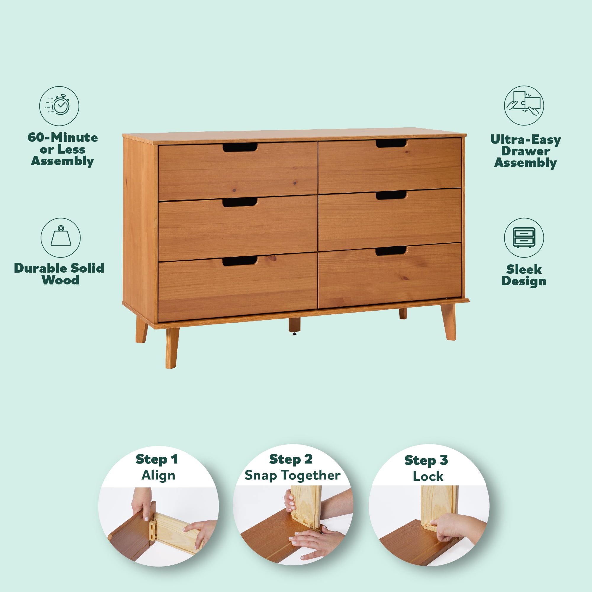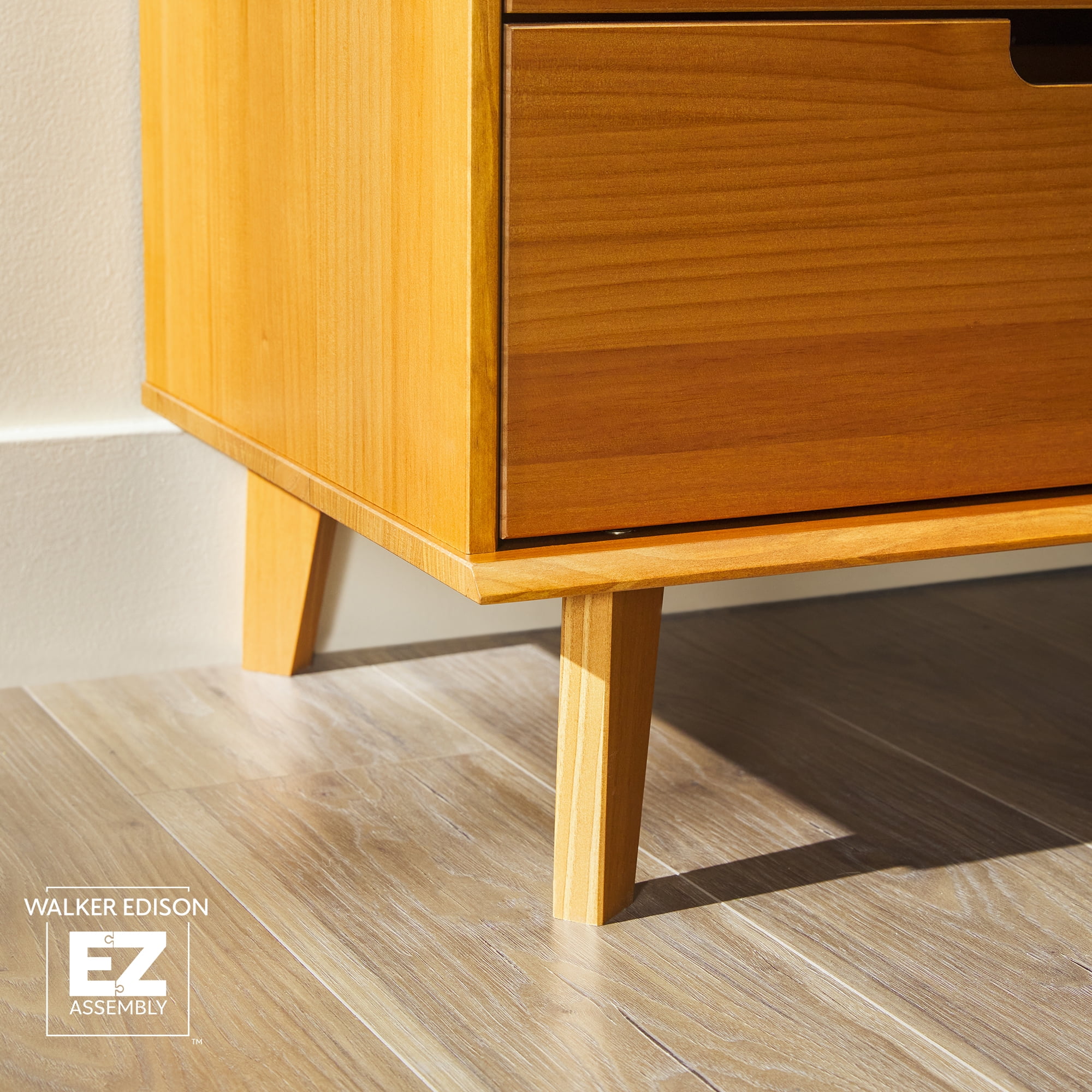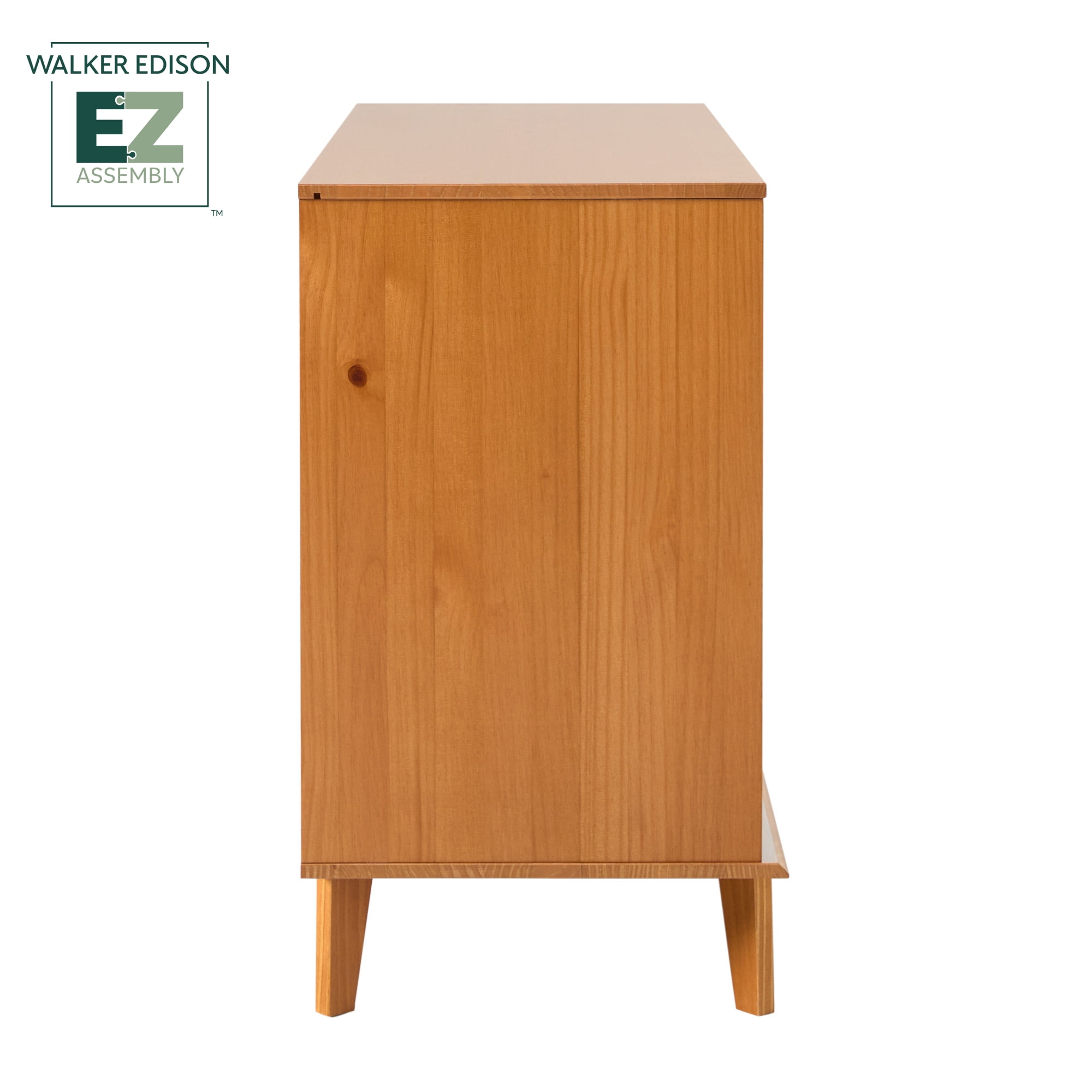 Only available at Retro, mid-century modern style Responsibly sourced solid pine wood from Brazil Ultra-easy drawer assembly, no stress required On-trend cutout handle details Deep drawers offer spacious storage Versatile storage for bedrooms or living areas Perfect for any adult, child, or guest room 60 minutes or less to build ‡ (‡ Recommended for 2-person assembly.) Assembled Dimensions: 32.88” H x 52” L x 18” W Packaged Dimensions: 7” H x 56” L x 22” W