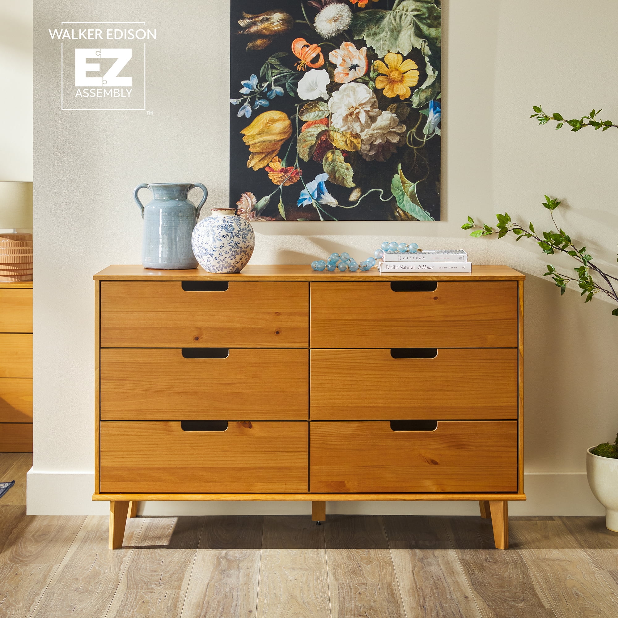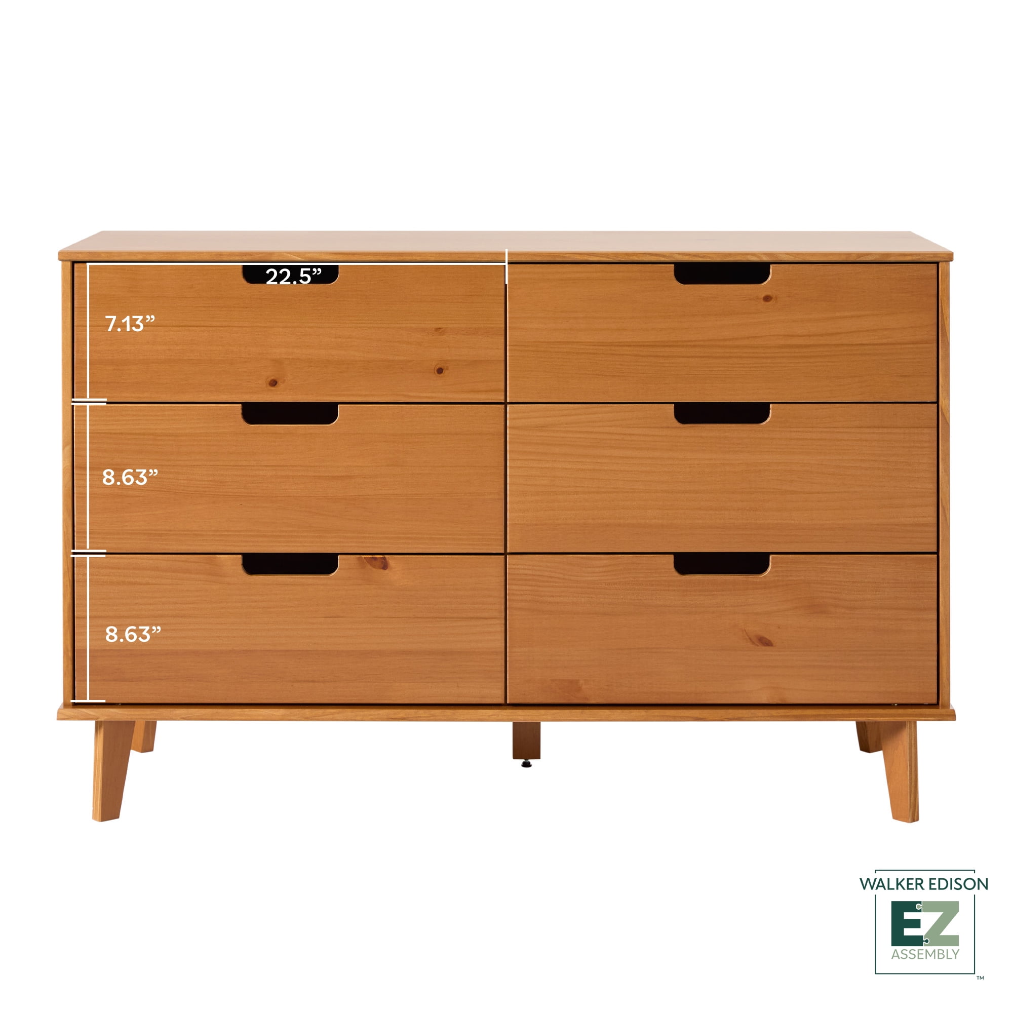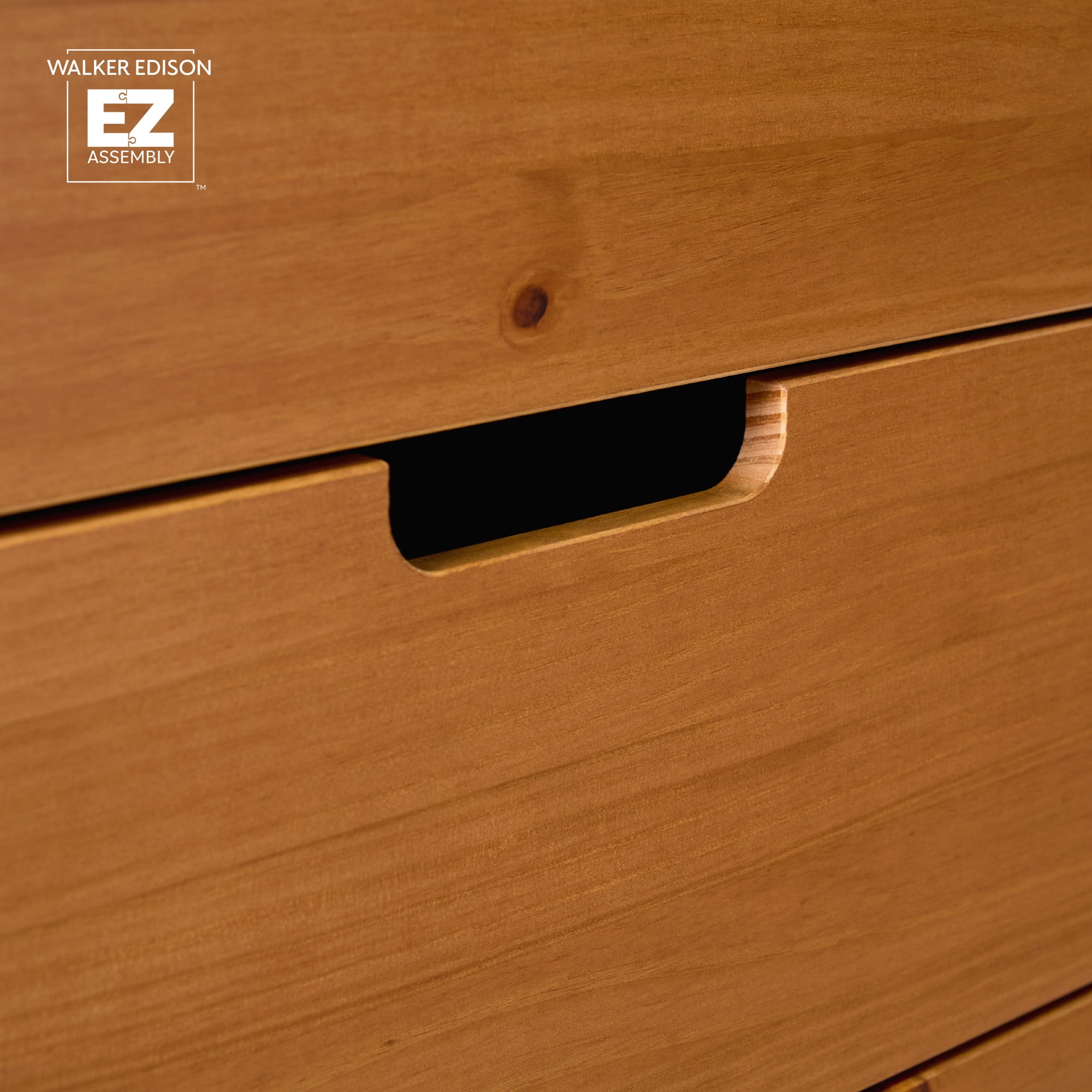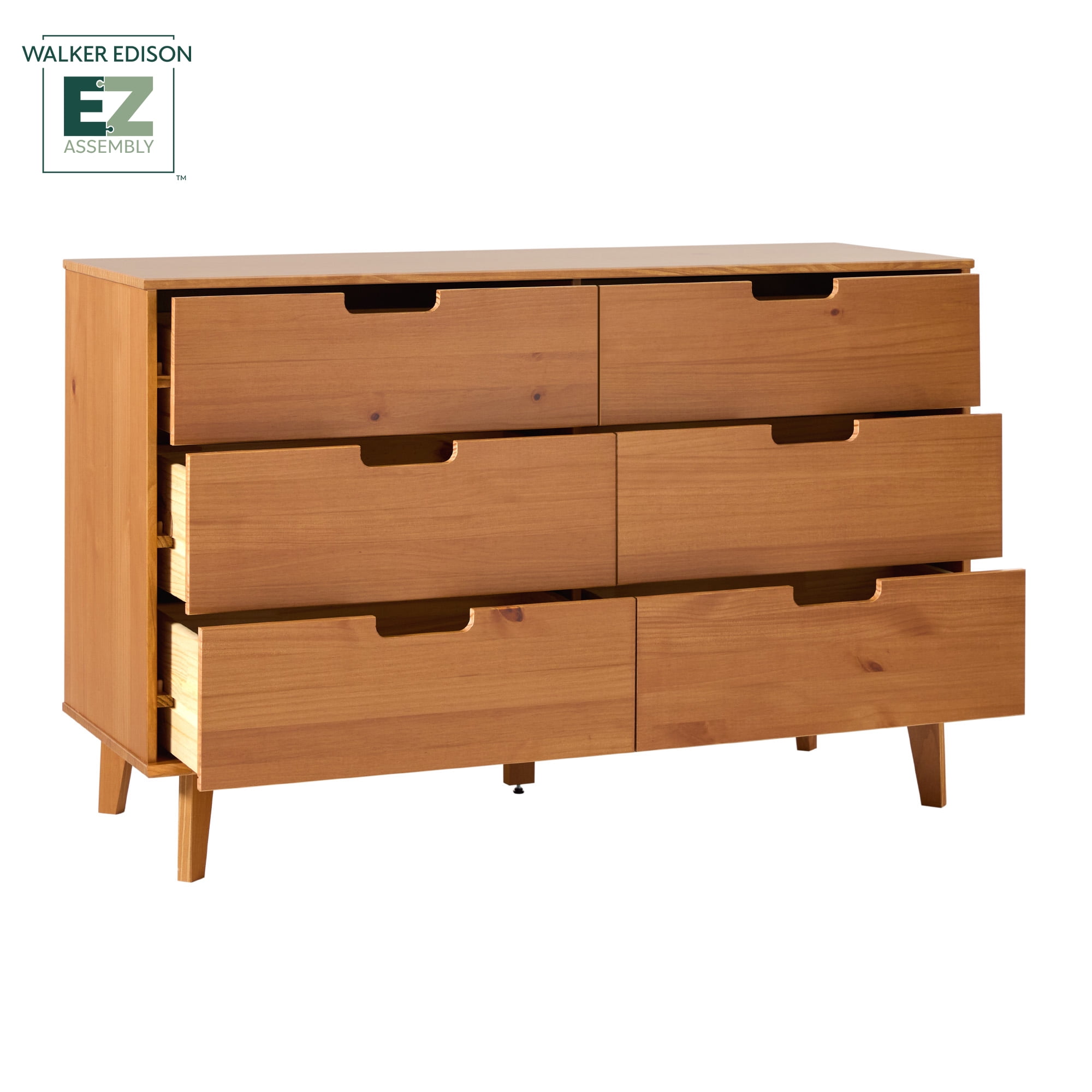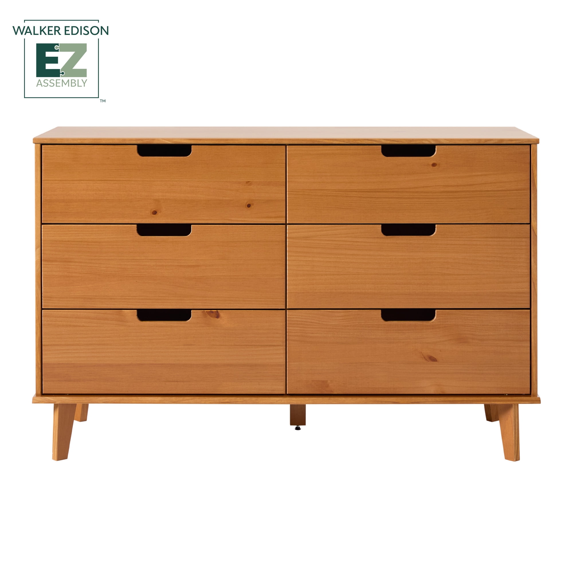 Walker Edison 6 Drawer Solid Wood Dresser with Cut Out Handles, Caramel Brown