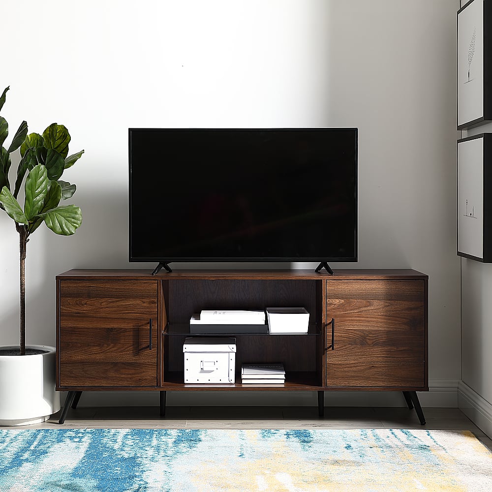 It’s Friday night but you’re not actually looking for anywhere to go because everything you need is right here. Nothing is missing in your home now that you have this 60 inch modern TV console sitting pretty in your living room. Every day it welcomes you home with its two gentle, soft-close close doors and three adjustable shelves. It perches up on six adjustable metal feet every time you walk through the door. Sure, there might be more to life than this 60-inch mid-century modern inspired TV stand, but tonight you’re not concerned with any of it. Tonight, you and this smooth combination of open and closed storage are more than enough.
