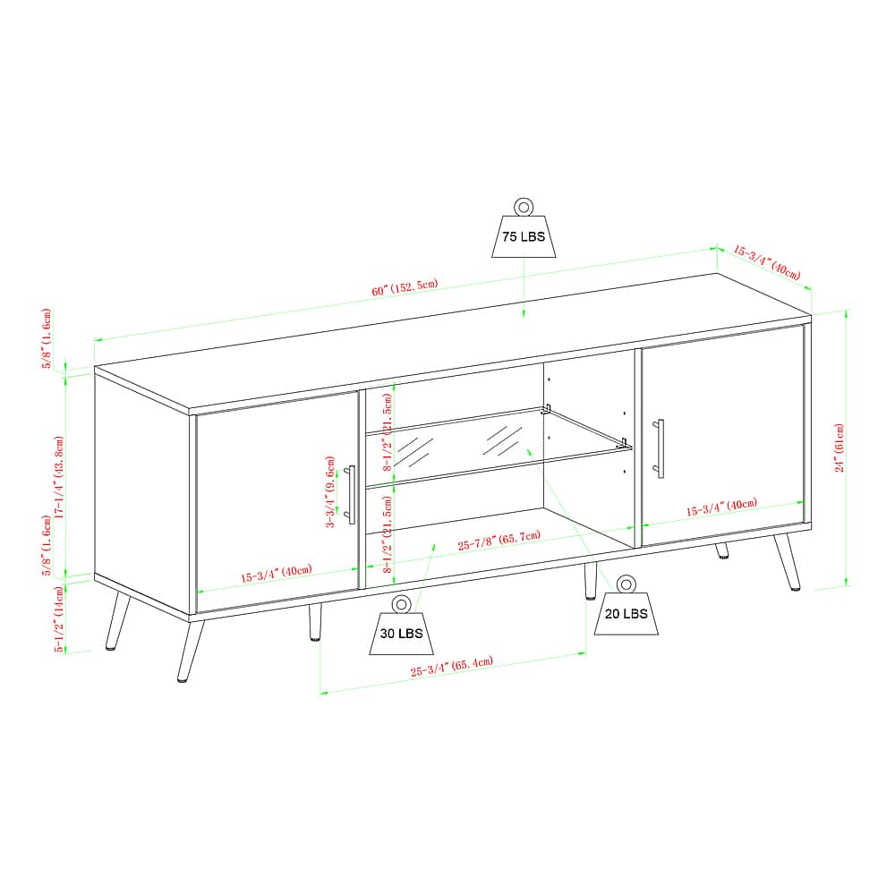 - Product Name: 60″ Mid Century Modern TV Stand Cabinet for Most TVs Up to 65″