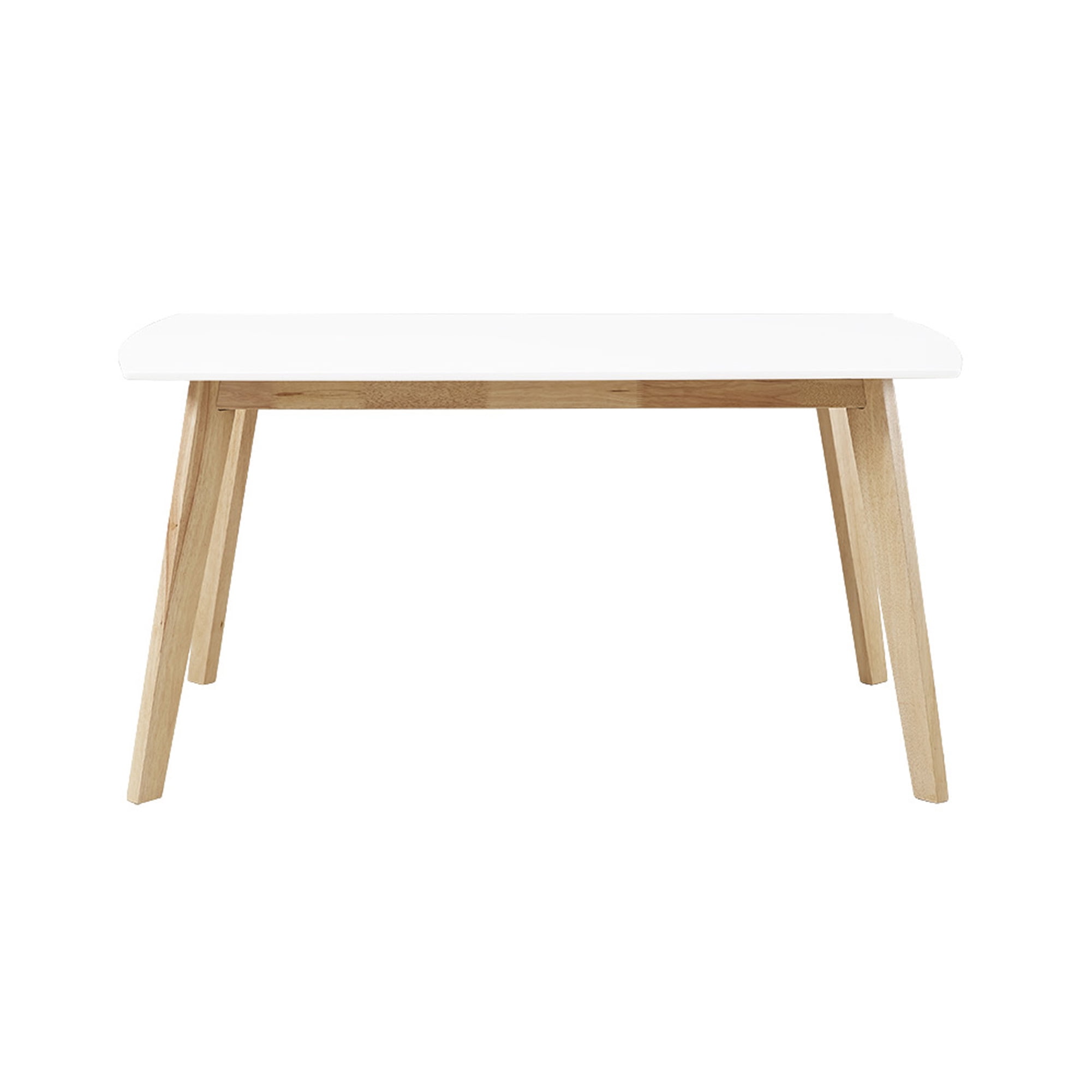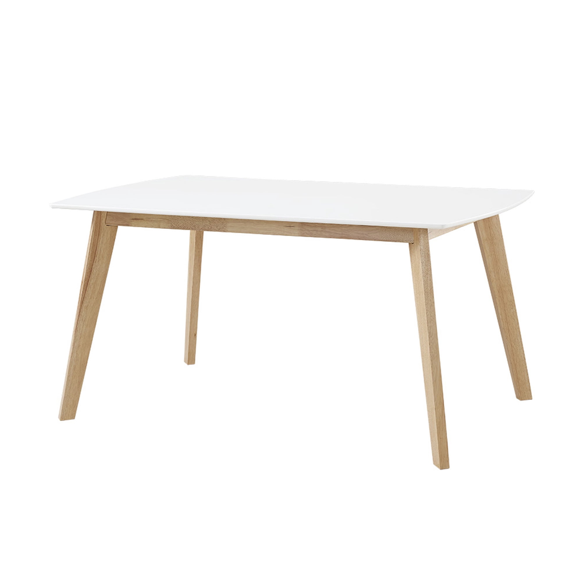 Bring retro flair into your kitchen or dining area with this stunning Retro Modern White Engineered Wood Dining Table. The beautiful painted white finish is accentuated by natural solid wood legs, making this dining set a perfect addition in your home. The neutral color palette makes this table an easy fit with your home décor while the unique design adds a vintage vibe. Features: Finish: White/Natural Material: Solid wood and high-grade MDF Retro modern design Beautiful painted finish Sturdy solid wood legs Pairs with our matching Retro Modern Dining Chairs Ships ready-to-assemble with step-by-step instructions Specifications: Product Dimensions: 30″ H x 60″ W x 35″ D Product Weight: 45 lbs