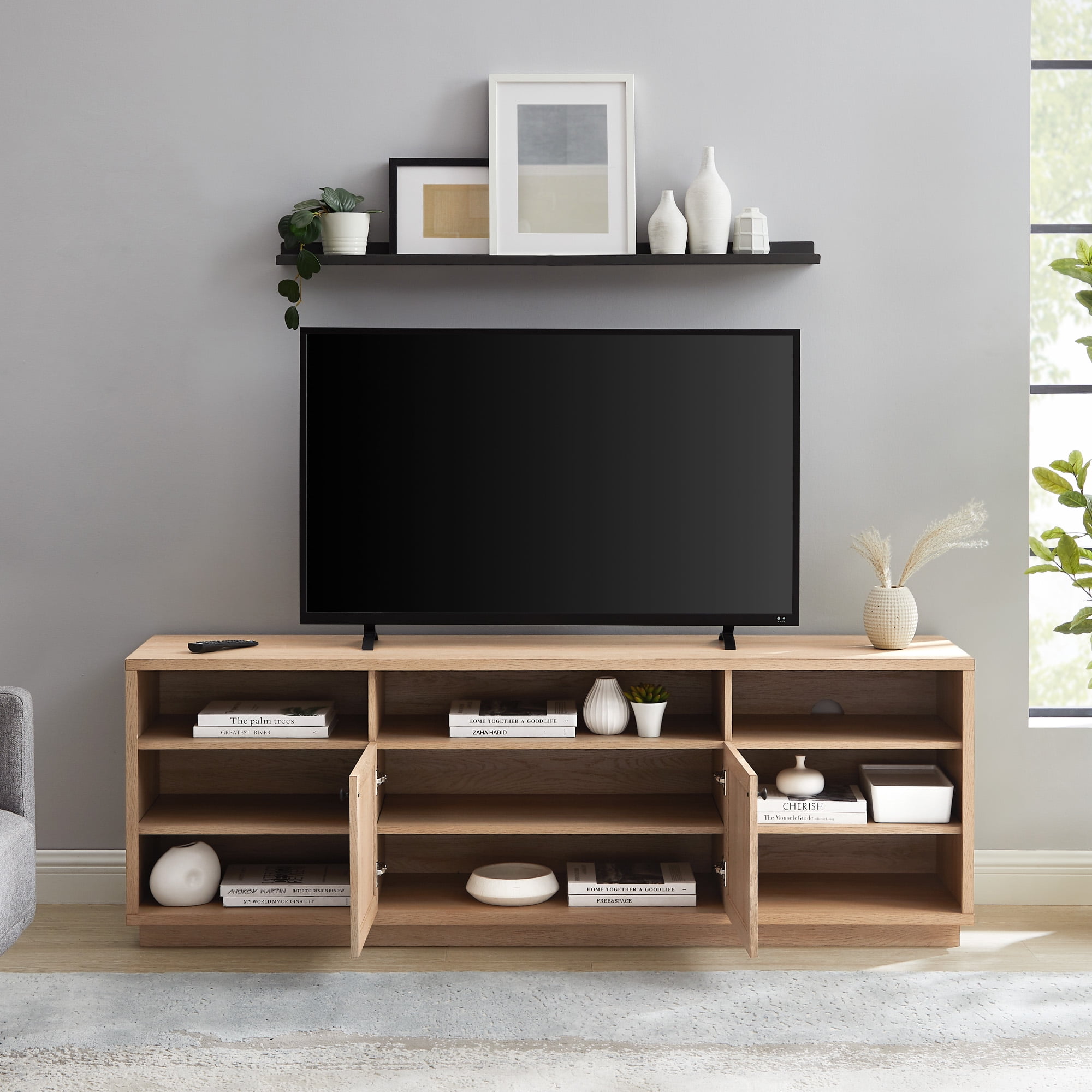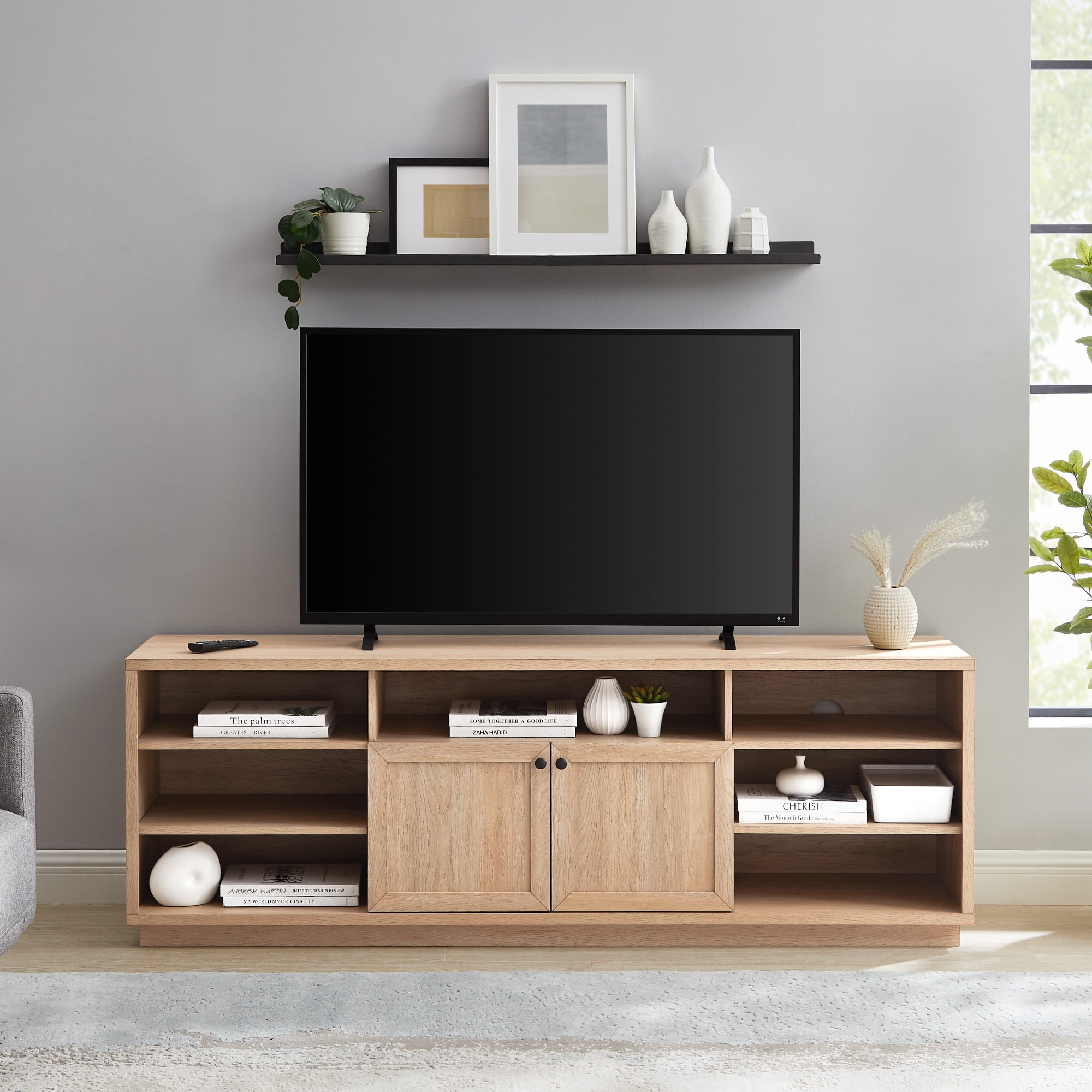 Walker Edison 70” Classic Modern TV Stand for TVs up 75”, Coastal Oak