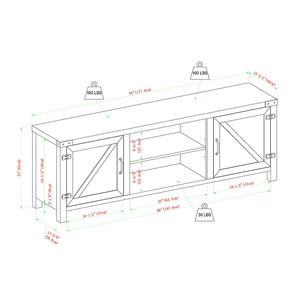 - Product Name: 70″ Modern Farmhouse Barn Door TV Stand for most TVs up to 80″