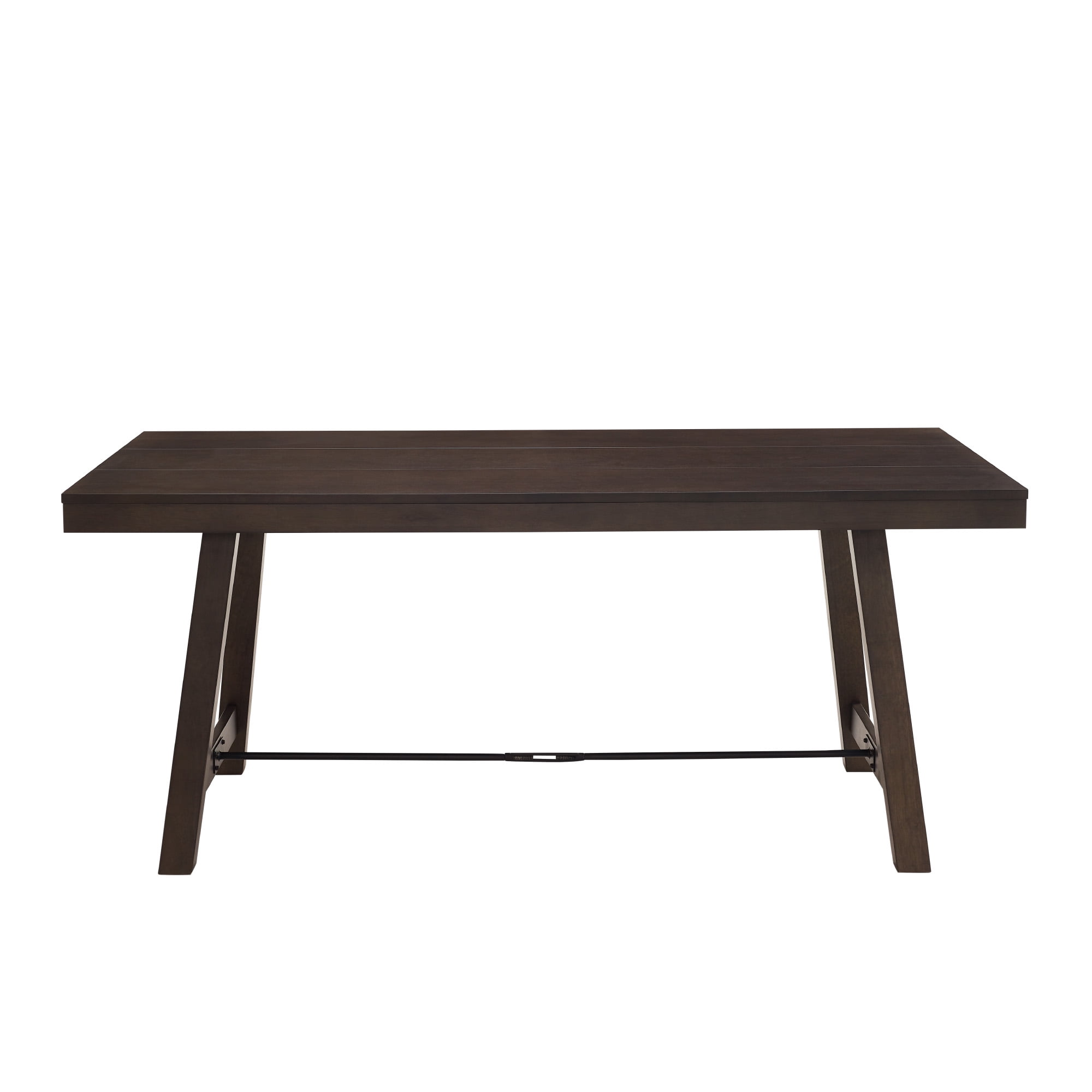 Gather family and friends around this modern farmhouse dining table during all holidays to create memories that will last a lifetime. The rustic frame complements your decor style no matter coastal, country, or modern. You can trust the sturdy frame because of the warp-resistant MDF wood construction and powder-coated steel stretcher. The gorgeous veneer finish adds a rich look to elevate your dining room or kitchen. Add your favorite dining chairs to create a cozy spot for game nights or big dinners. Features: Color: Dark Brown Oak Modern farmhouse dining table Powder-coated metal stretcher for extra stability Sleek veneer provides a rich look and protective layer Made from warp-resistant MDF wood Perfect for the kitchen or dining room Comfortably seats 6 Specifications: Dining Table Dimensions: 30″H x 71″L x 35.5″W Product Weight: 103 lbs