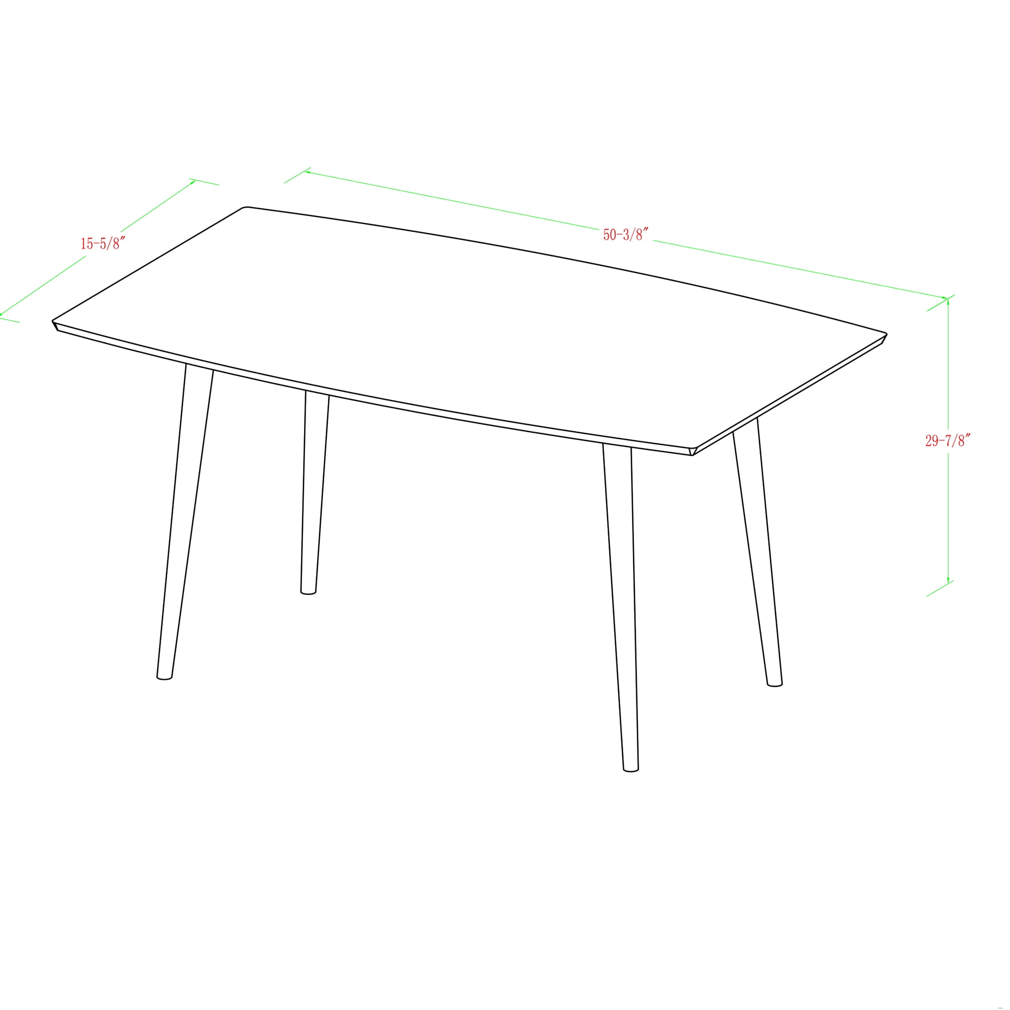 Mid-century modern design Features tapered legs and a sculpted tabletop Works with a variety of decor styles and color palettes Seats four people Made with high-grade MDF and solid wood veneer Assembled dimensions: 30″ H x 60″ L x 35″ W Pair with other items from the Desert Fields collection