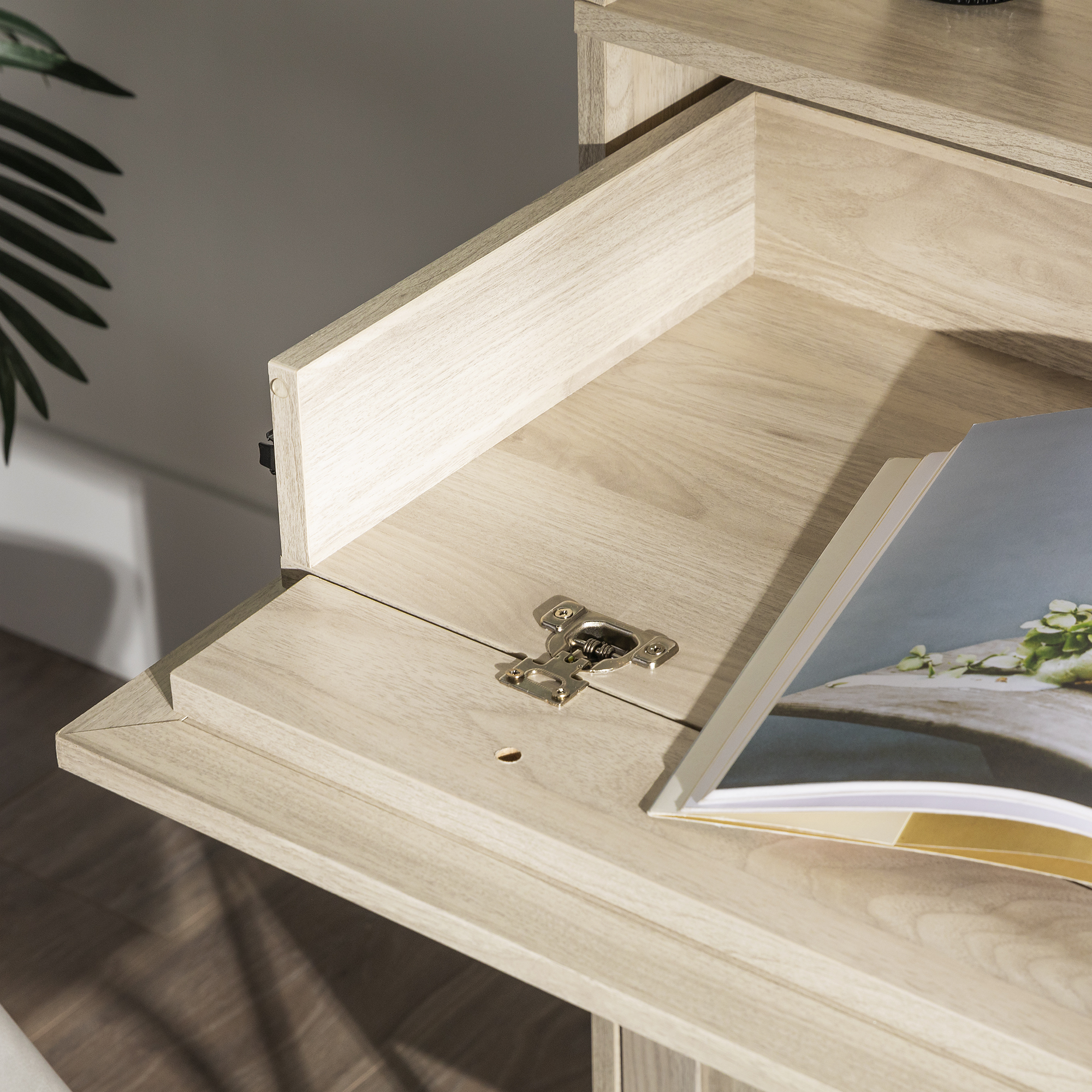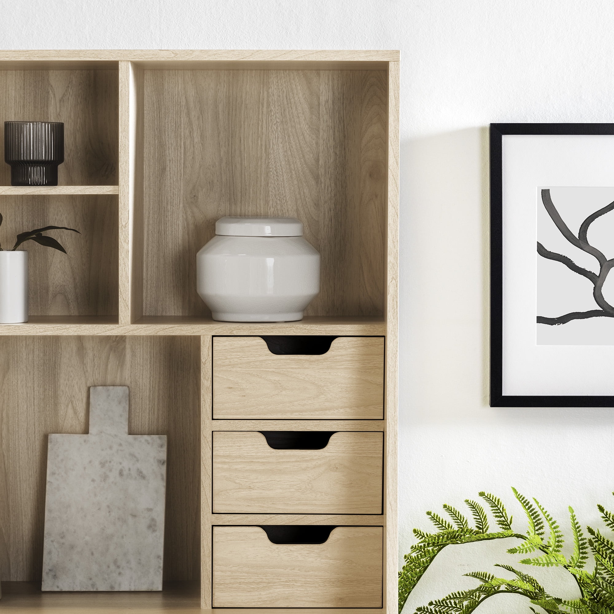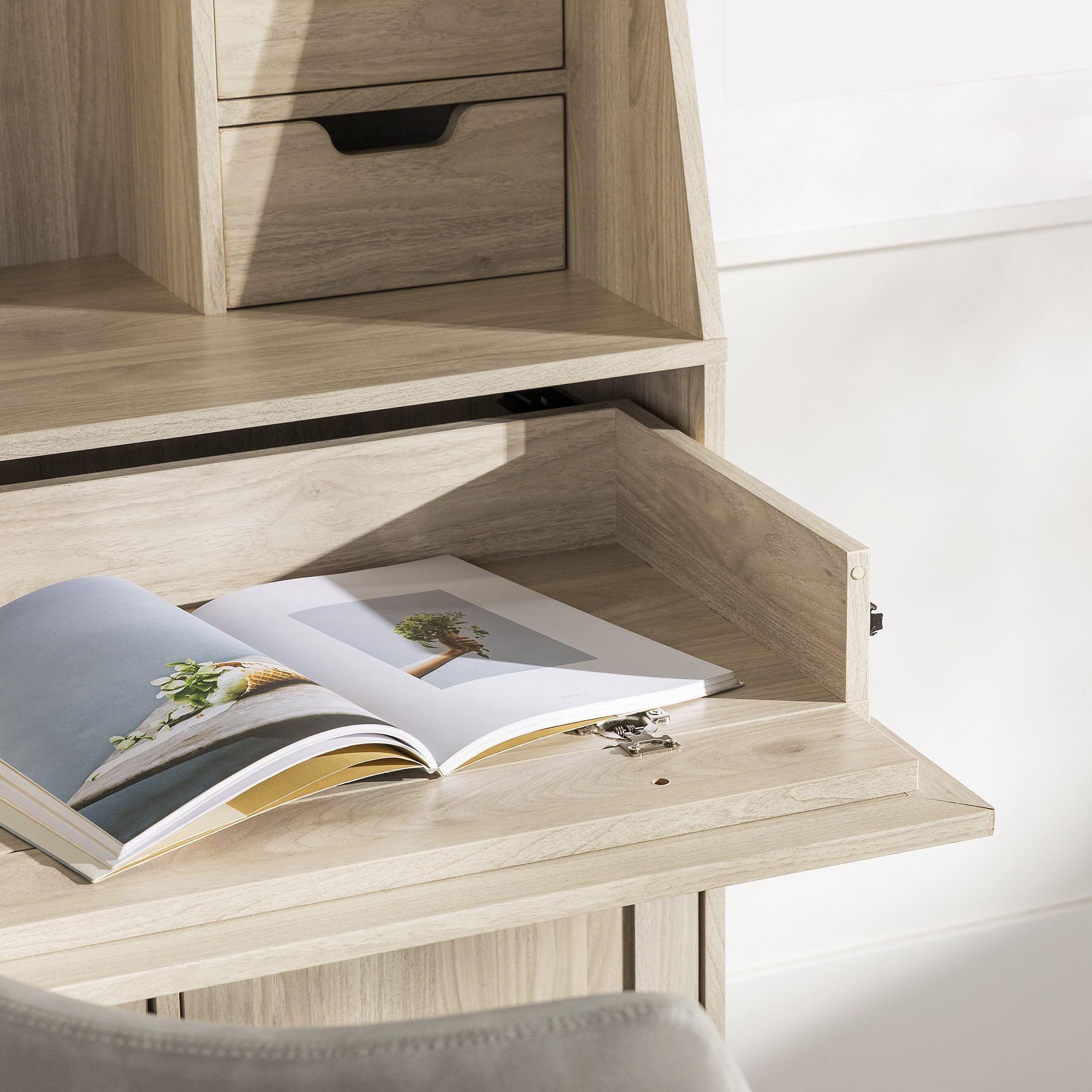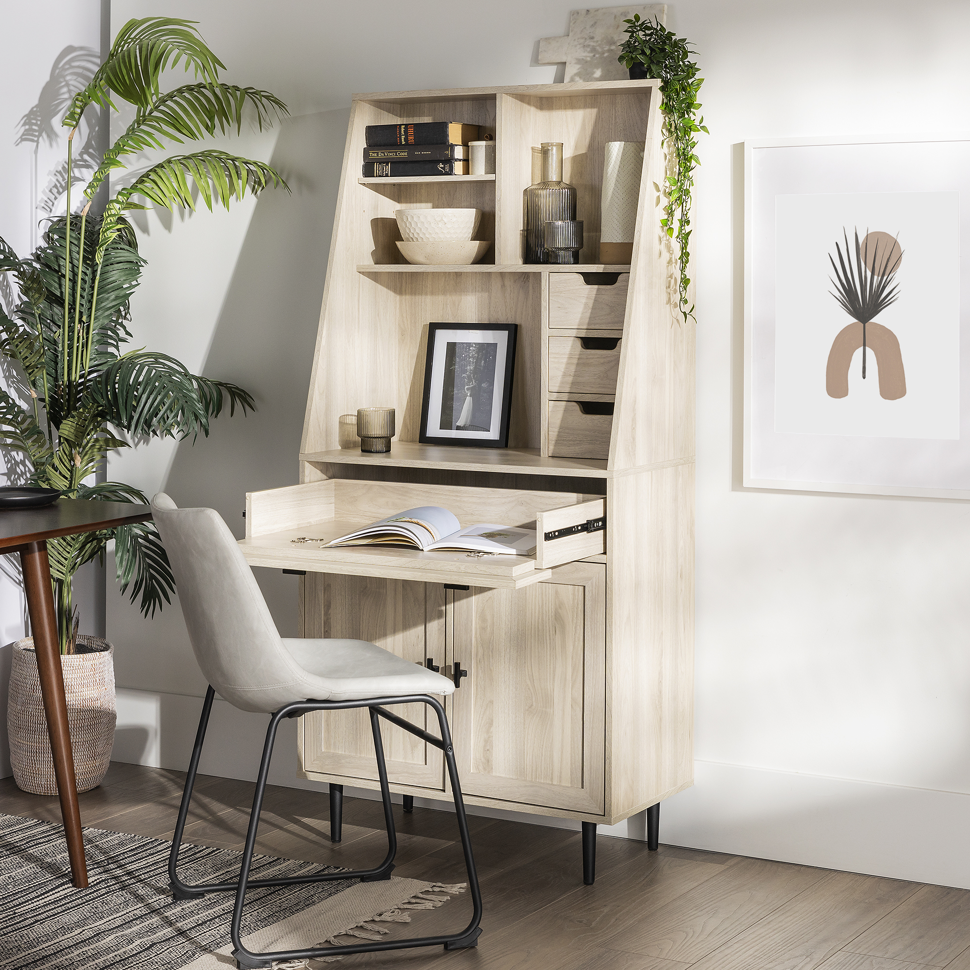 If you are looking for the perfect desk space with many organization options for optimal workflow, try out the Bromberg Birch Storage Desk with Hutch by Walker Edison. This secretary desk has many nooks to store your favorite pens, pencils, and notebooks along with a drop-down front drawer to hold your keyboard while keeping mid-century flair in your office decor. Open and closed storage options give you plenty of space to showcase scholarly books or favorite quotes while hiding important documents or your messiest sketches.