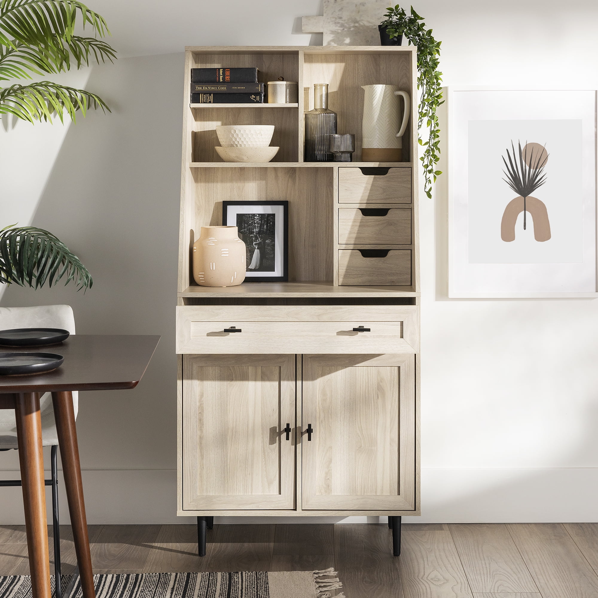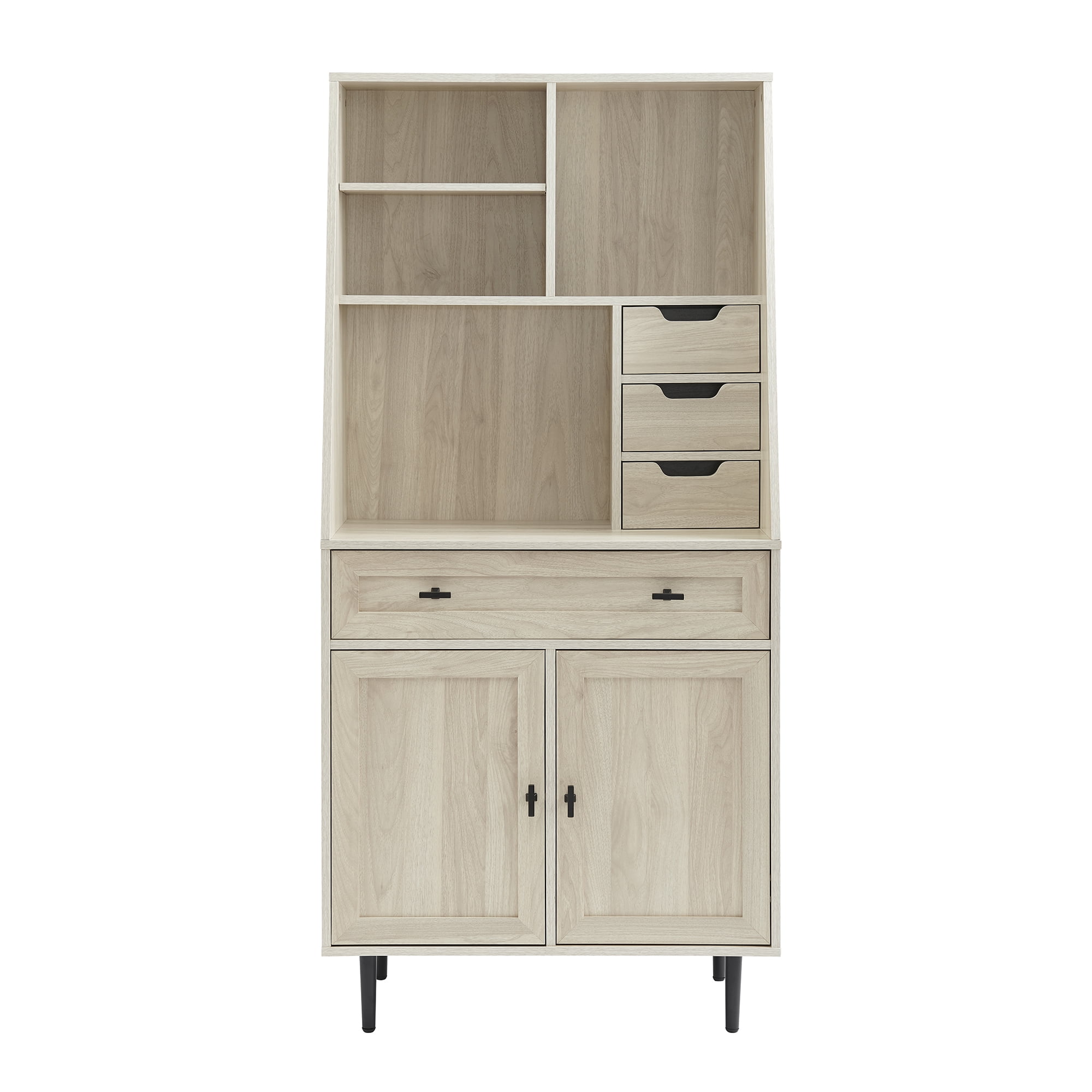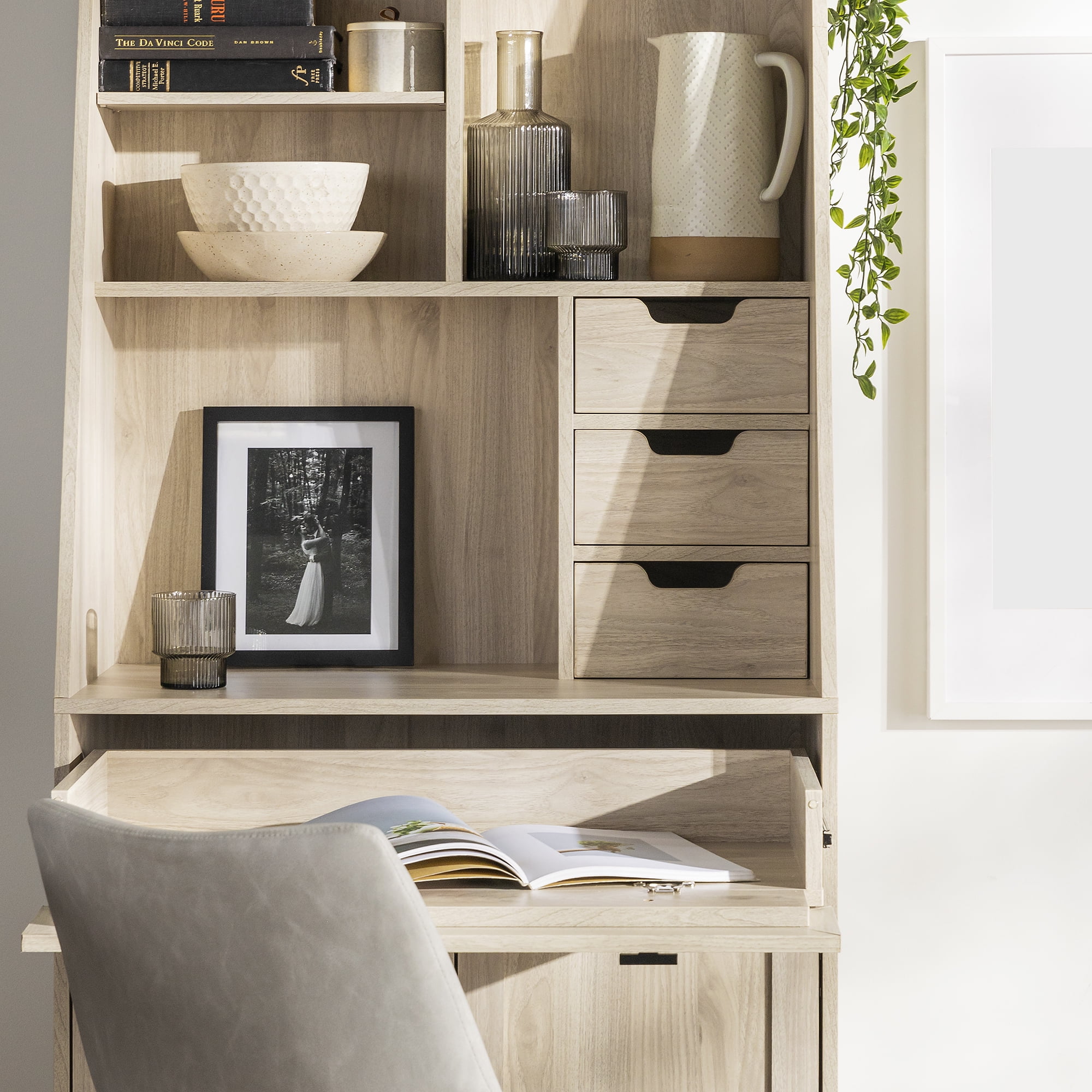 Walker Edison Bromberg Storage Desk with Hutch, Birch