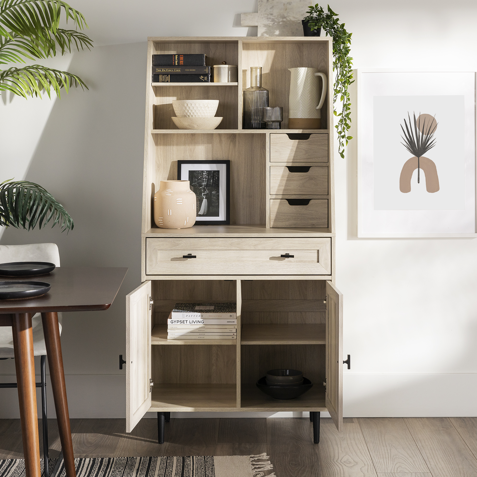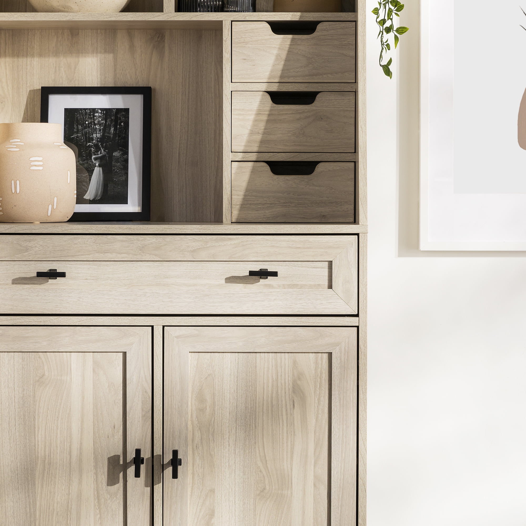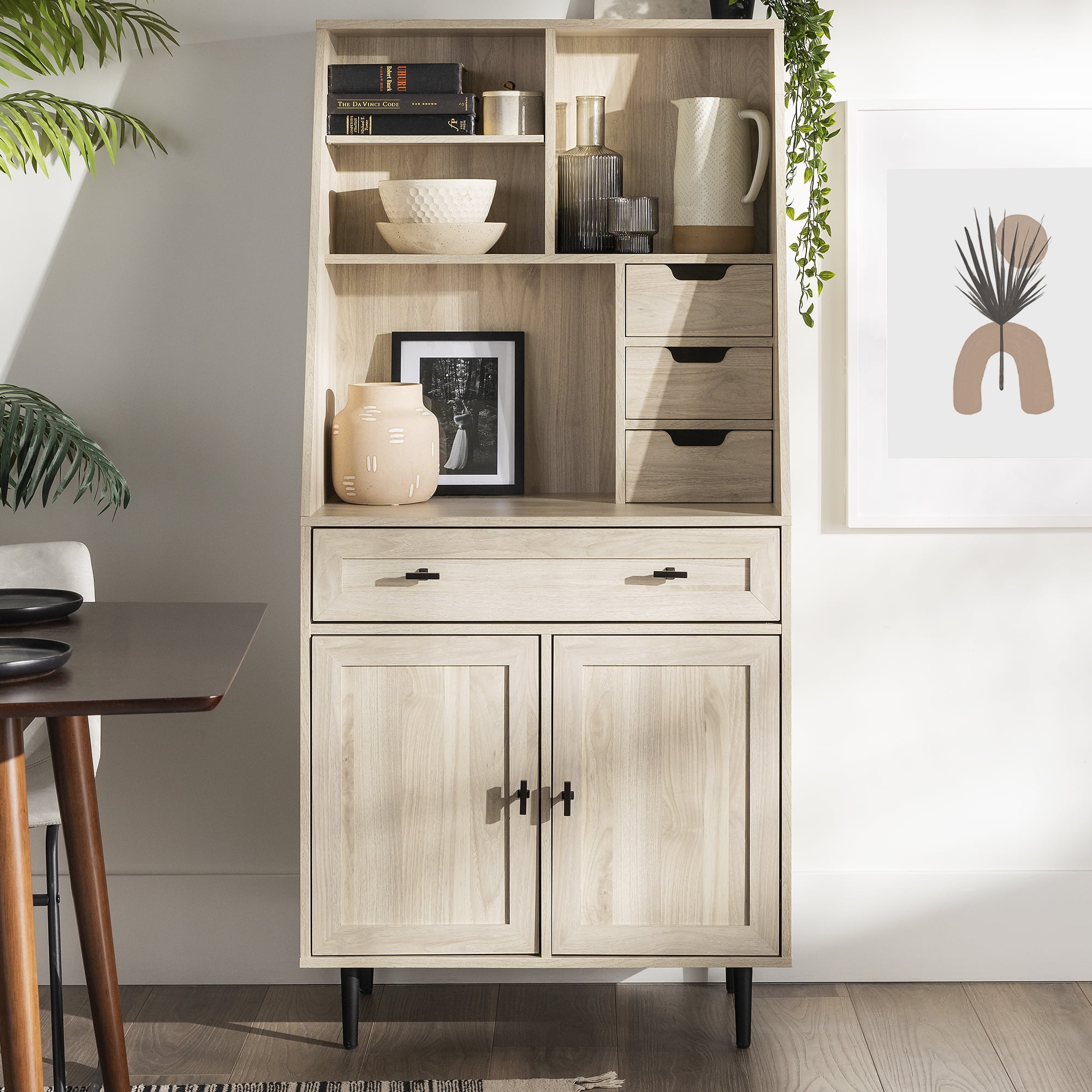 Walker Edison Bromberg Storage Desk with Hutch, Birch