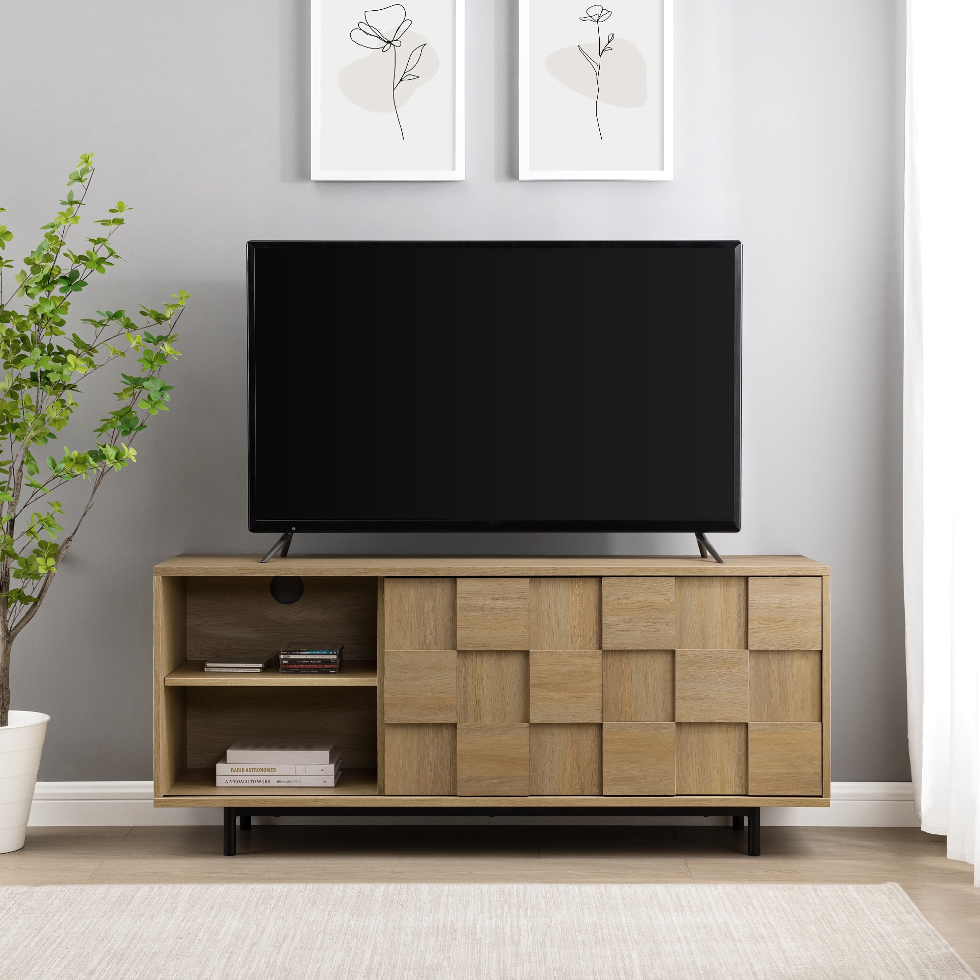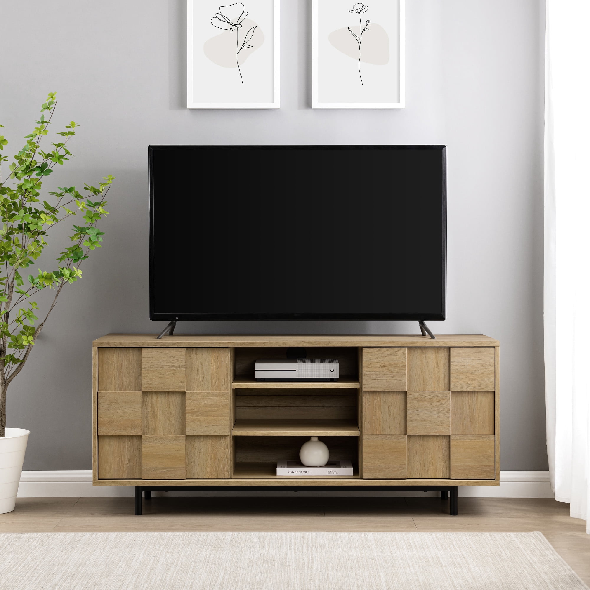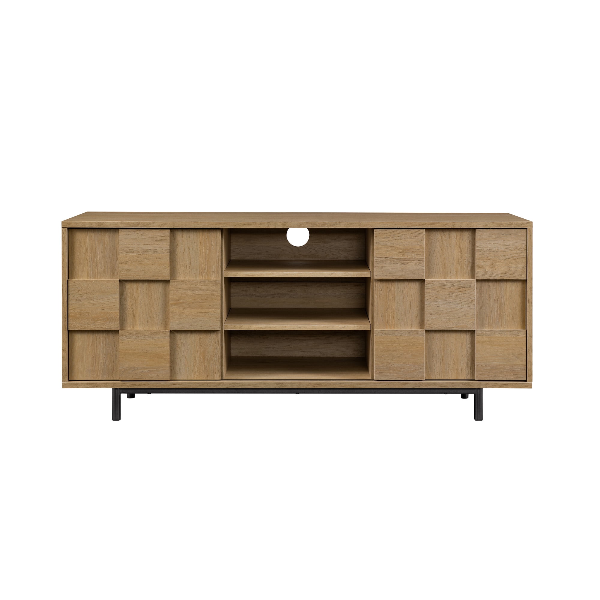 Walker Edison Contemporary Checkerboard TV Stand for TVs up to 60”, Coastal Oak