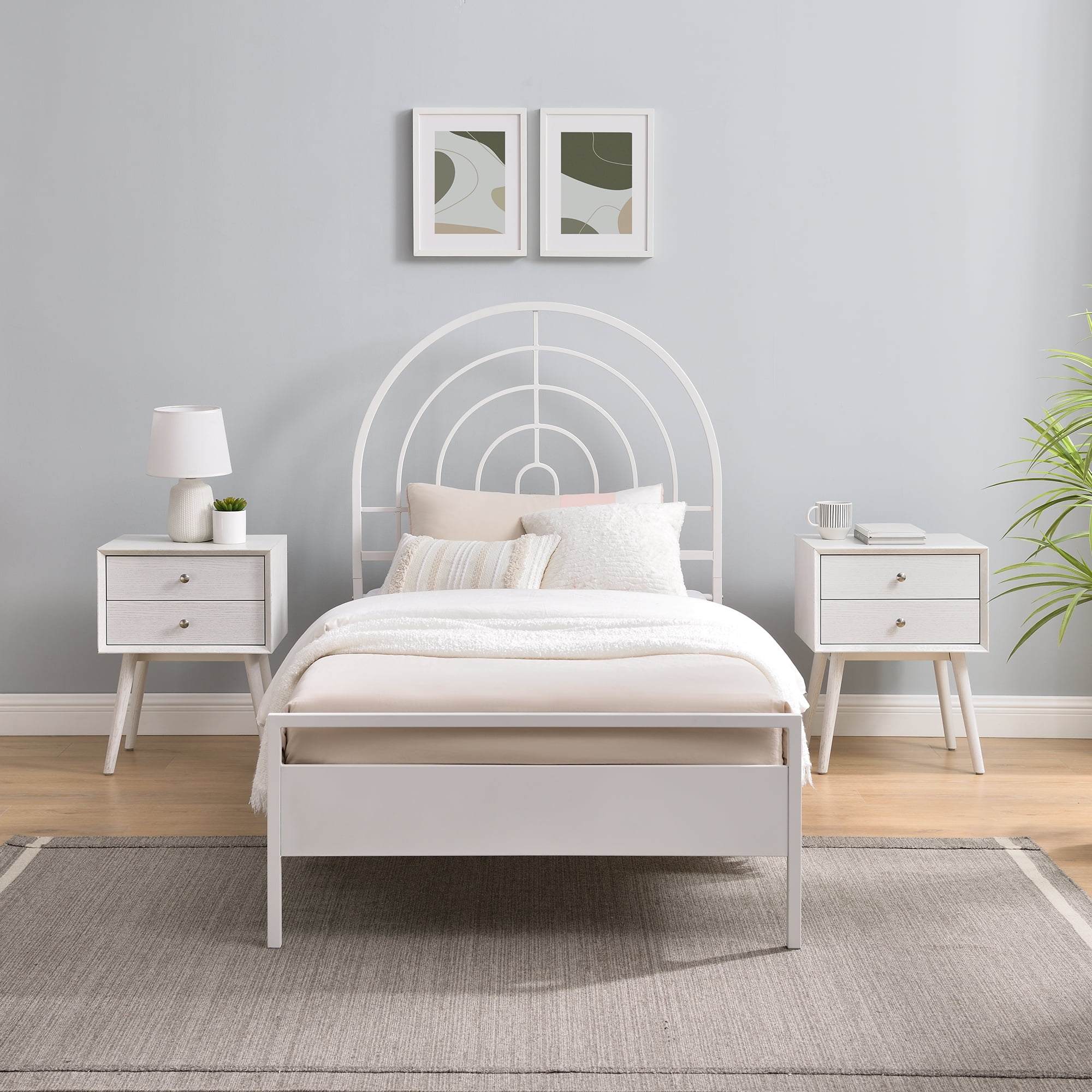 Walker Edison Contemporary Metal Arch Twin Bed, White