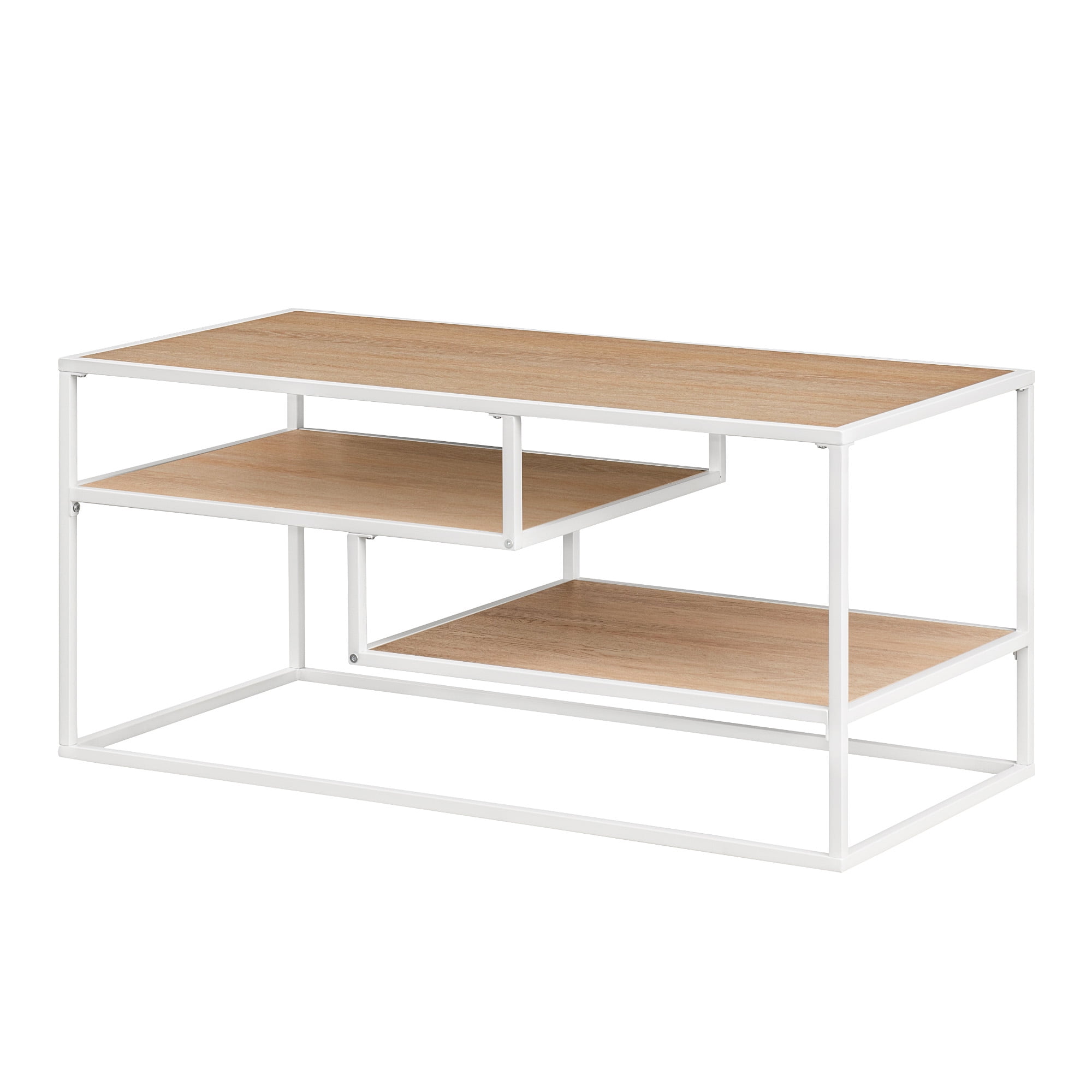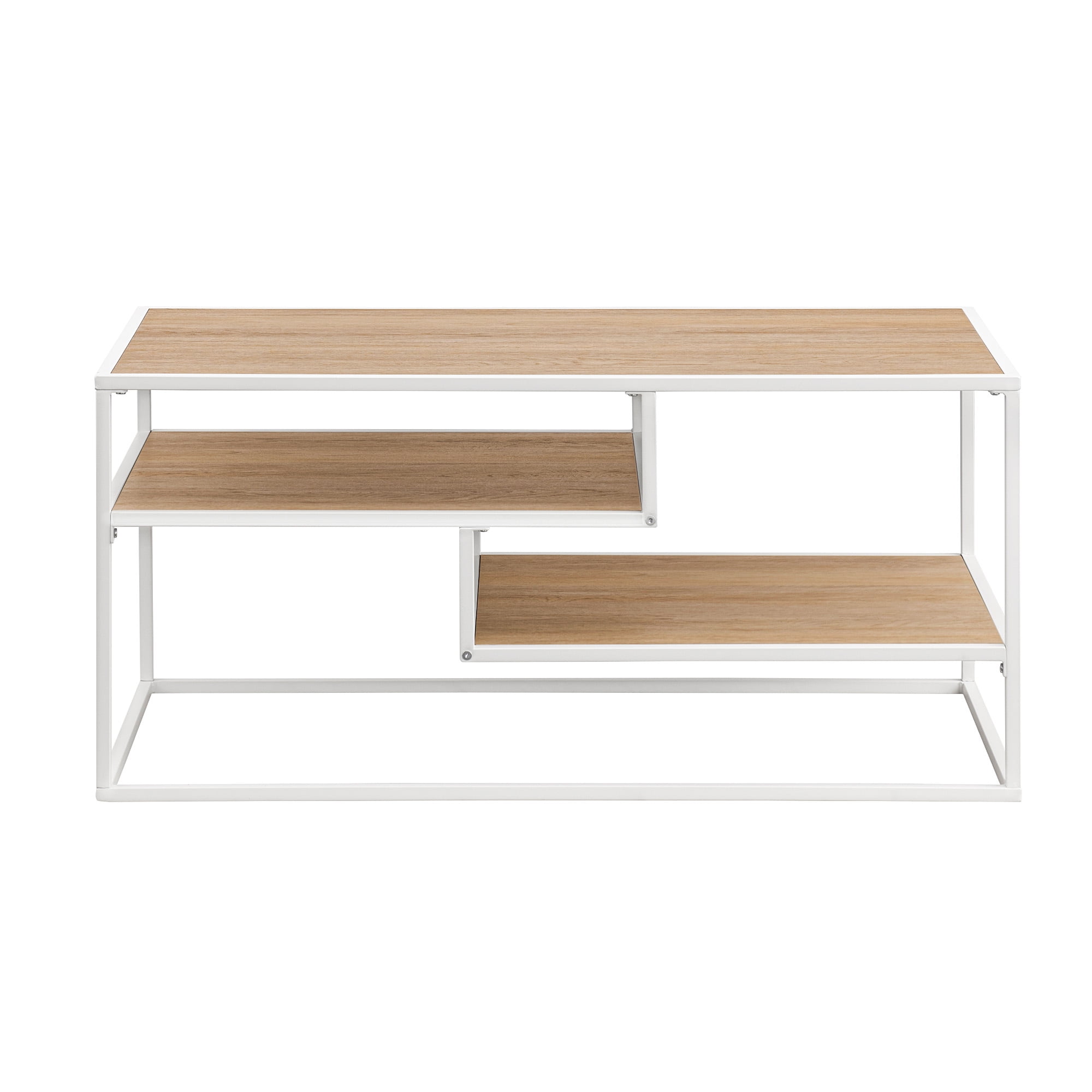 Walker Edison Contemporary Wood and Metal Tiered Coffee Table, Coastal Oak/White