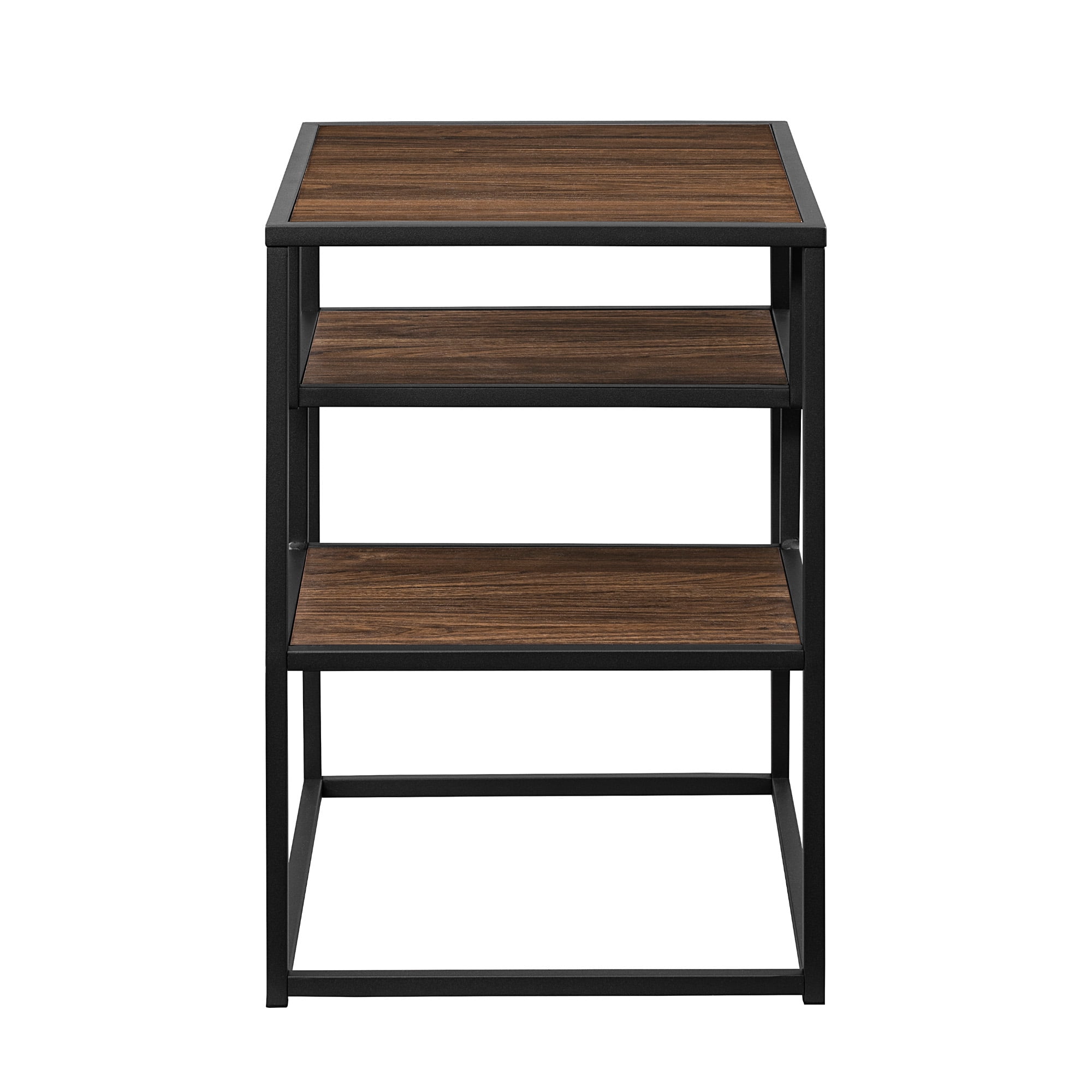 Walker Edison Contemporary Wood and Metal Tiered Side Table, Dark Walnut