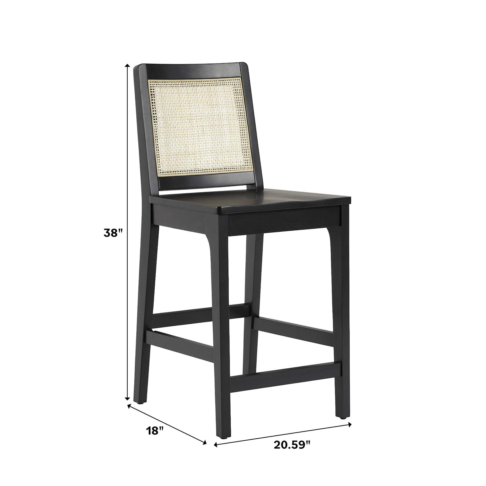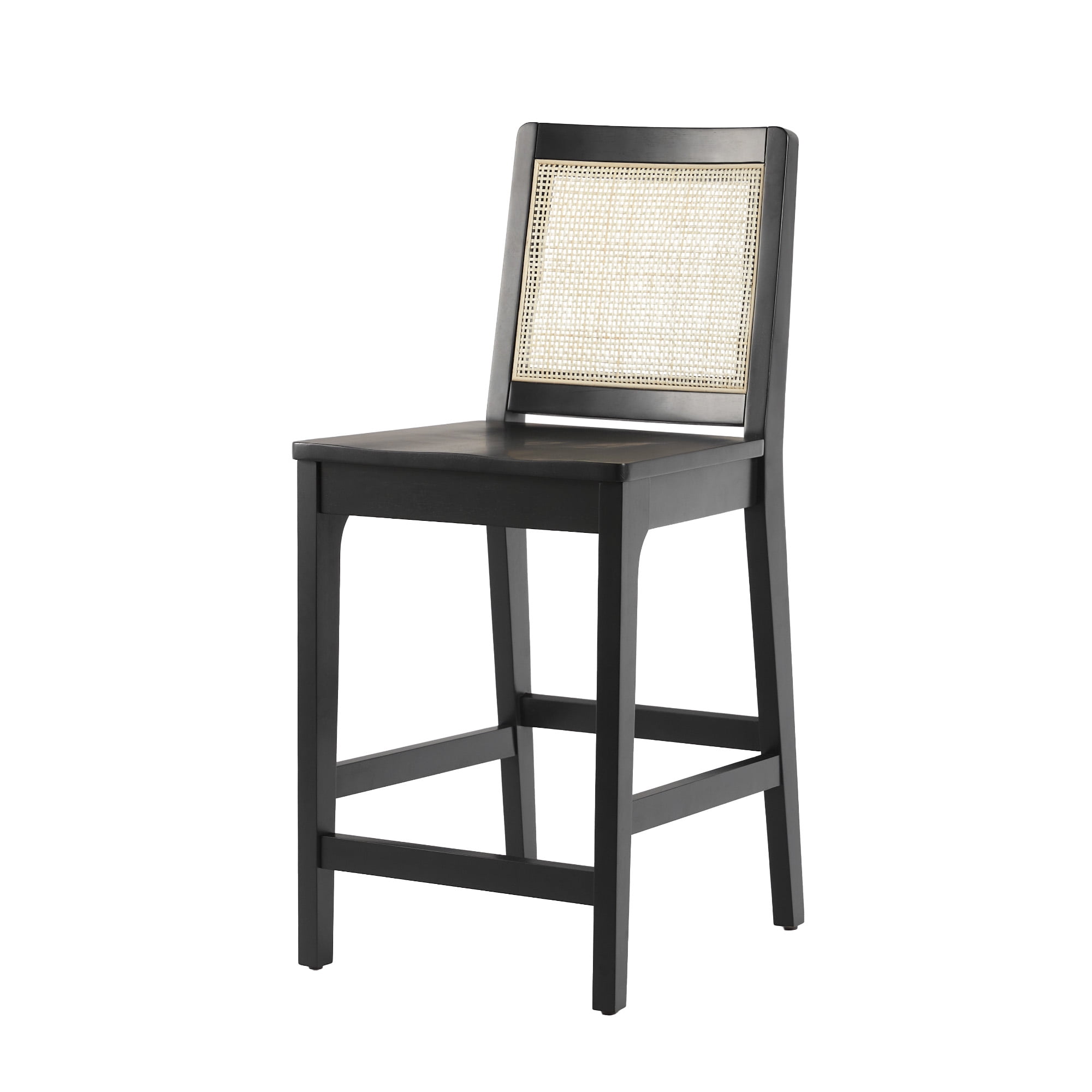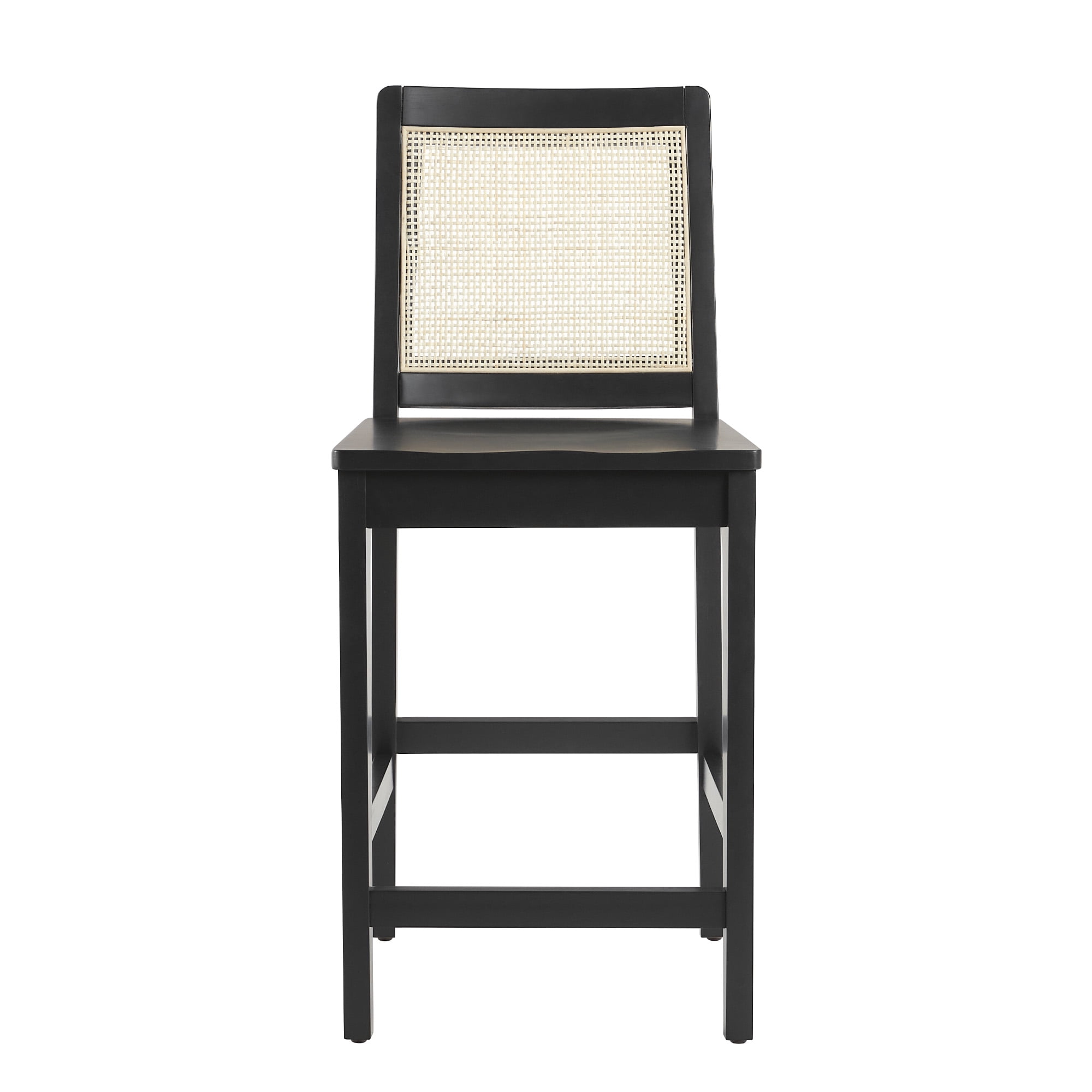 Walker Edison Counter Height Rattan Back Bar Stools, Black (Set of 2) Transitional style that complements various decor themes Elegant painted black finish for a modern touch Convenient set of 2 stools for versatile seating options Easy to assemble with included step-by-step instructions Easy-to-clean woven upholstery for hassle-free maintenance Constructed from durable solid rubberwood for long-lasting use Assembled dimensions: 38” H x 14 ½” L x 15 ½” W Packaged dimensions: 11.25″ H x 41.38″ L x 21″ W