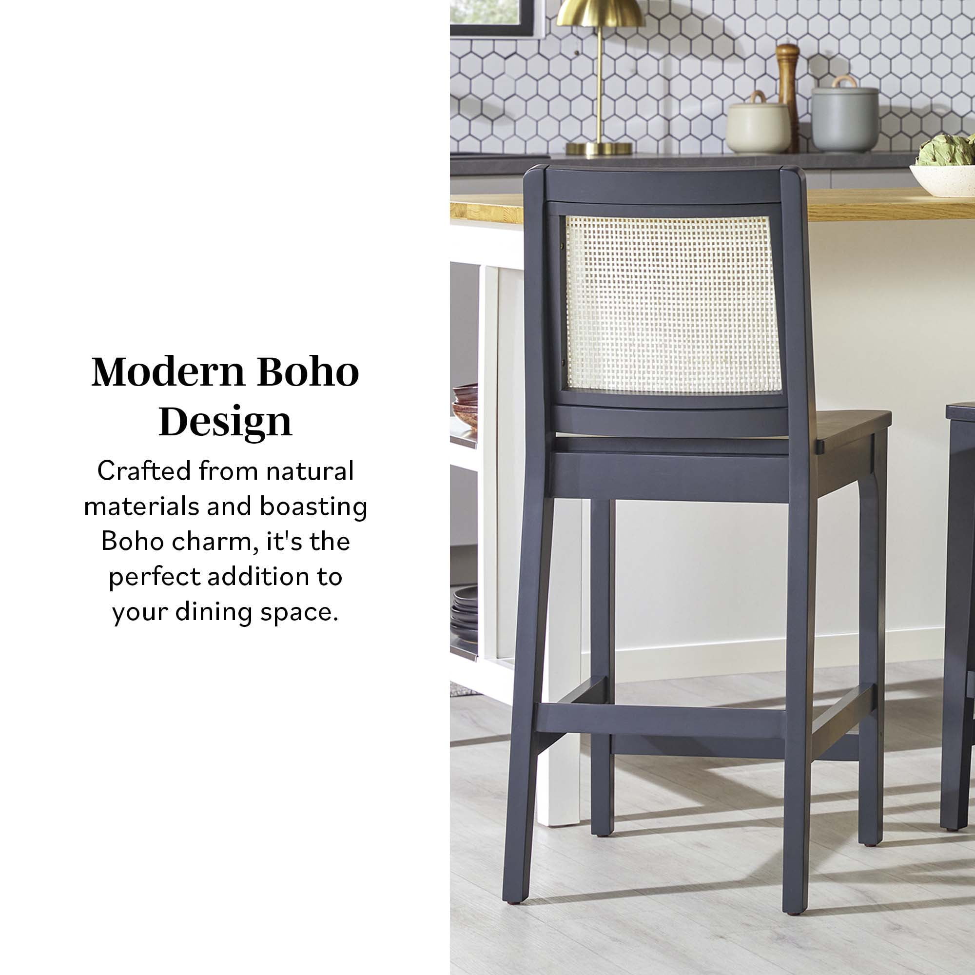 Add a conversation starter to your home with this Set of 2 Boho Rattan Back Counter Stools from Saracina Home. Whether you’ve been looking for some chic stools for your indoor bar, or need a place to relax in the morning with breakfast, you’ll love these durable, solid wood pieces. Wide 17” seats ensure you’ll be comfortable, and the rattan detailing makes for a standout decor statement.