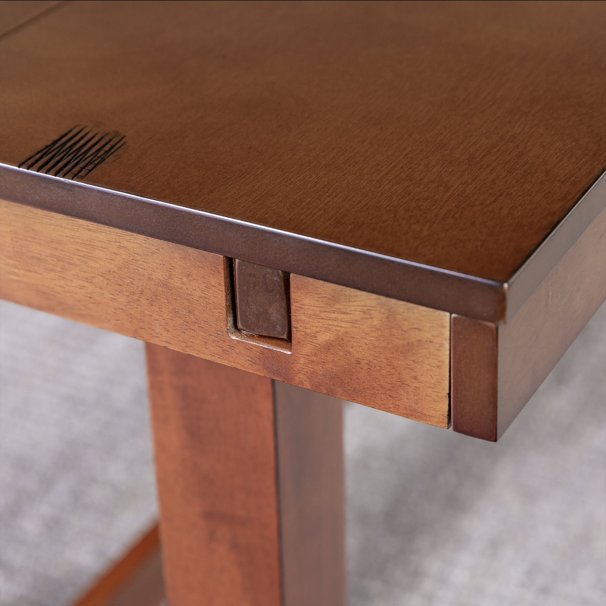 Traditional dining table Ideal for your kitchen or dining room Made of warp-resistant MDF and wood veneer Rich, dark oak finish Includes two removable end leaves to save space when needed Distressed details provide a rustic feel Ships in 1 box Assembly is required