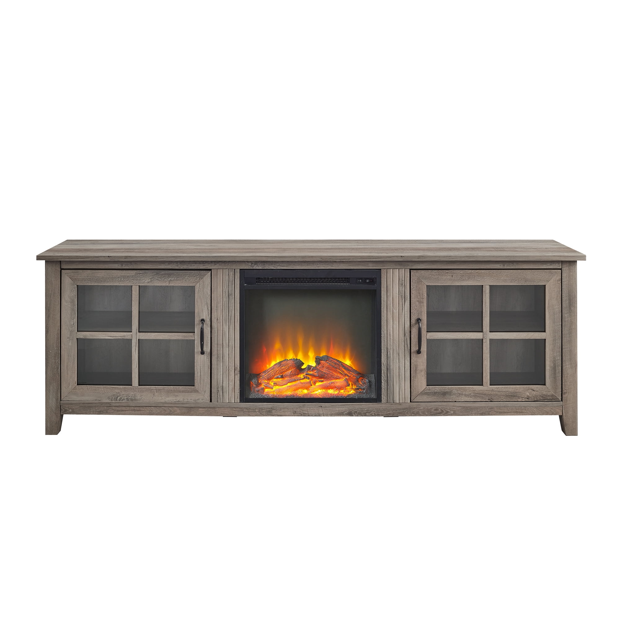 Walker Edison Farmhouse Fireplace TV Stand for TVs up to 80″, Grey Wash