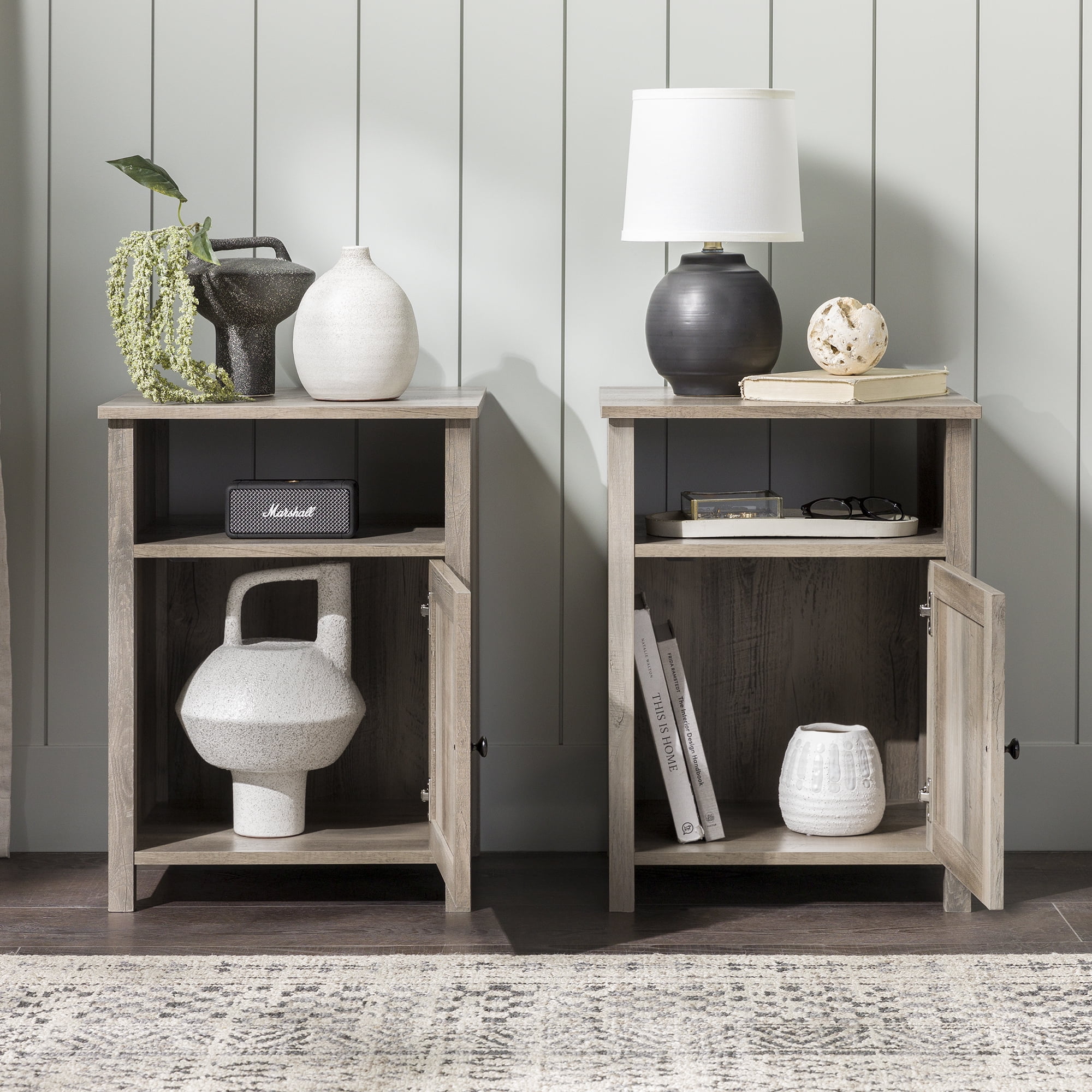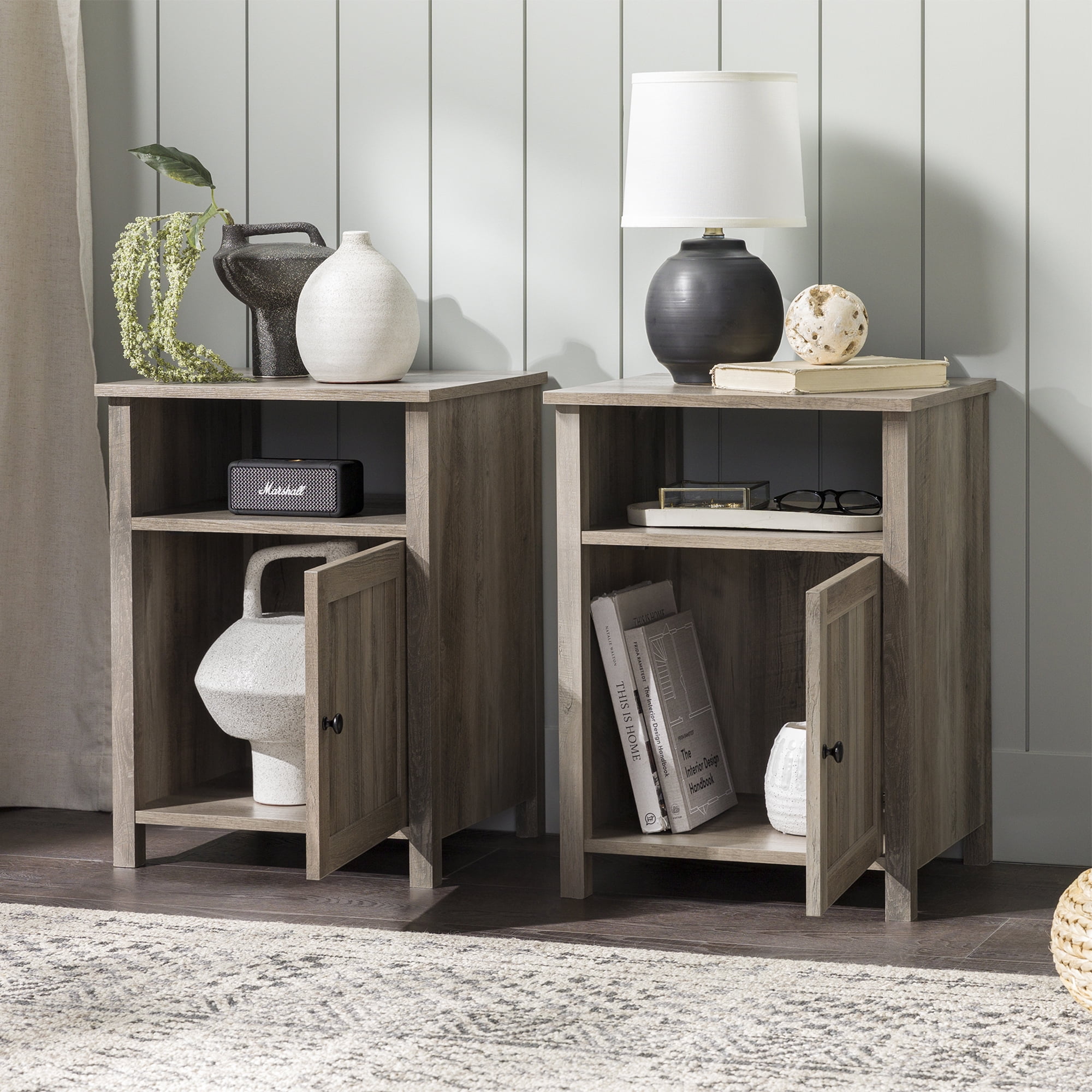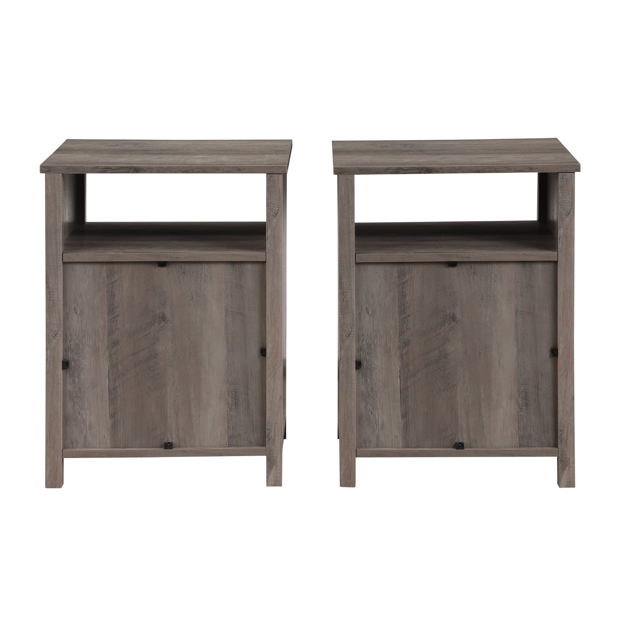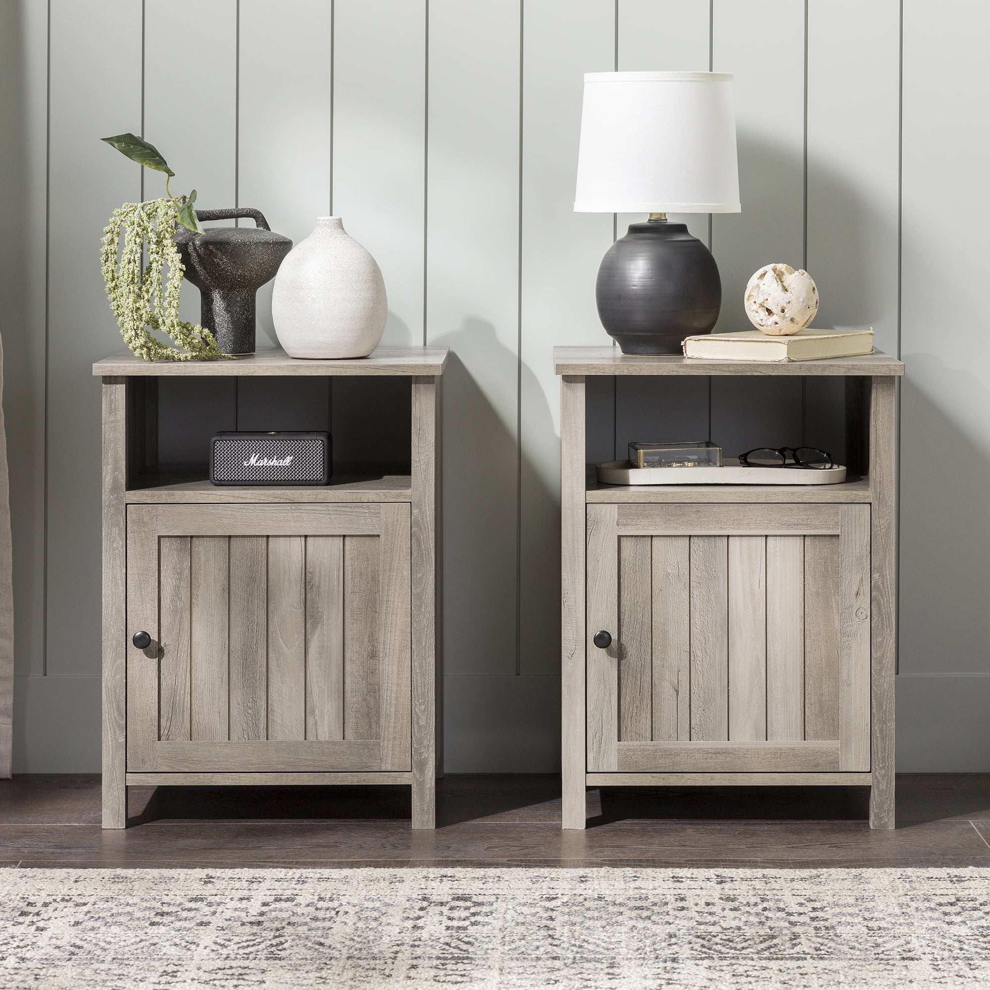 Walker Edison Farmhouse Groove Door End Table, Set of 2, Grey Wash
