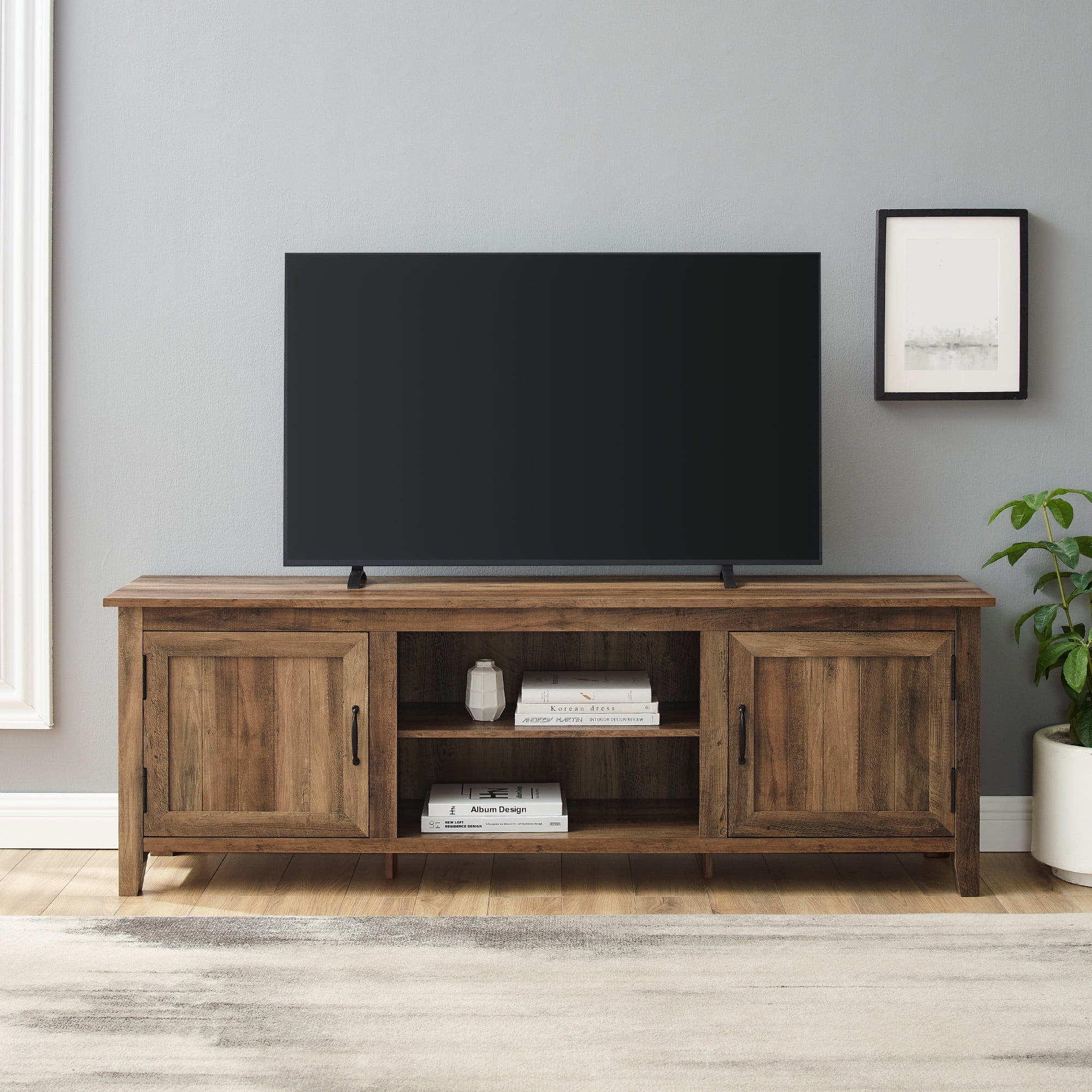 Walker Edison Farmhouse Grooved Door TV Stand for TVs up to 80″, Rustic Oak