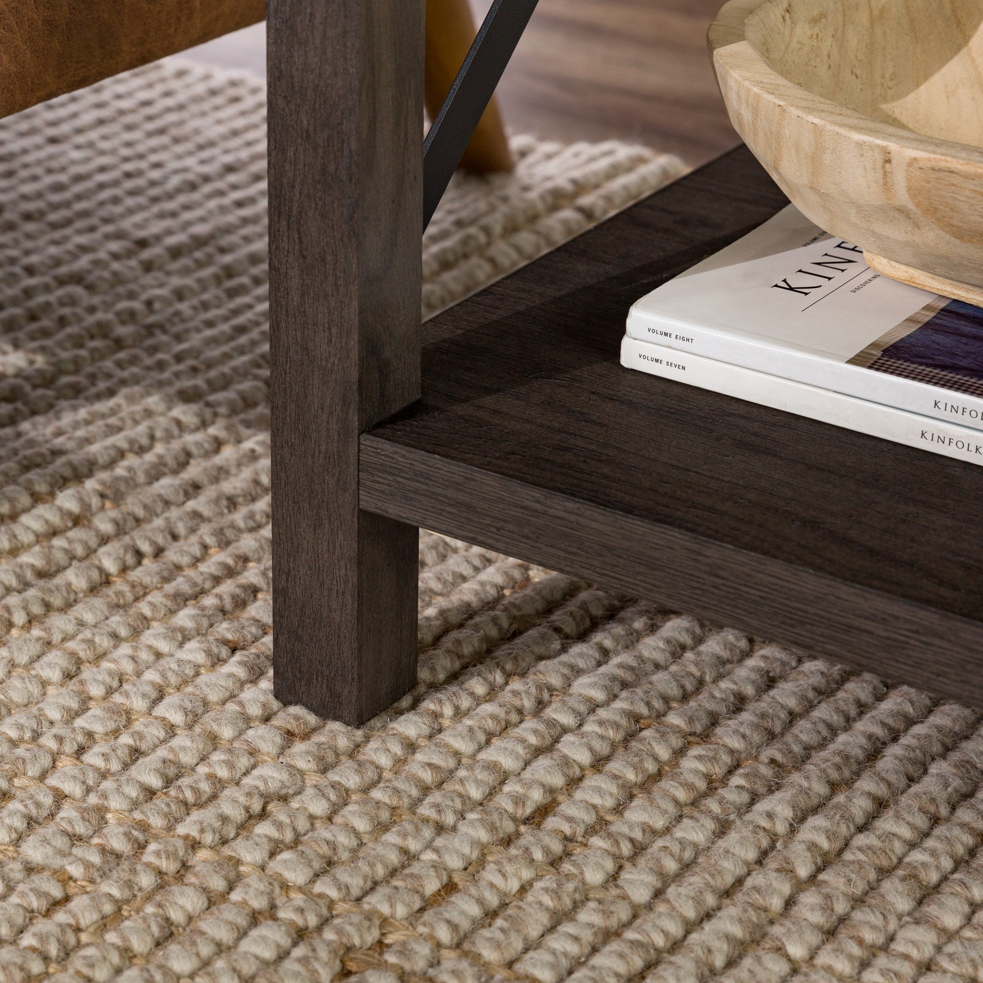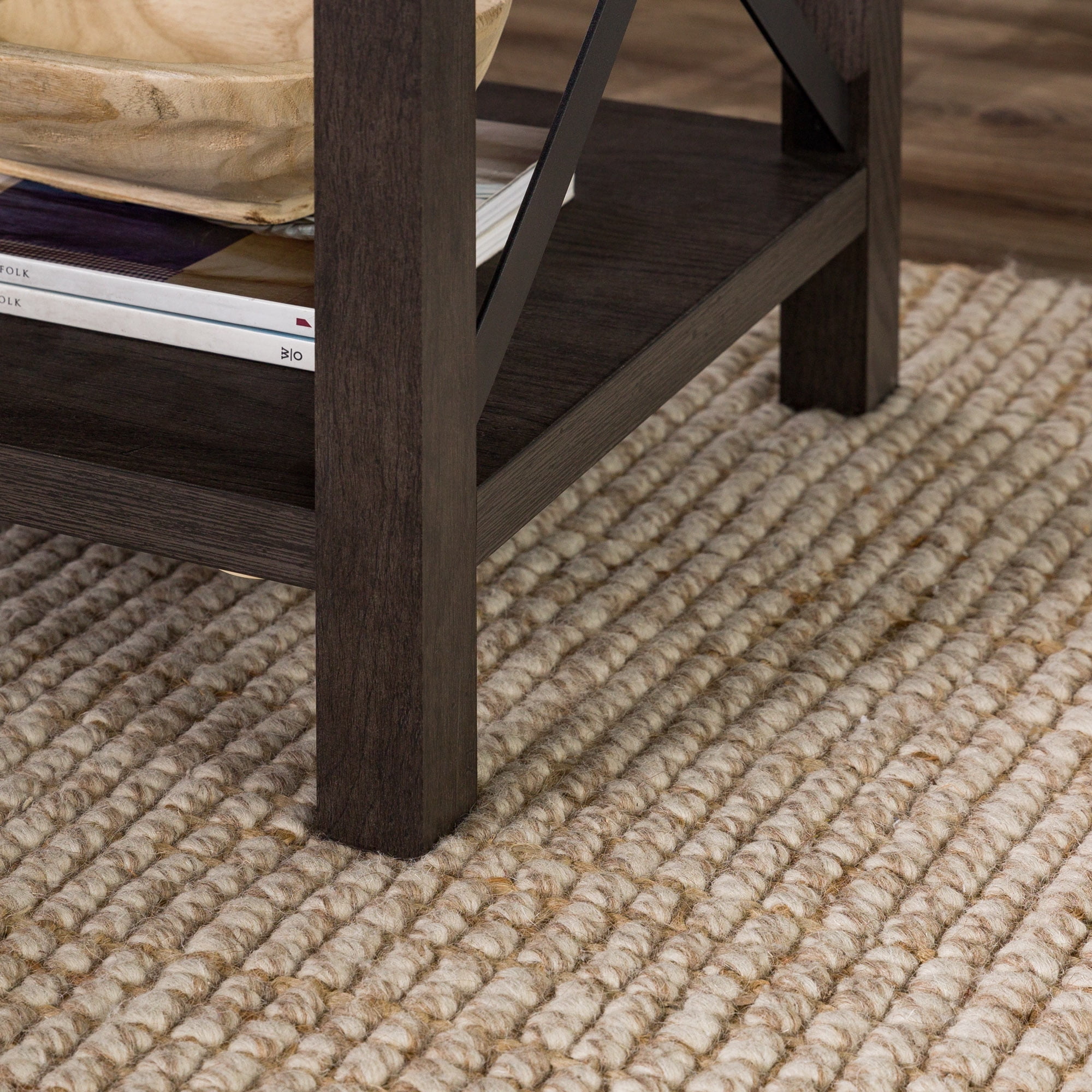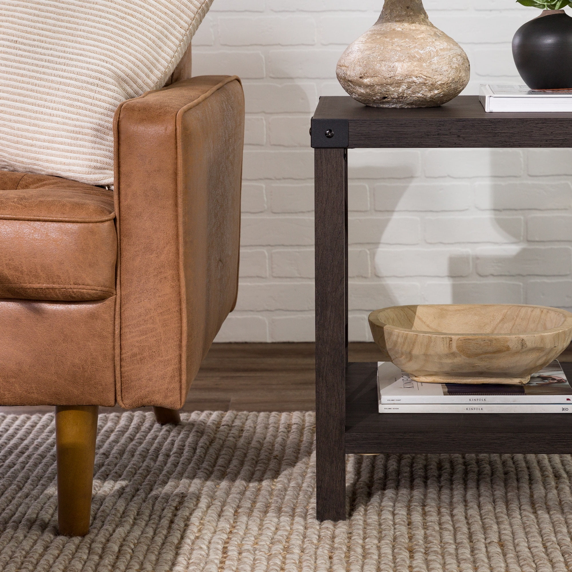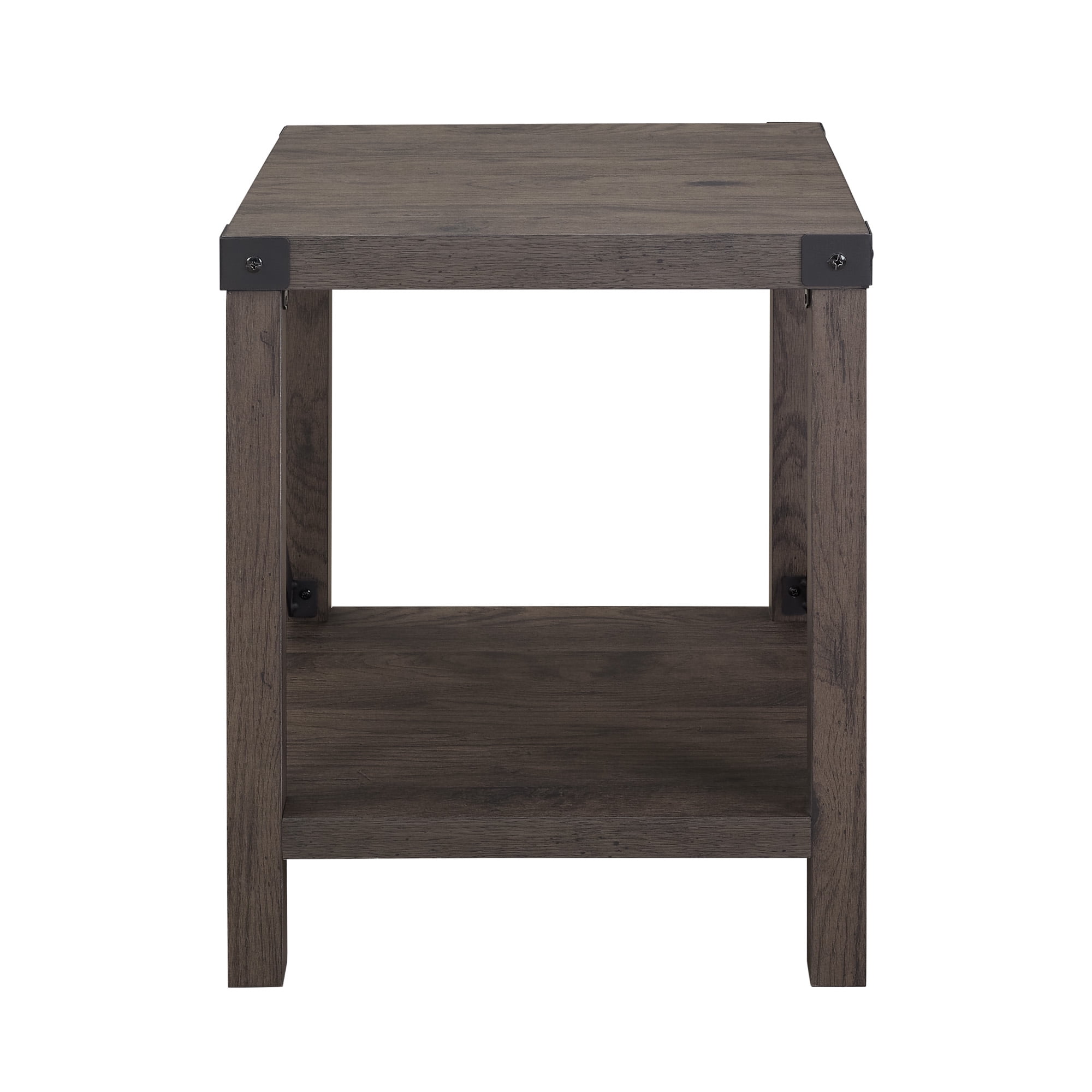 X-shaped metal accents are what make the Walker Edison Farmhouse Open Storage Side Table stand out among the rest. The black painted metal brackets on each top corner brings a sophisticated feel to the durable laminate finish. An additional shelf below the tabletop creates space for your most precious souvenirs from your many travels or easy access to frequently used items. This side table makes a great addition to living room space as an end table, bedrooms as a nightstand, or any other area where you need more table space. The rustic quality will bring character to your home and make you feel like an interior decorating pro.