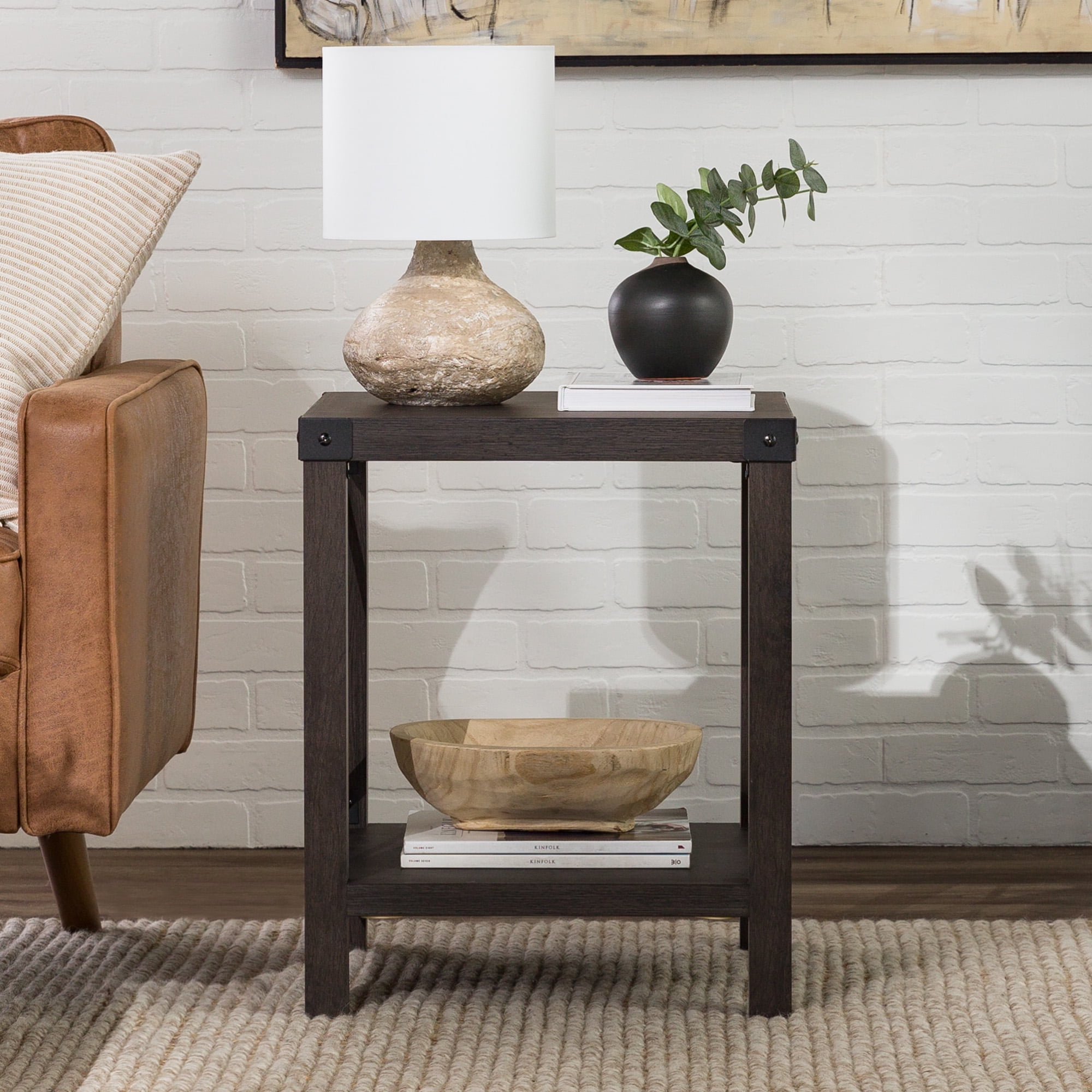 Walker Edison Farmhouse Open Storage Side Table, Sable