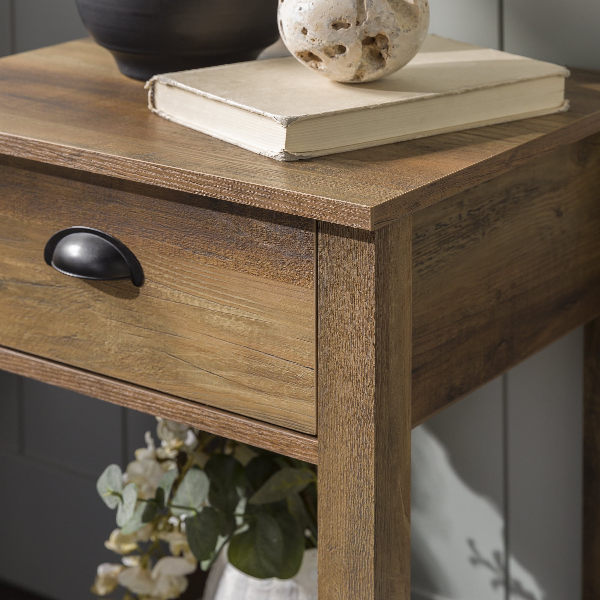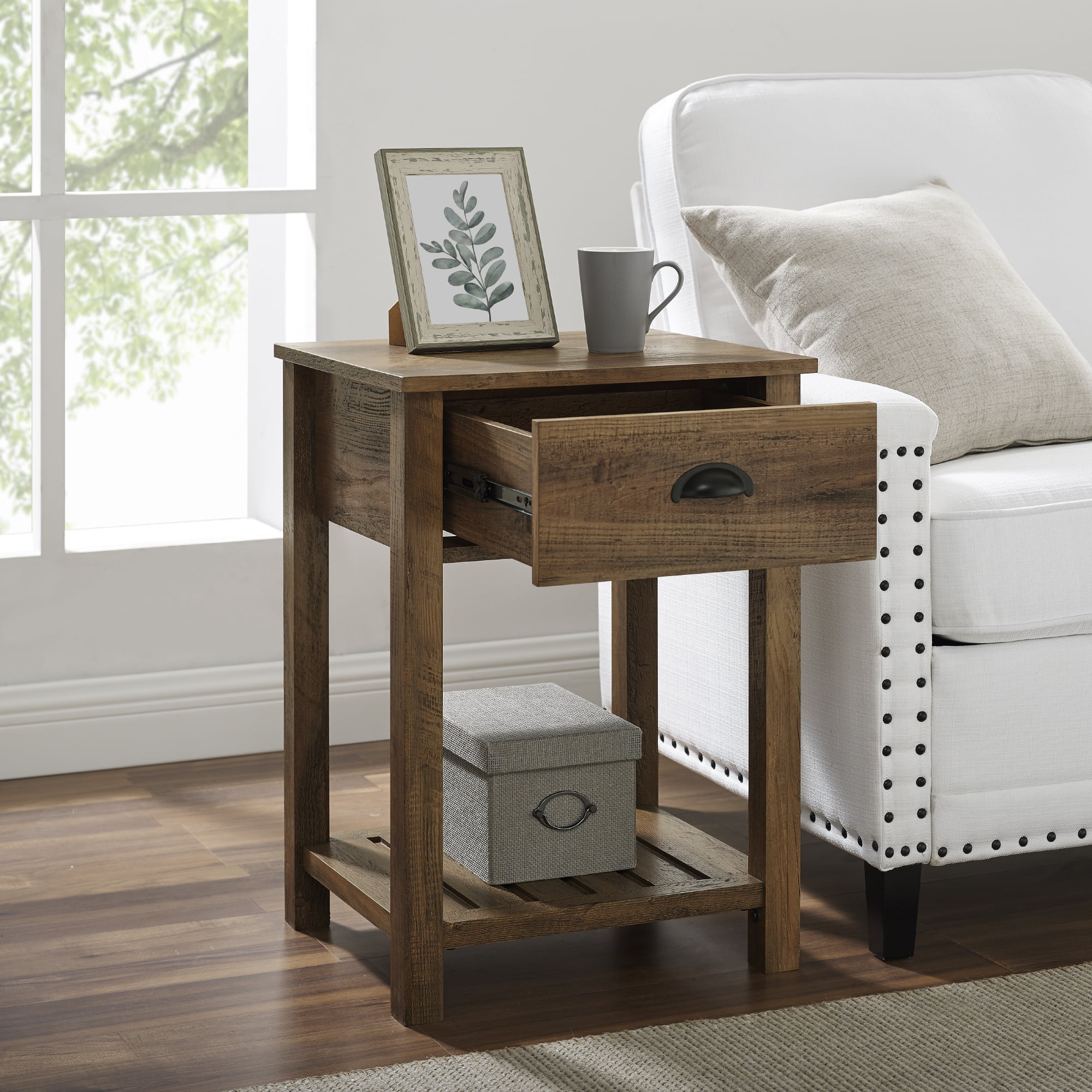 Walker Edison Farmhouse Single Drawer Open Shelf End Table, Reclaimed Barnwood