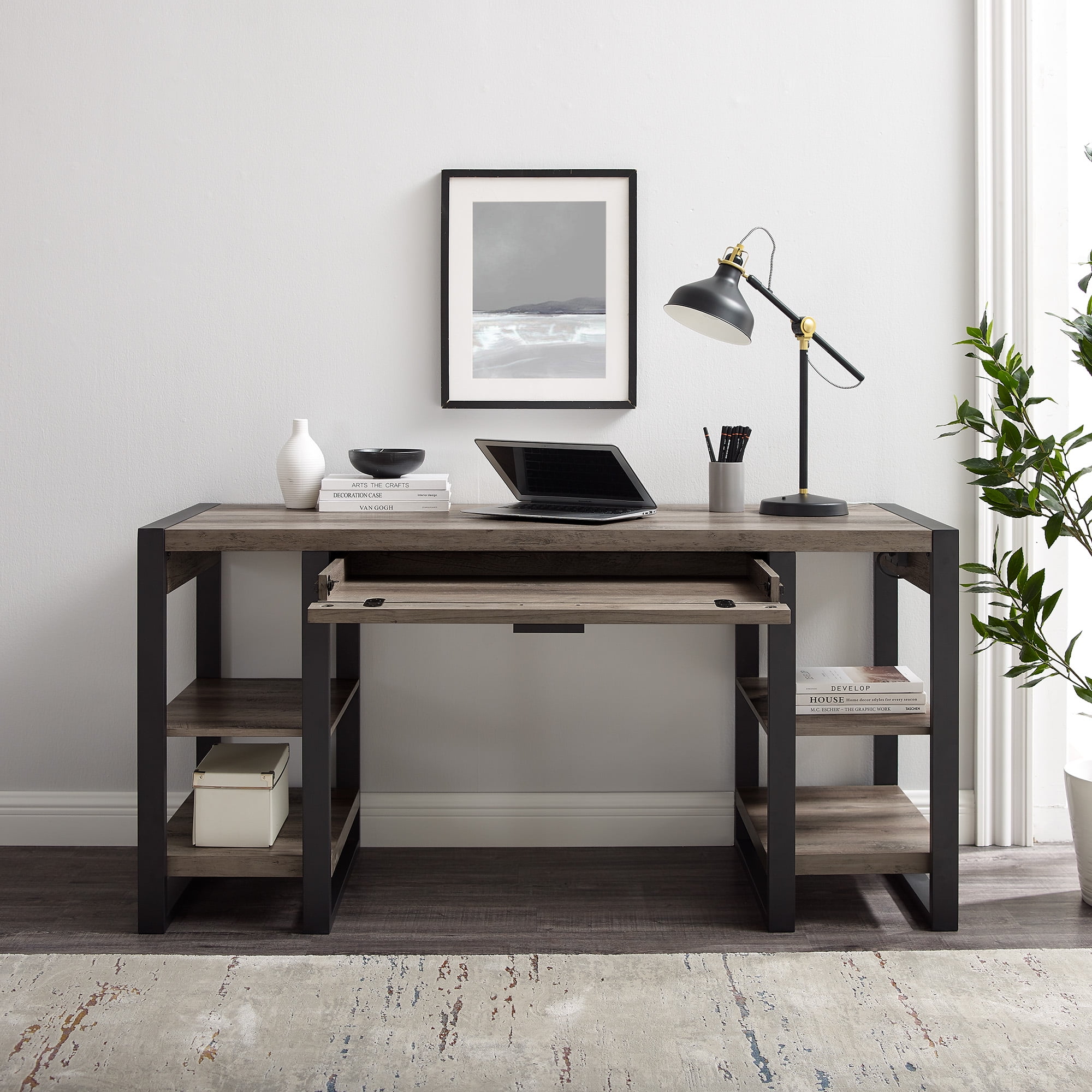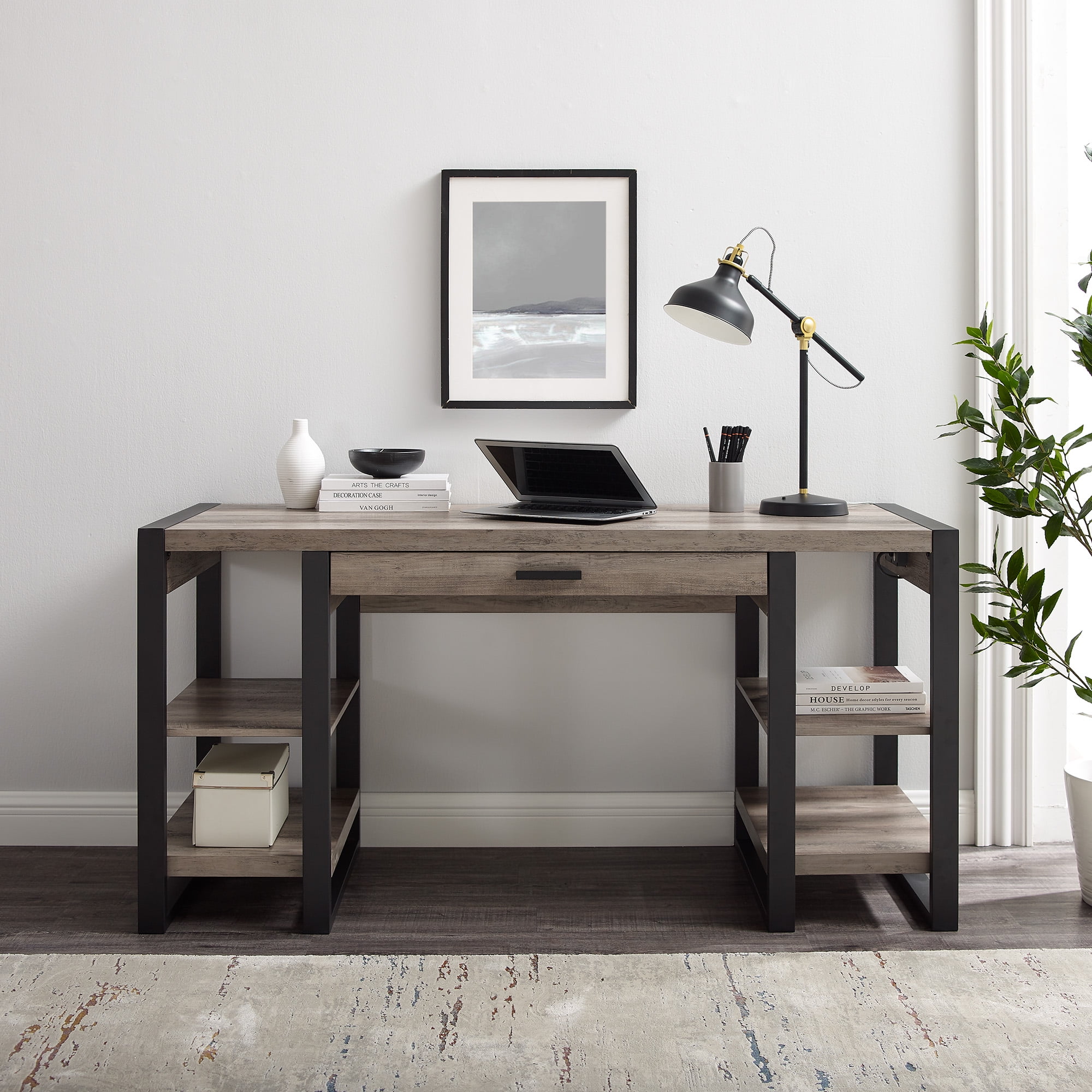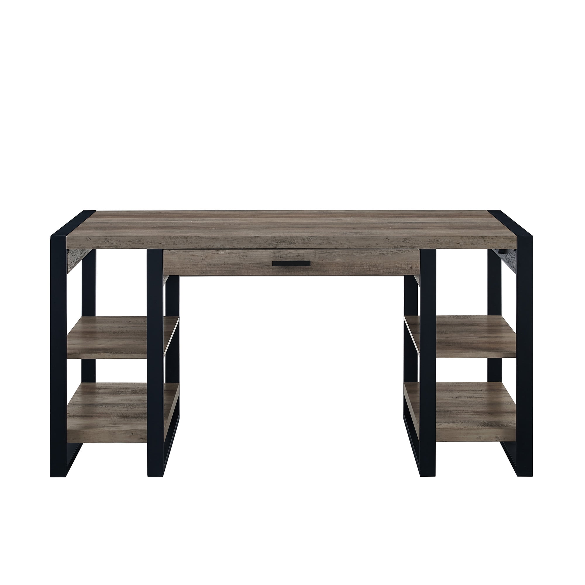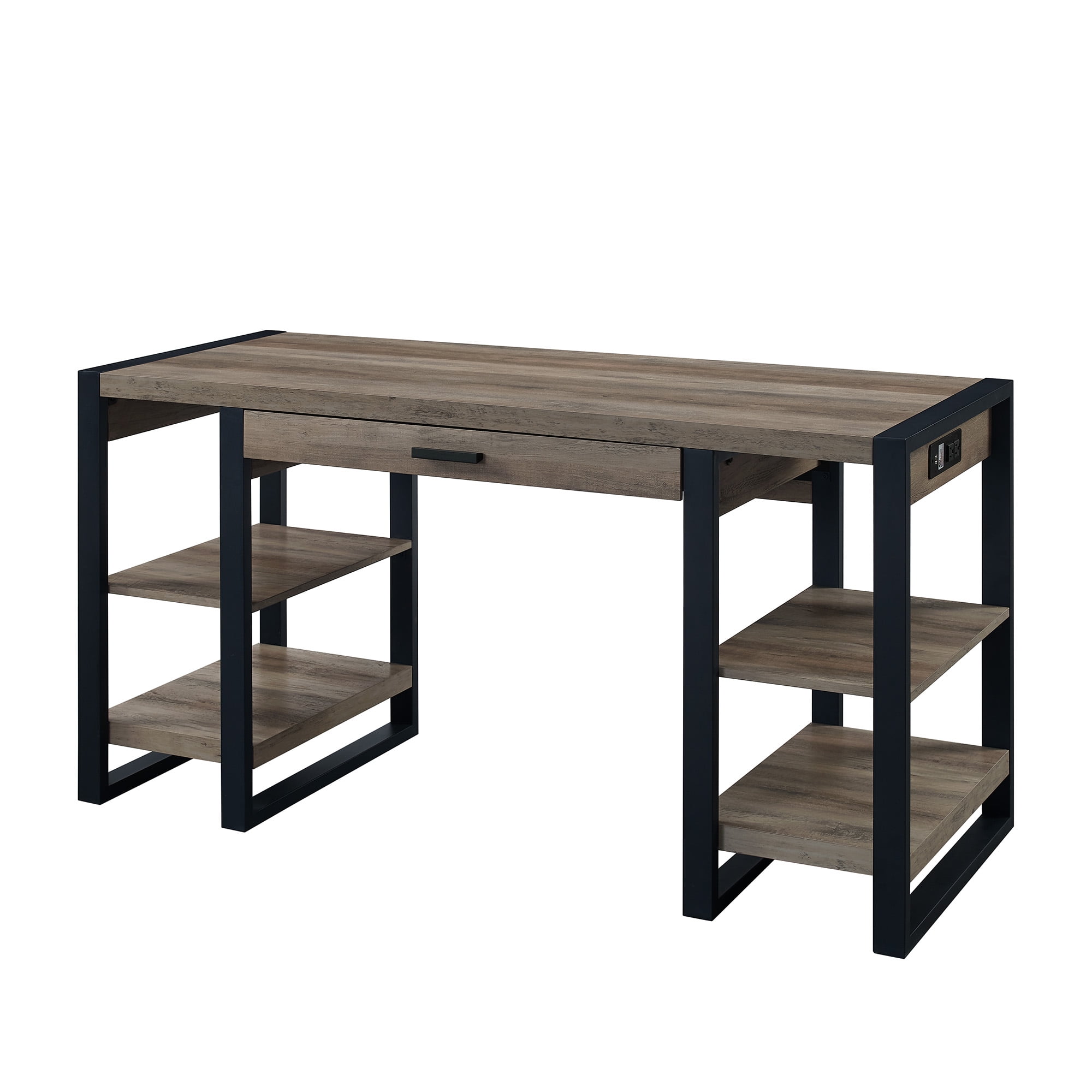Walker Edison Industrial 4-Shelf Computer Desk with USB Port, Grey Wash