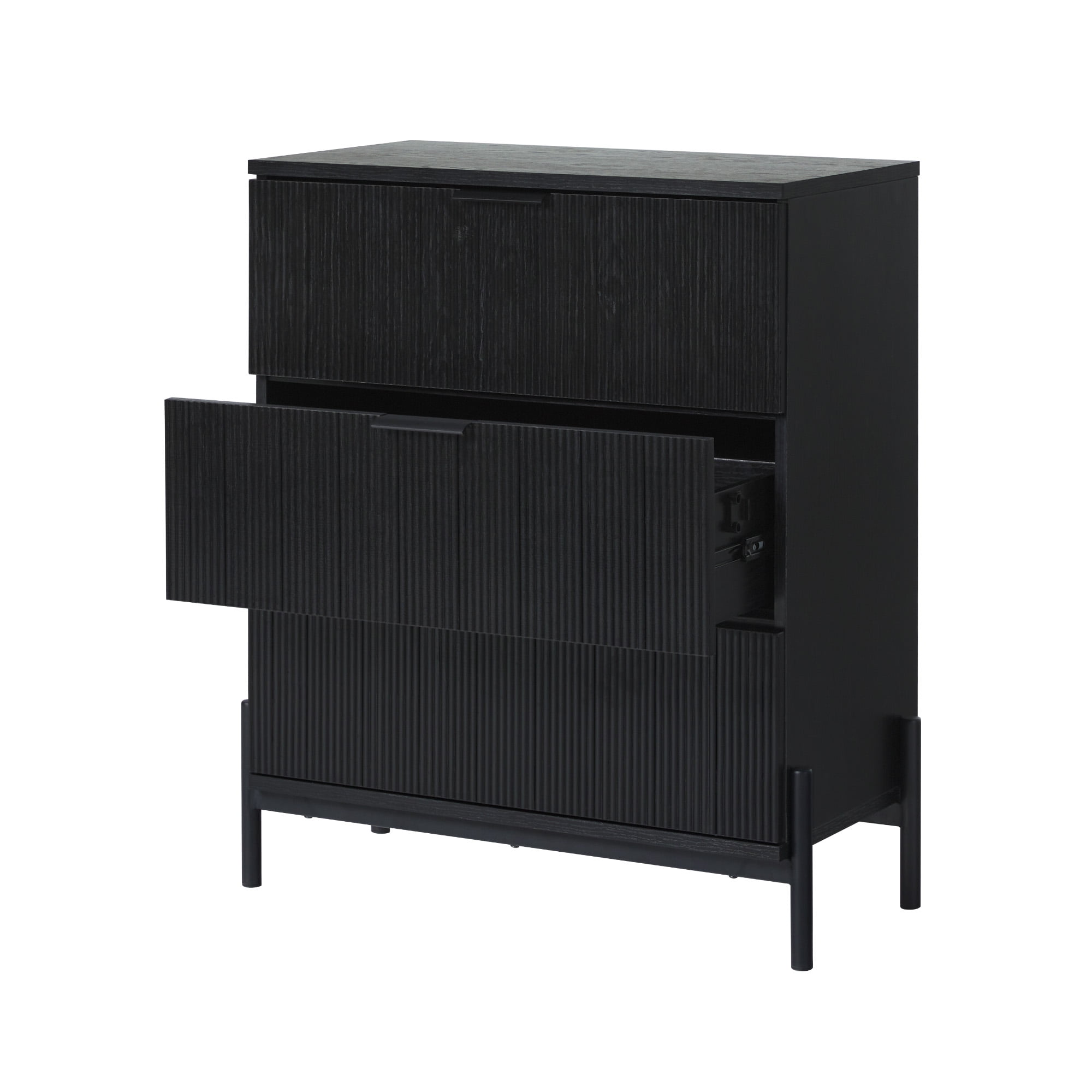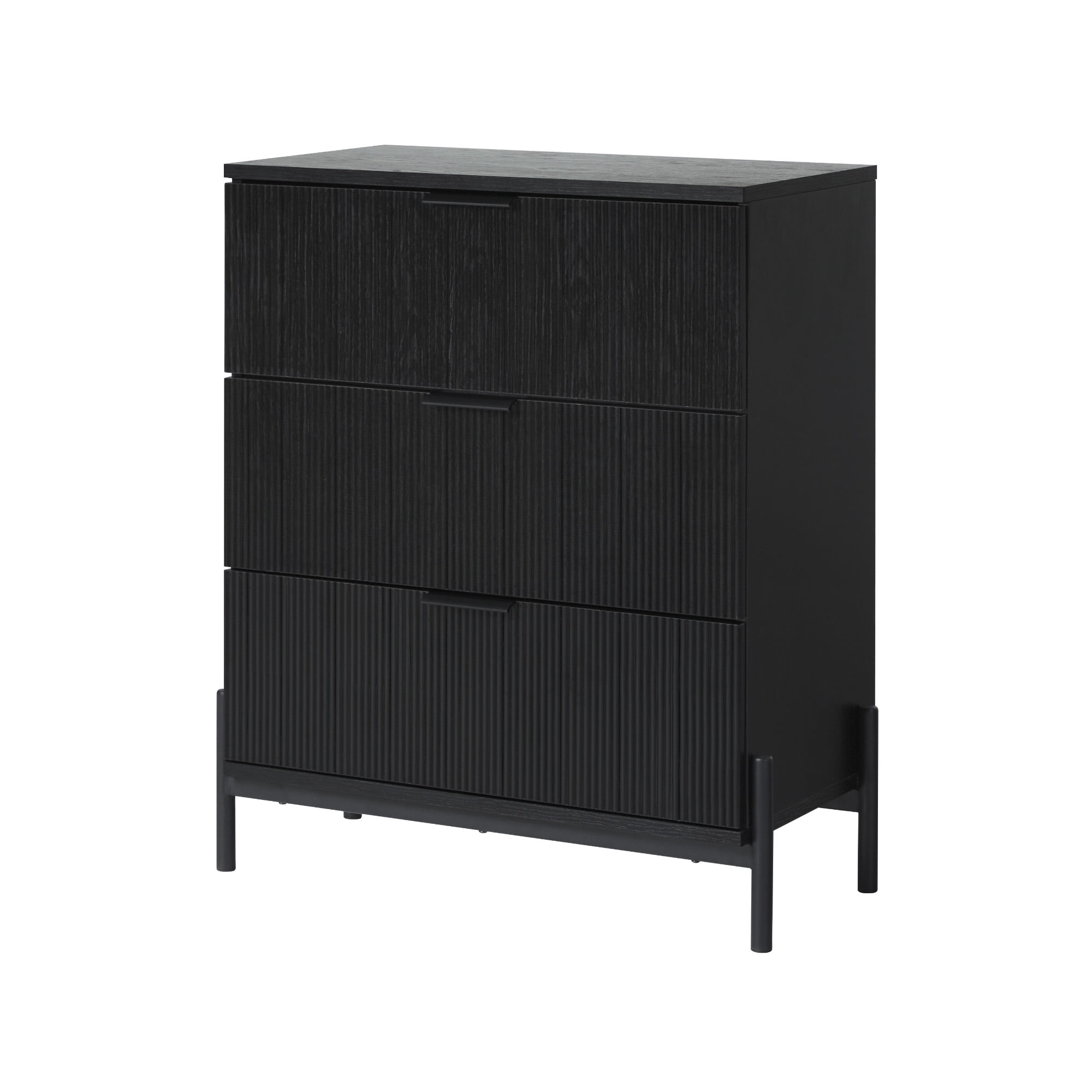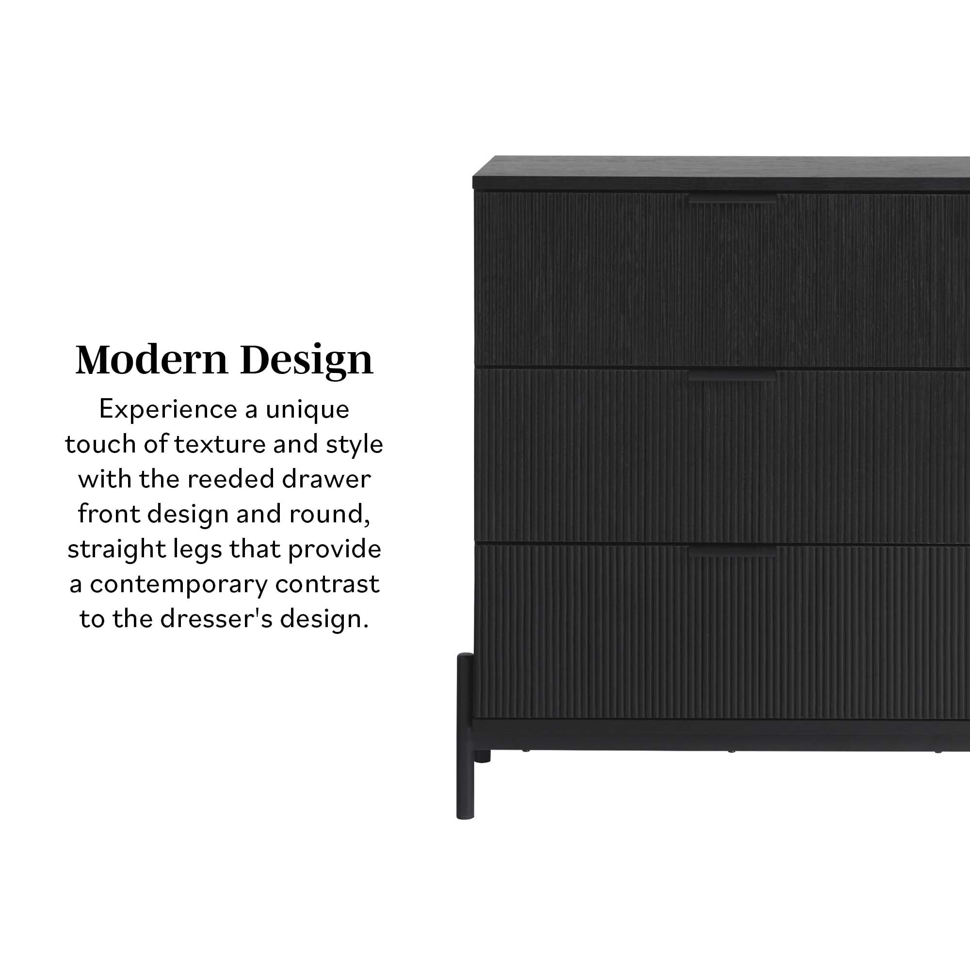 Walker Edison Mid-Century 3-Drawer Chest with Reeded Drawer Fronts, Black