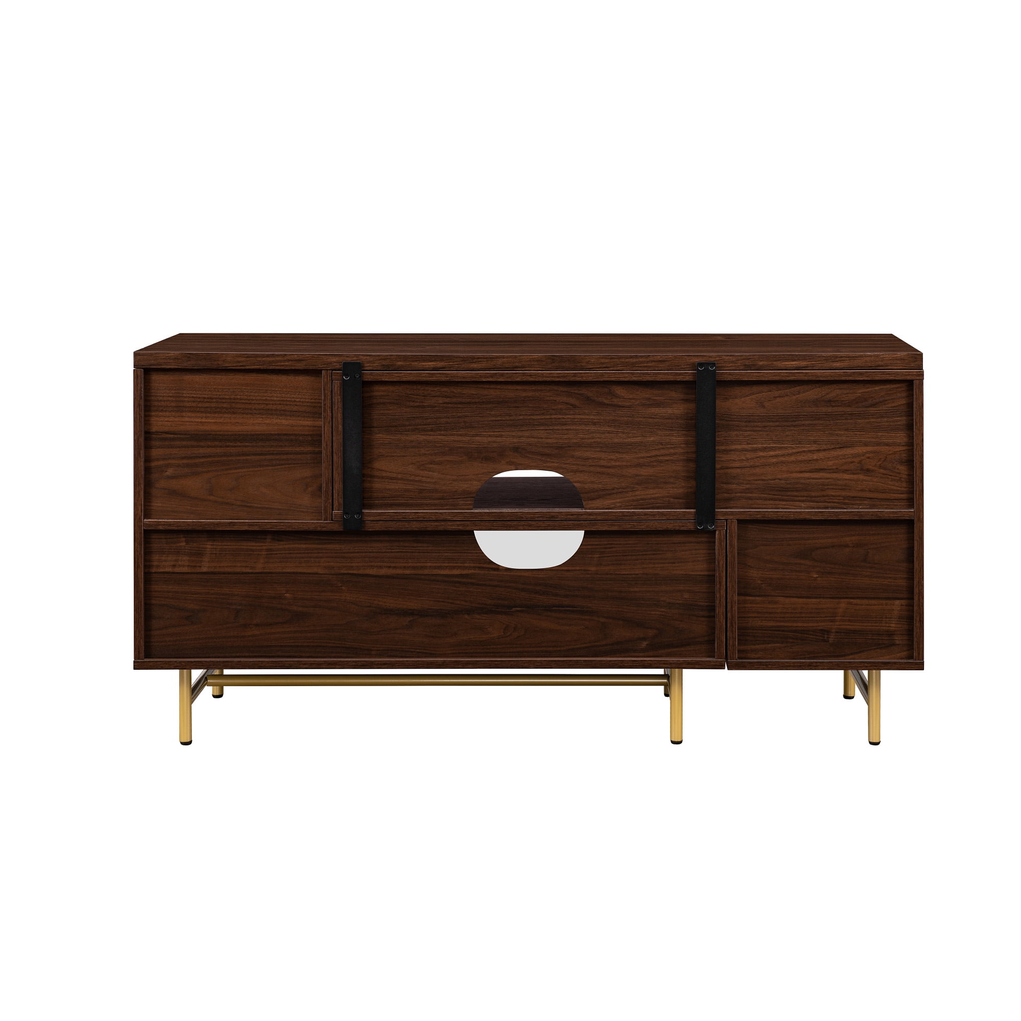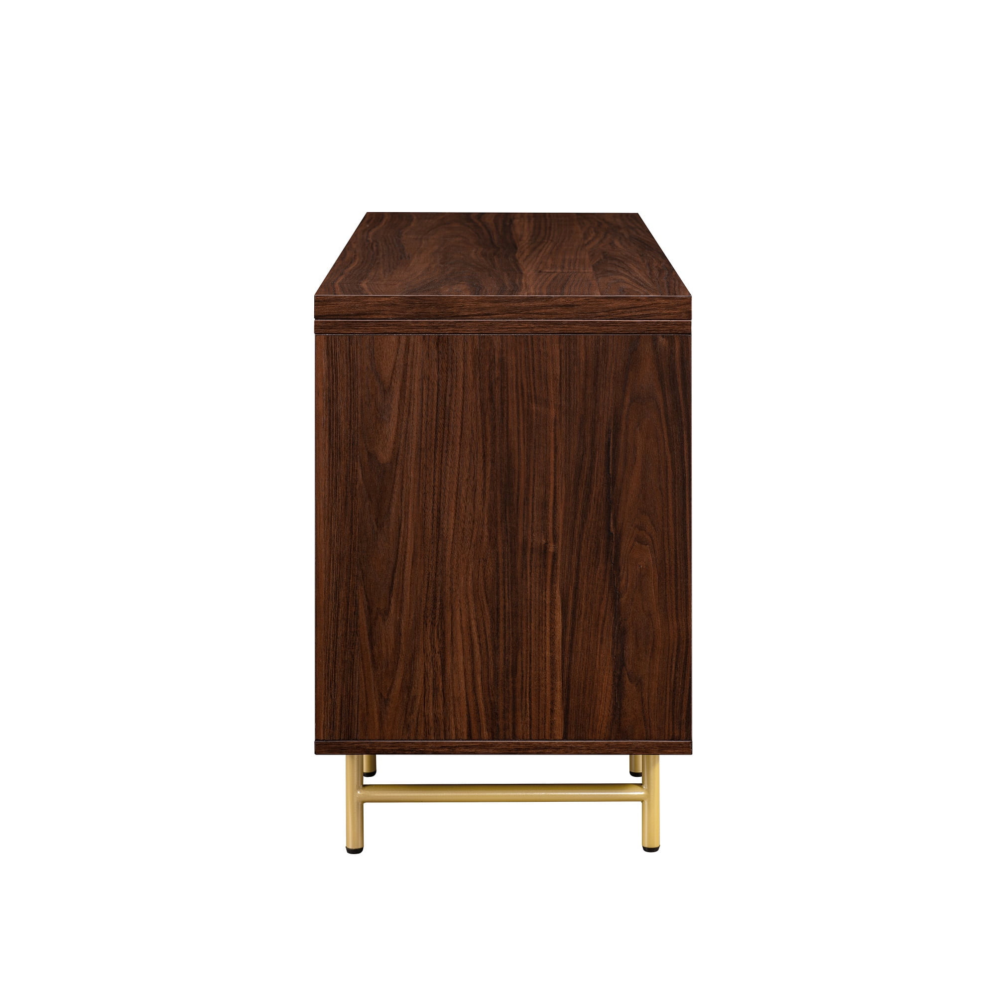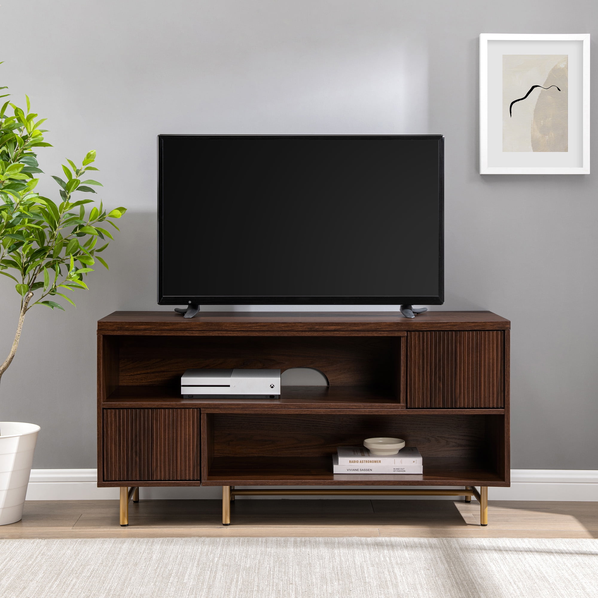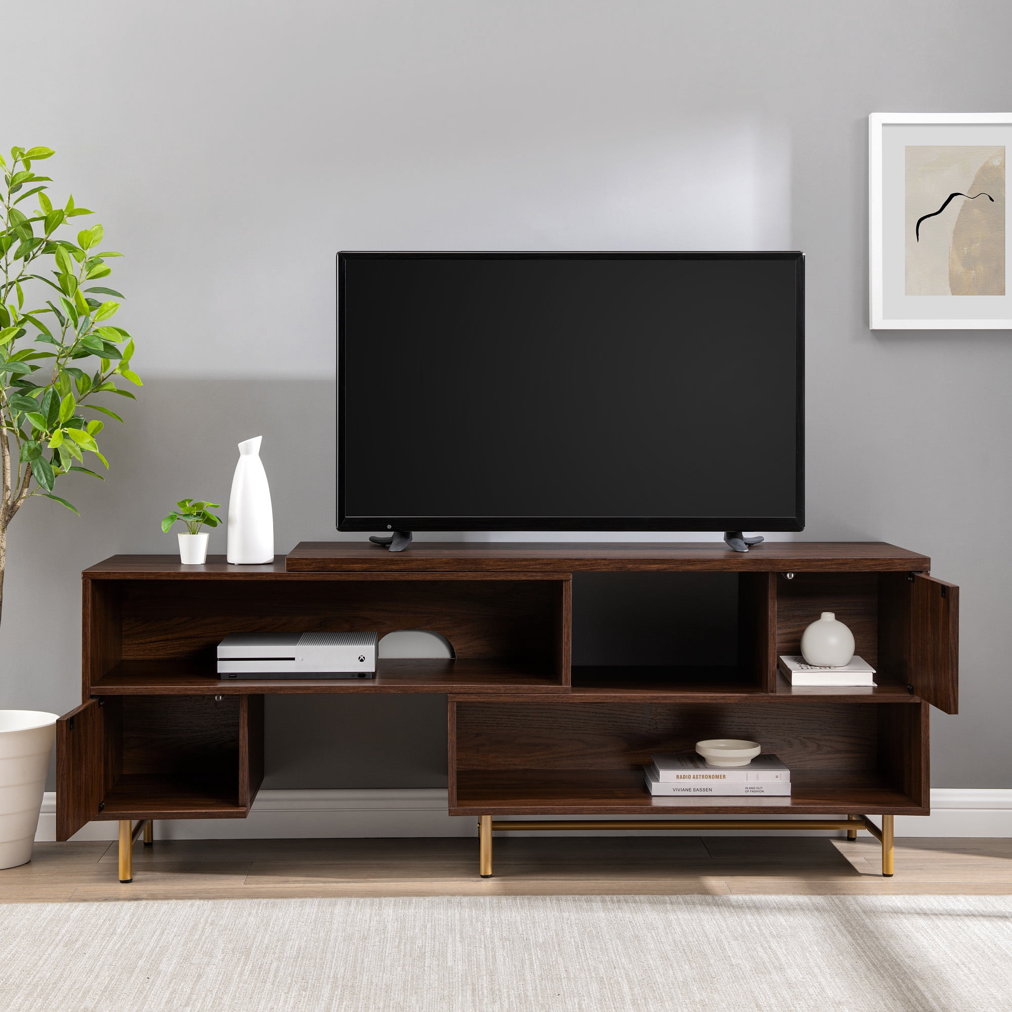 Enjoy a balance between modern style and contemporary storage function with this extendable TV stand by Walker Edison. Keep the TV stand in a condensed state to save on space or extend the frame to get an elegant and elongated look. The classic silhouette will remain timeless as your style evolves. Featuring cord management ports, this piece can keep the cords of your tech and gadgets tidy. The versatile design will look right at home in mid-century modern, modern, and contemporary aesthetics.