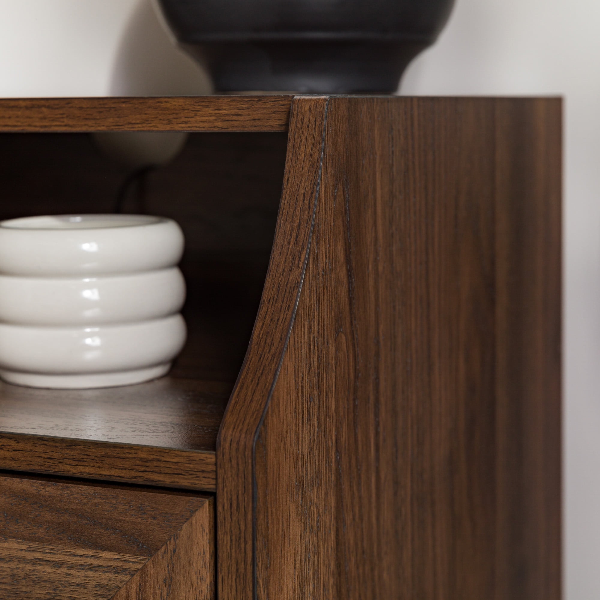 Add some vintage vibes to your bedroom or living room with the Walker Edison Modern 2 Drawer Nightstand with USB Port. Two framed drawers and the curved top cubby create a sophisticated aesthetic to elevate any home decor style. No matter where you place them, the two included USB ports come in handy when your devices need charging. The warp-resistant MDF wood build and attractive metal legs create a contemporary look to fit all your needs.