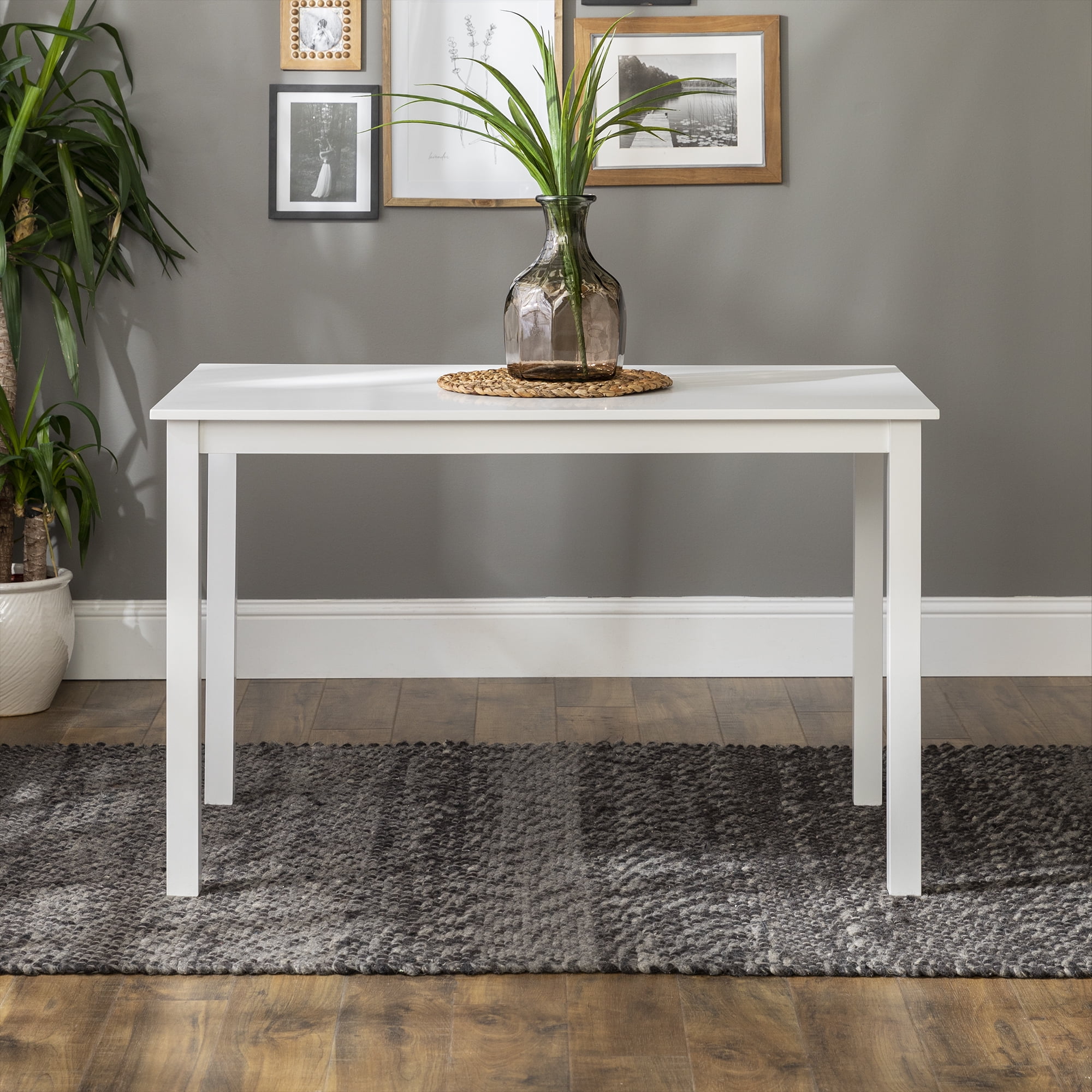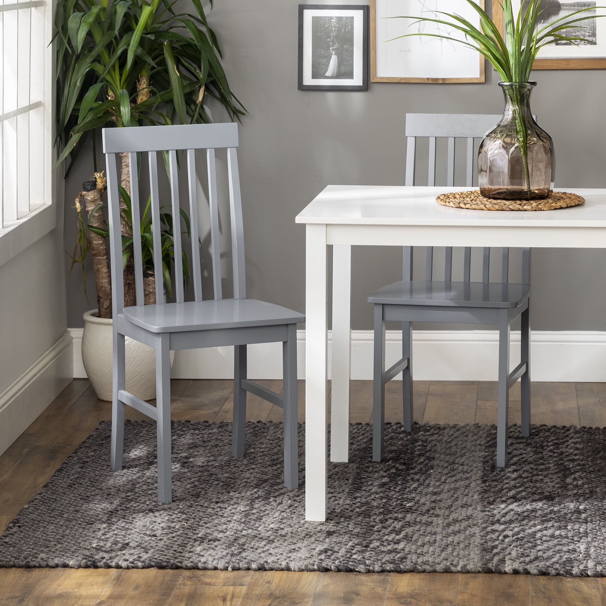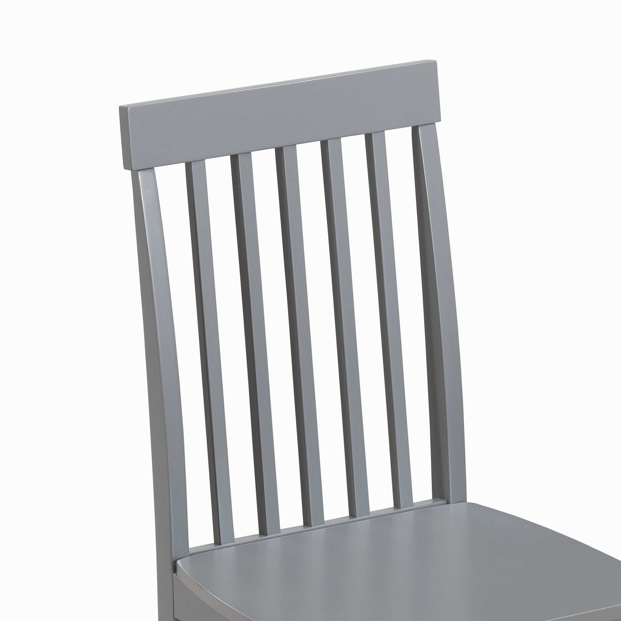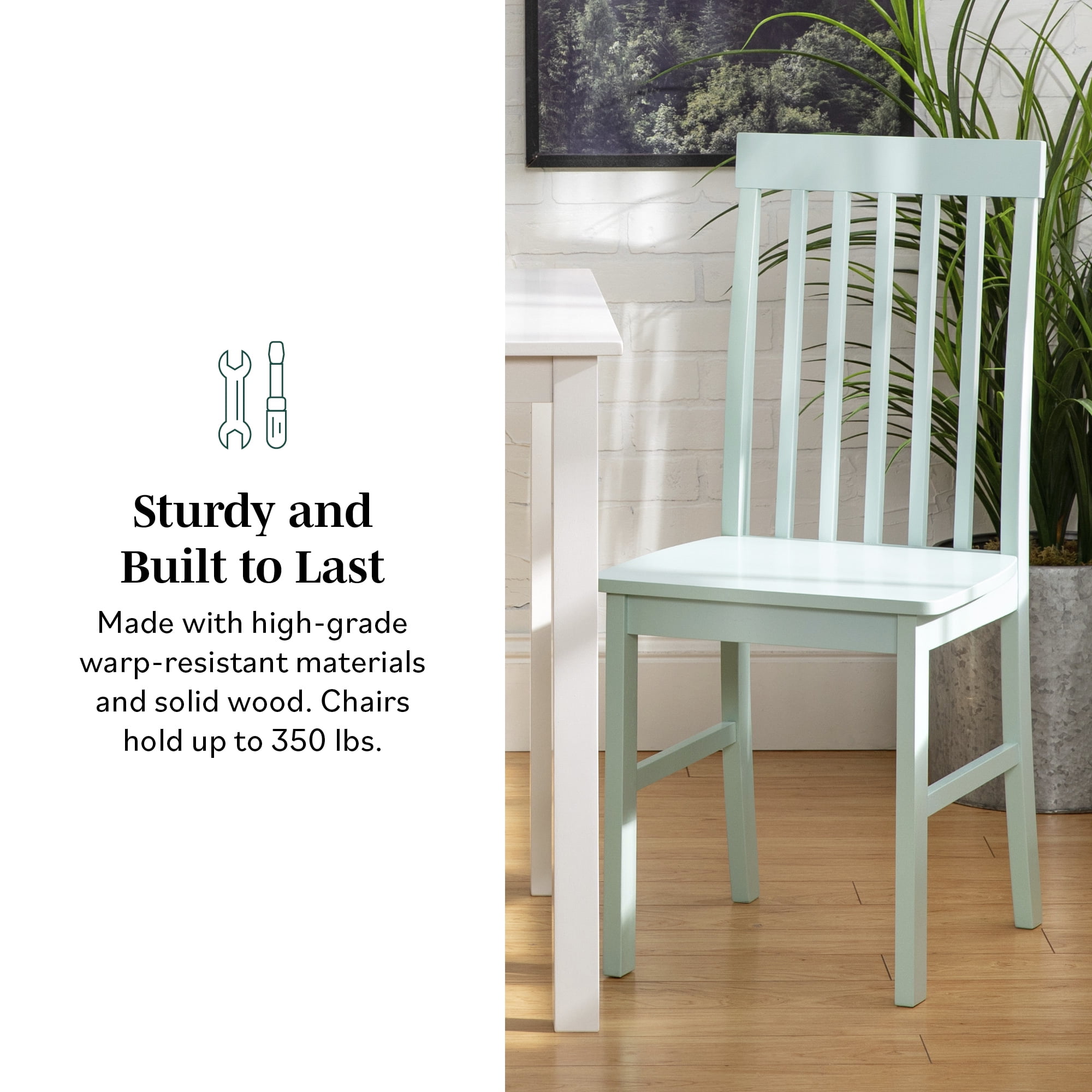 Modern farmhouse 5 piece dining set Includes 4 chairs and 1 table Slightly curved, spindle chair backrests Solid wood table and chairs Beautiful painted finish Rectangle tabletop great for kitchens or game rooms Small-space living friendly Assembly is required