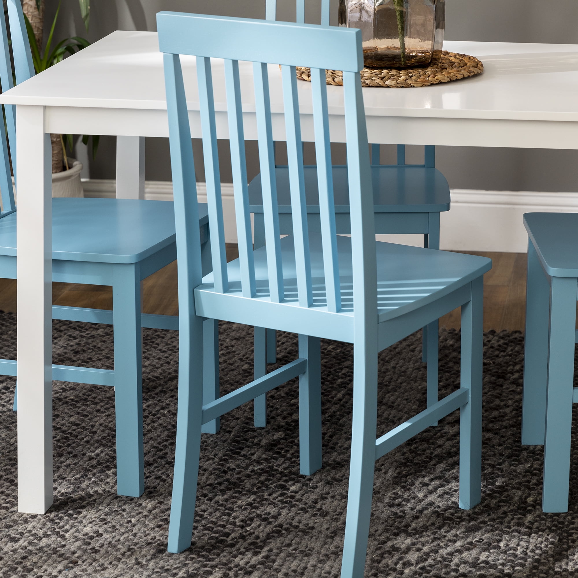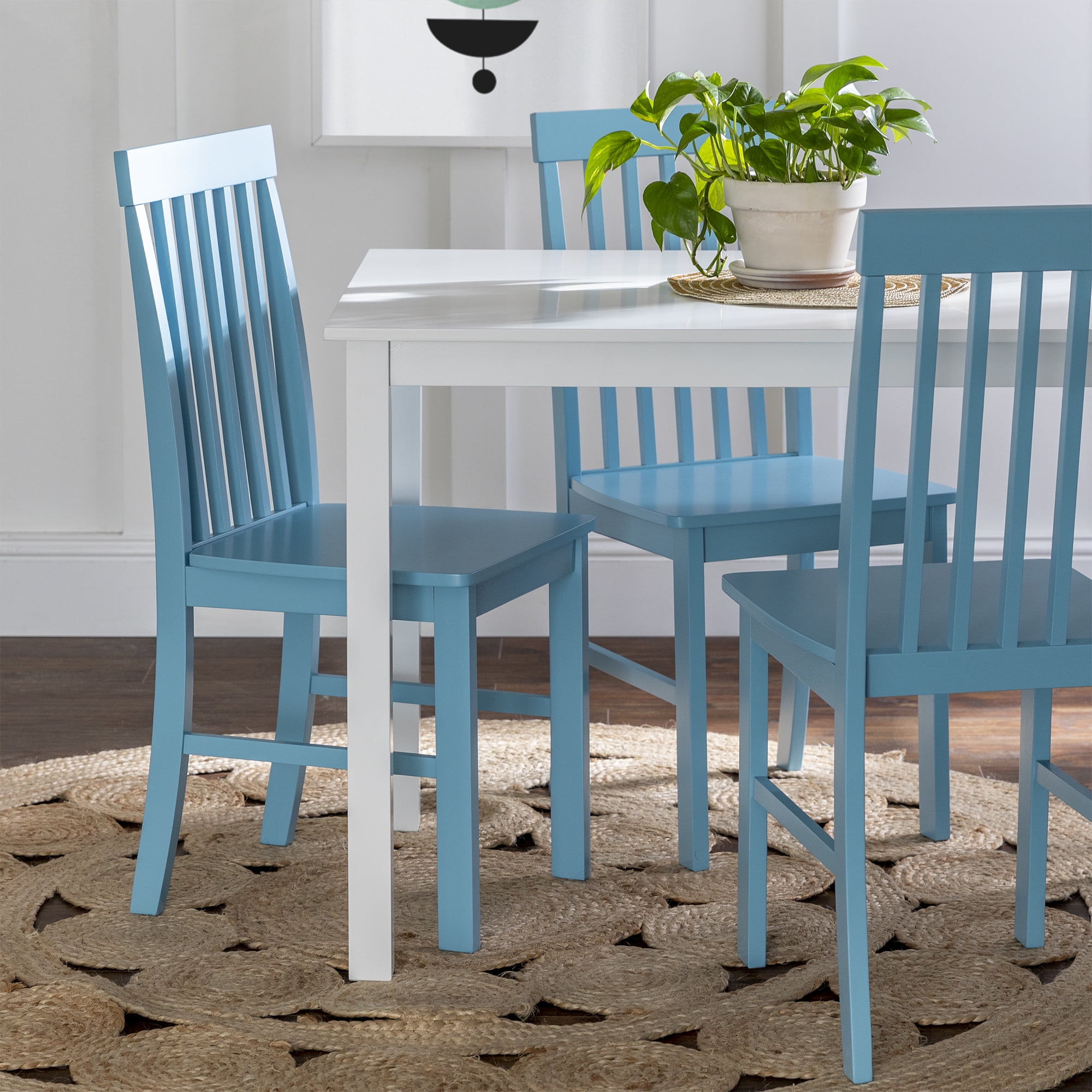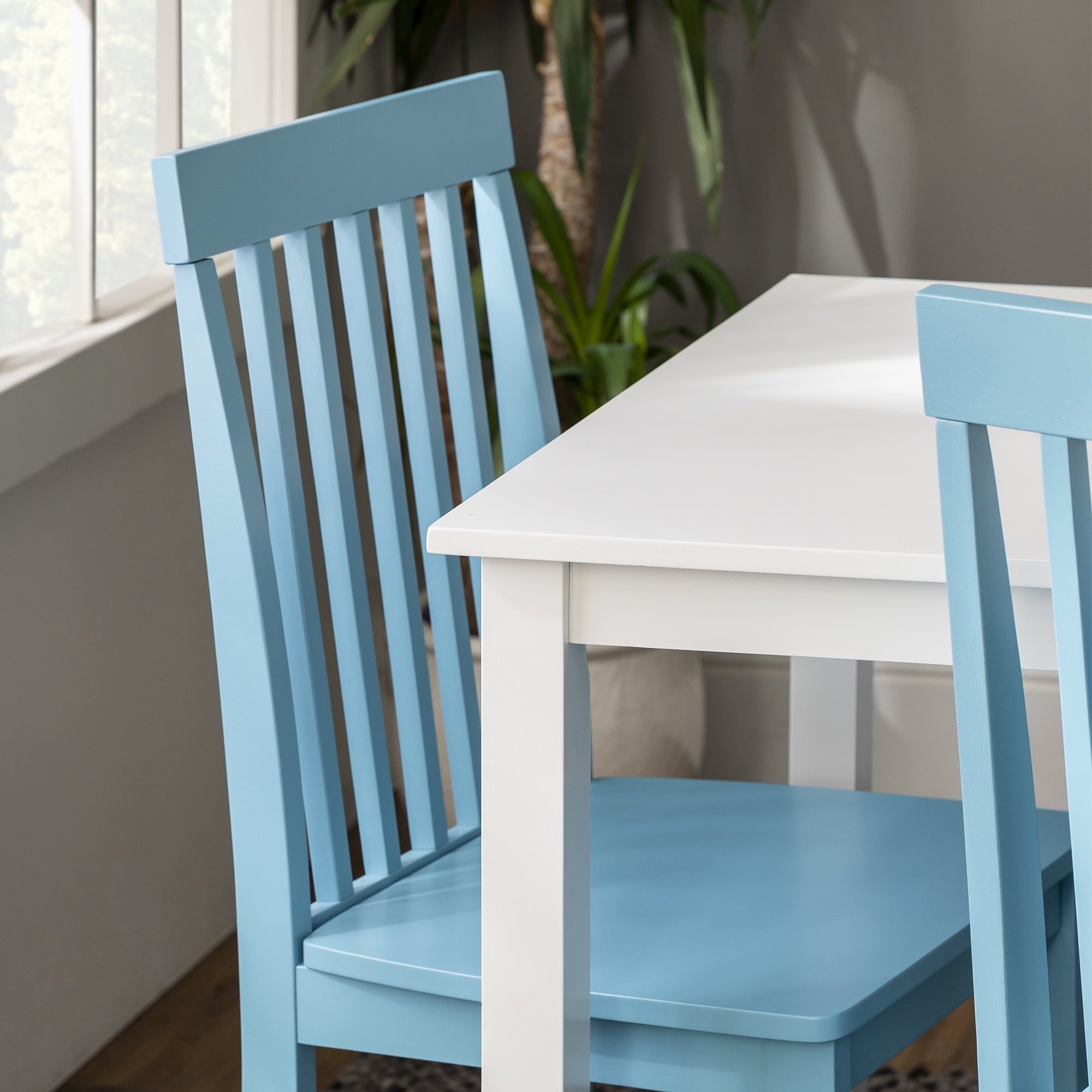 Walker Edison Modern 5-Piece Dining Set – White / Powder Blue
