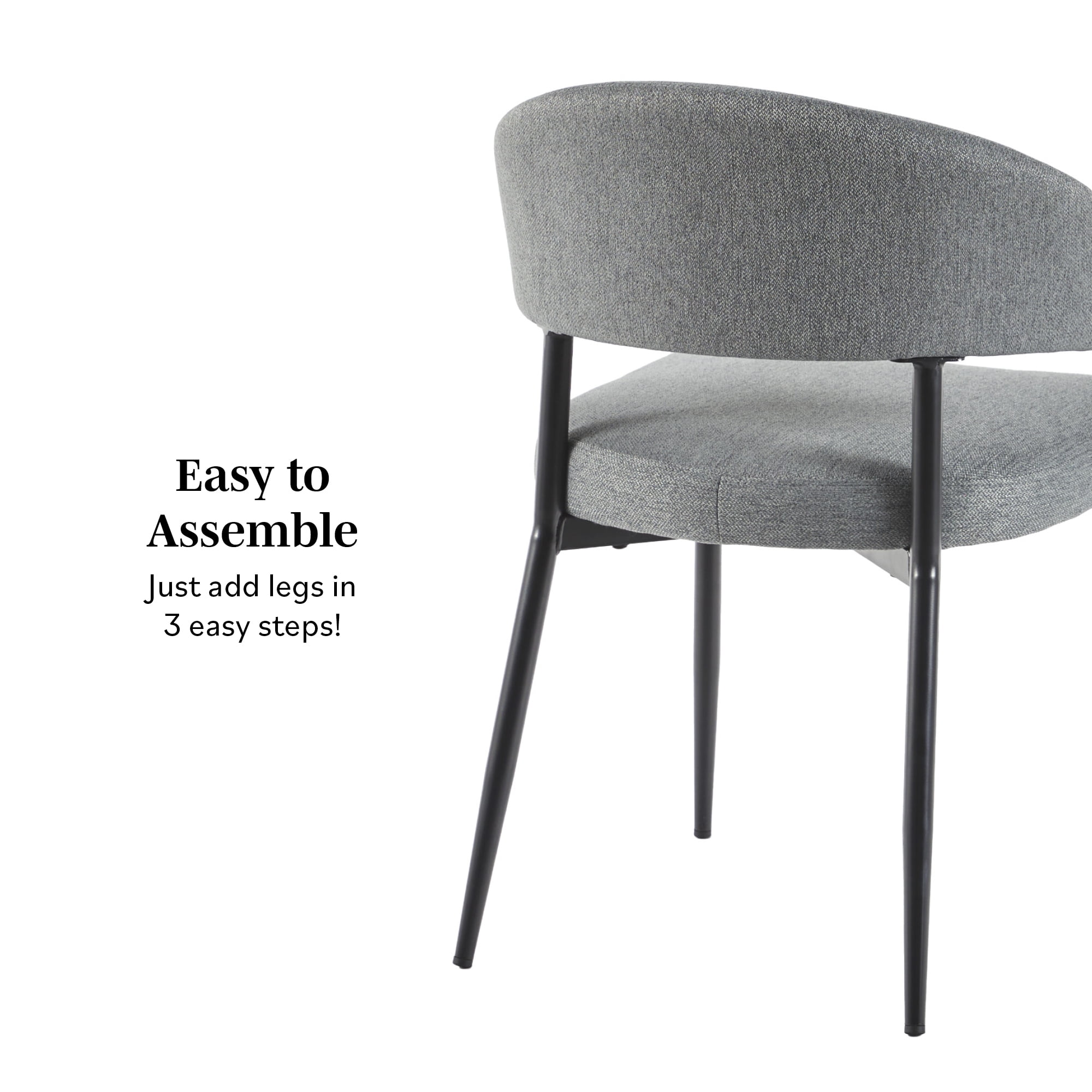 Modern, contemporary or transitional style Deep charcoal finish Adjustable foot levelers Easy to assemble High-performance woven upholstery and powder coated steel base Ships ready-to-assemble with step-by-step instructions Assembled dimensions: 30.25” H x 20.5” L x 18.125” W Packaged dimensions: 14 7/8″ H x 28 3/4″ L x 22 7/8″ W