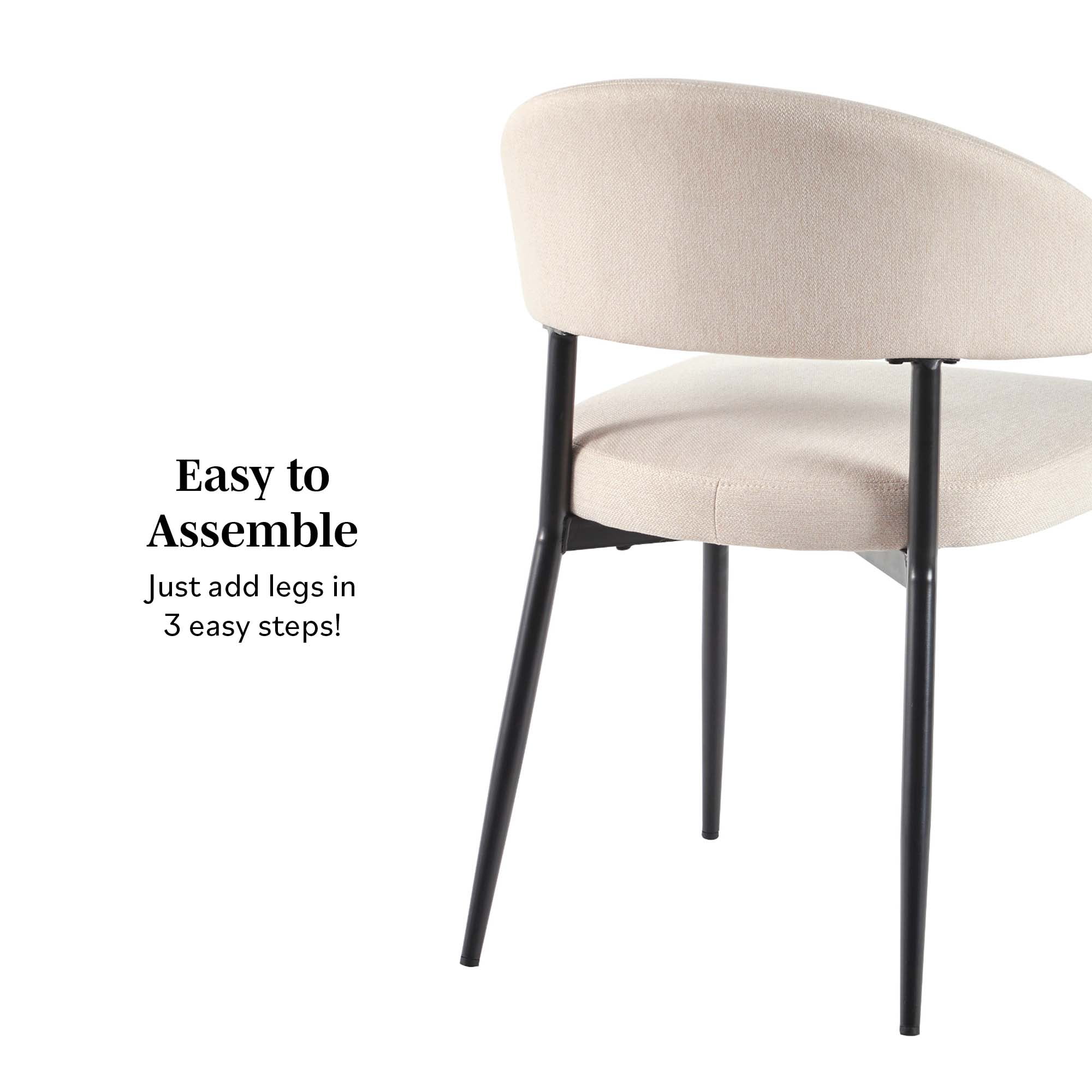Modern, contemporary or transitional style Beautiful ivory finish Adjustable foot levelers Easy to assemble Comfortable seat filled with high-quality foam High-performance woven upholstery and powder-coated steel base Ships ready-to-assemble with step-by-step instructions Assembled dimensions: 30.25” H x 20.5” L x 18.125” W Packaged dimensions: 14 7/8″ H x 28 3/4″ L x 22 7/8″ W