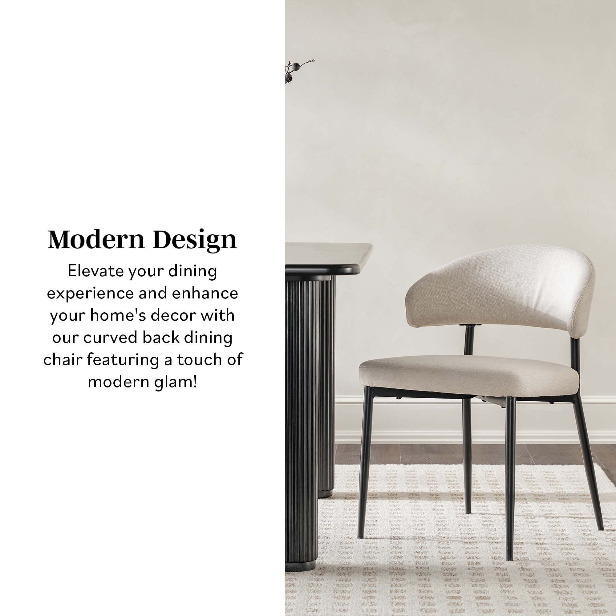Walker Edison Modern Curved Back Upholstered Dining Chair, Set of 2, Ivory