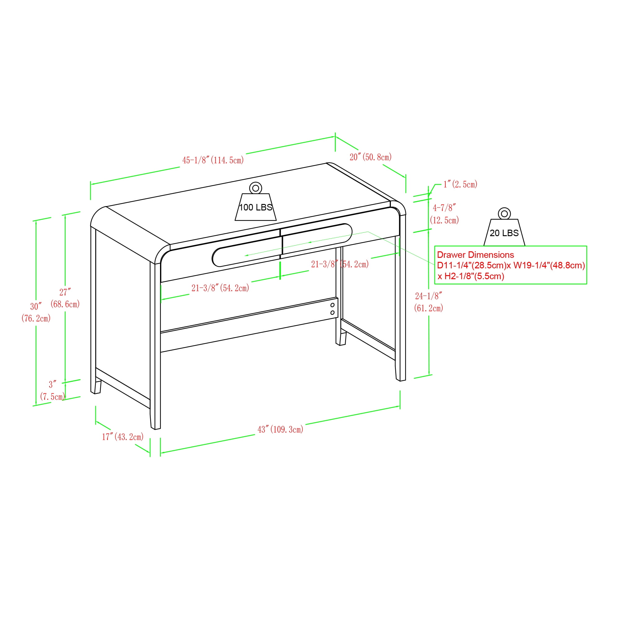 Walker Edison Modern Curved Waterfall Desk with Drawers, Black