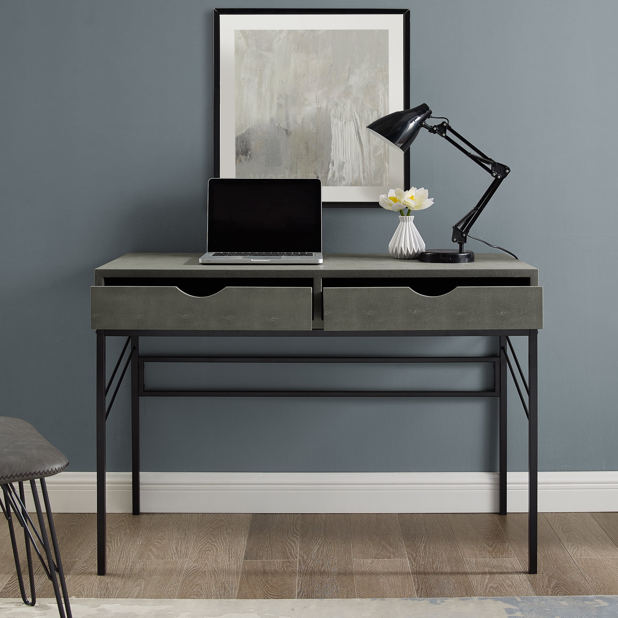 Walker Edison Modern Eclectic Faux Shagreen Writing Desk, Grey