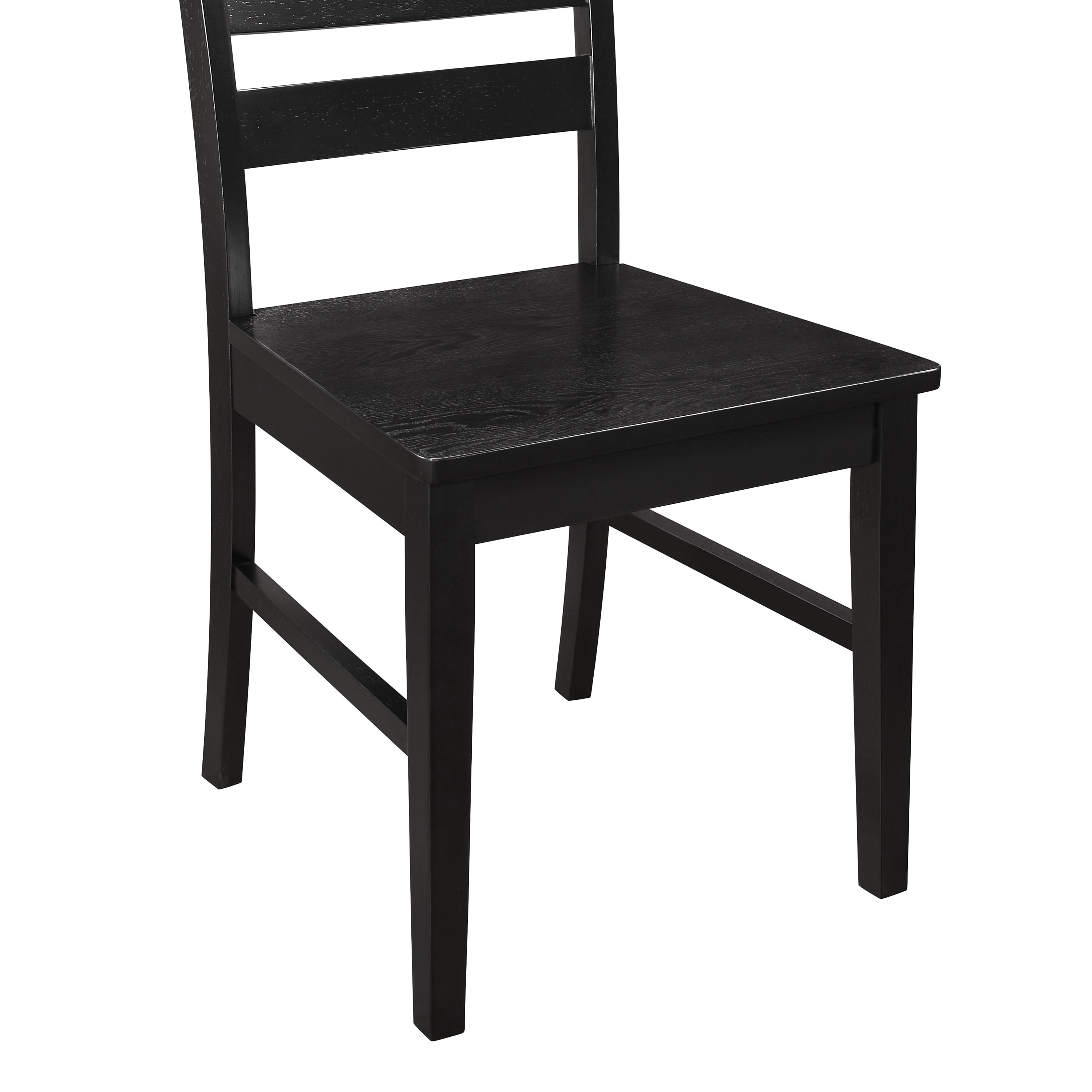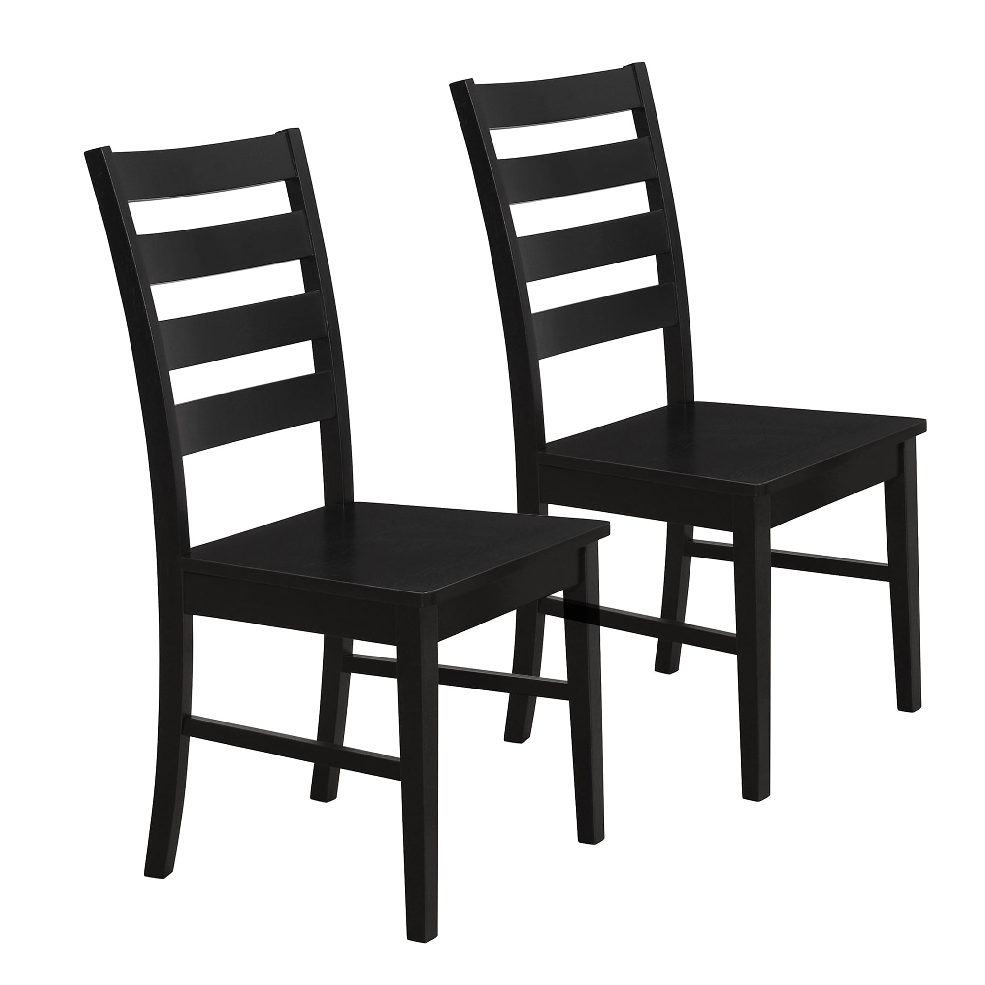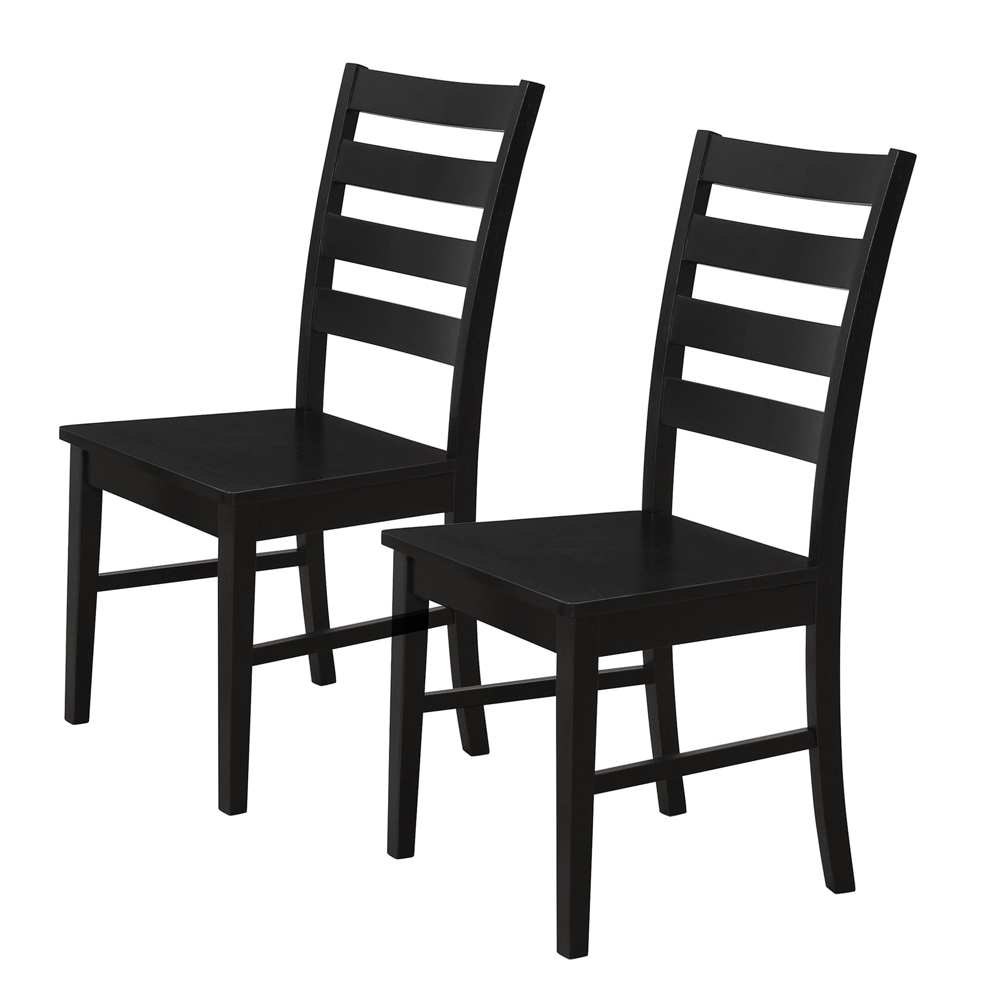 In a transitional and modern farmhouse style With a classic ladder back design featuring wood slatted backrests Made out of solid wood and high-grade MDF Pair with a dining table and dining bench for a complete set In a black finish Ships ready-to-assemble with step-by-step instructions Dimensions: 39? H x 22″ L x 19? W 40 lbs.