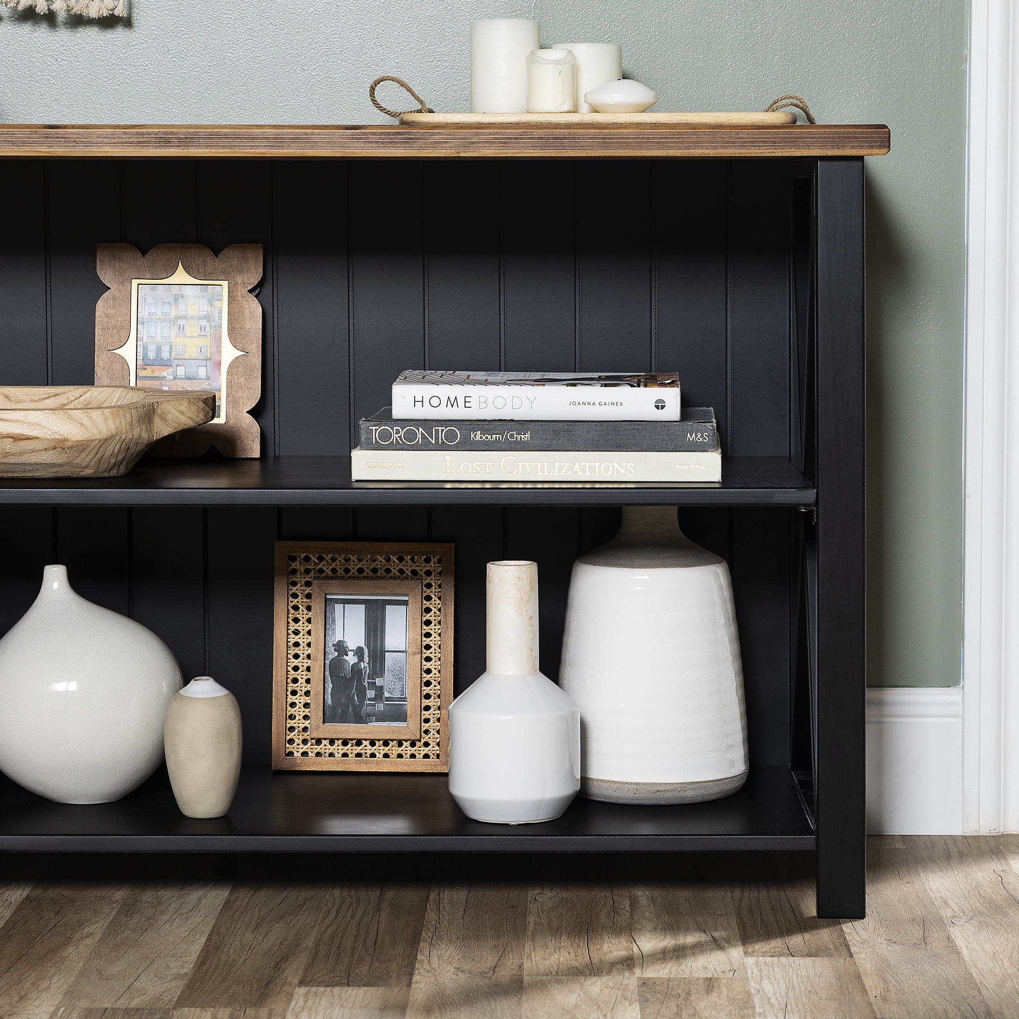 Elevate the look of your home with the Walker Edison Farmhouse Wood Storage Console. Create a designated spot for décor, flower bouquets, and books with a touch of rustic charm. Made from responsibly harvested pine wood, this piece adds a touch of nature to your home while you can feel good about how it was made. Enjoy a stylish two-tone design that invites a modern element to any room. The two fixed shelves offer plenty of wiggle room to arrange your belongings how you see fit. The beadboard back and X-frame detailing on the sides come together to evoke a classic farmhouse look.