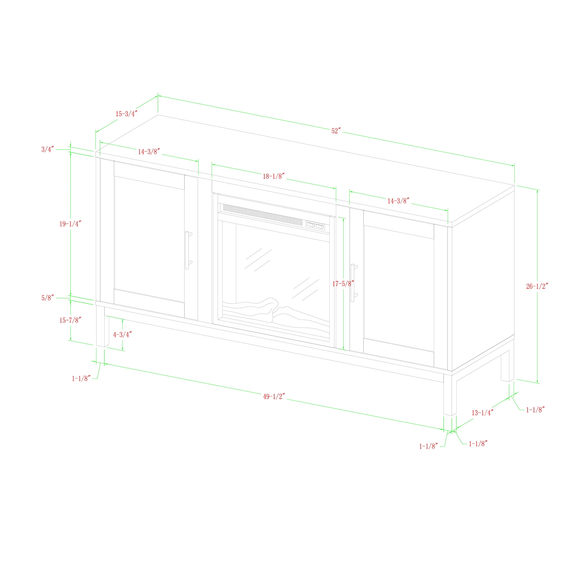Exuding a modern design style perfect for any room of your home Includes electric fireplace to heat up any room Side shelving is adjustable to fit your things, whether in your living room, bedroom, or home office Can support up to 250 pounds and includes cable management holes in back Recommended for TVs up to 58″ Dimensions: 26″ H x 52 inch W x 16″ L